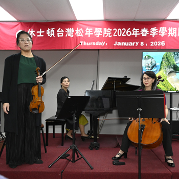 在休士頓台灣松年學院擔任義工的張洋紫、陳秋喜功成身退..希望交棒給年輕一代..會上以歌聲、演奏表達全體深沉謝意..優雅離情的音樂瀰漫現場每個角落...
