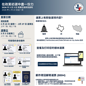 華裔德州眾議員陳筱玲從進入政壇後,每次選舉都能安然過關,曾經一次共和黨共有十二人參選,最後只有她一人獲選,這也突顯了她獨特的群眾魅力;前糖城市議員黃安祥就對...
