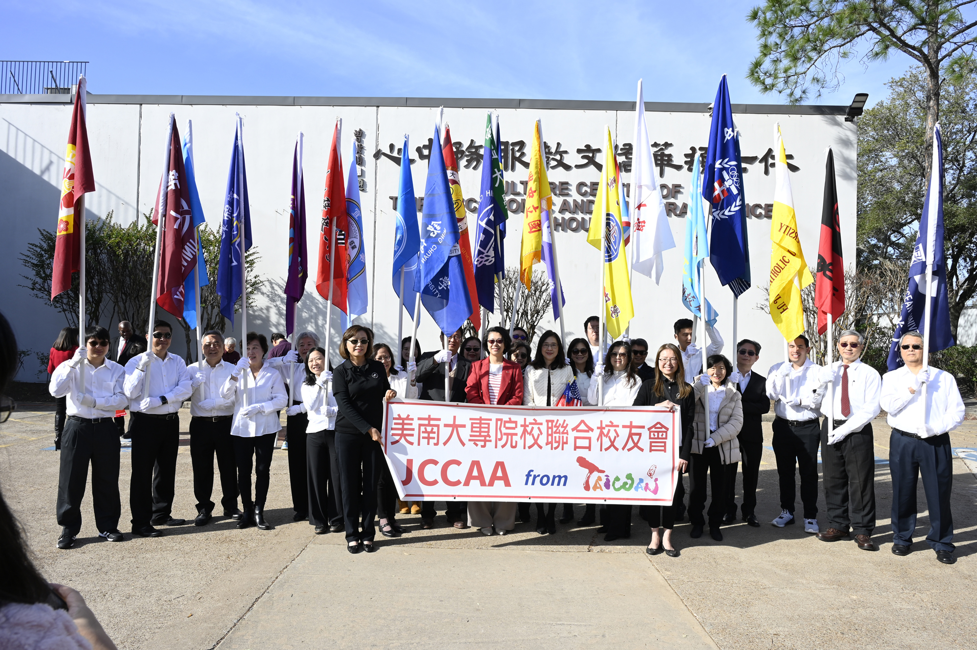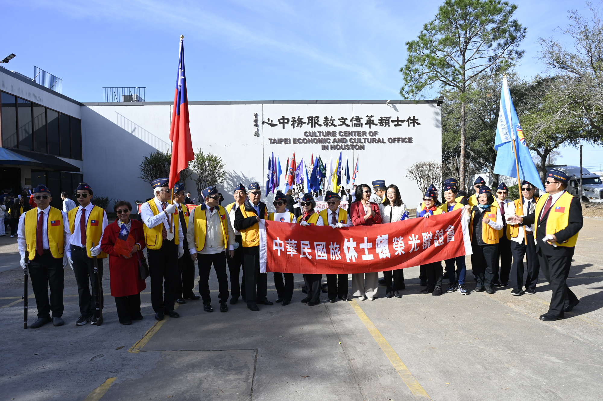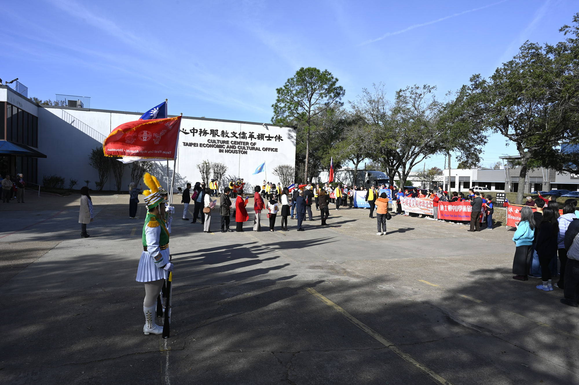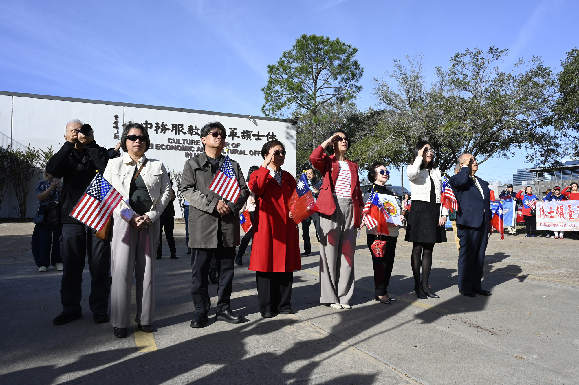 2026年的元旦升旗典禮,是個晴朗的天氣,僑胞社團一早就陸續來到休士頓僑教中心,等候升旗儀式的啟動,社團紛紛拉起了橫幅出場,增加能見度,最後大家目迎中華民國國旗緩緩升起,完成每年第一天最重要的任務,將國旗高高掛上。