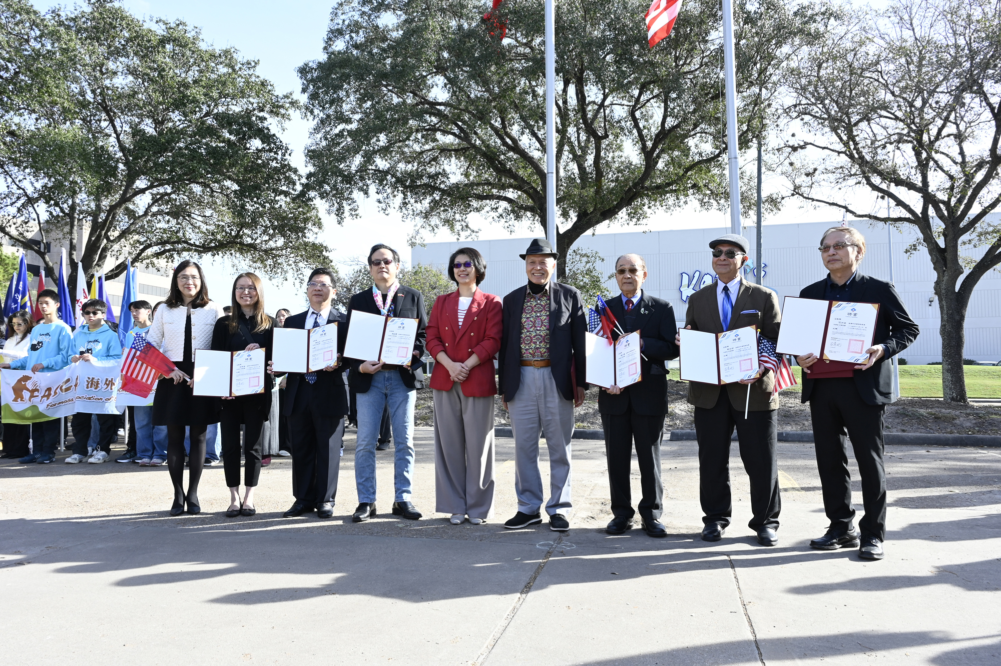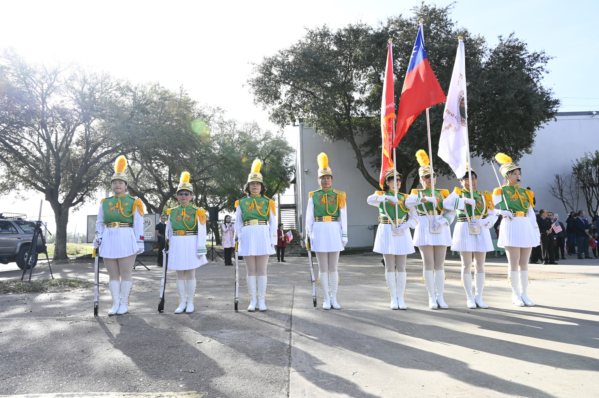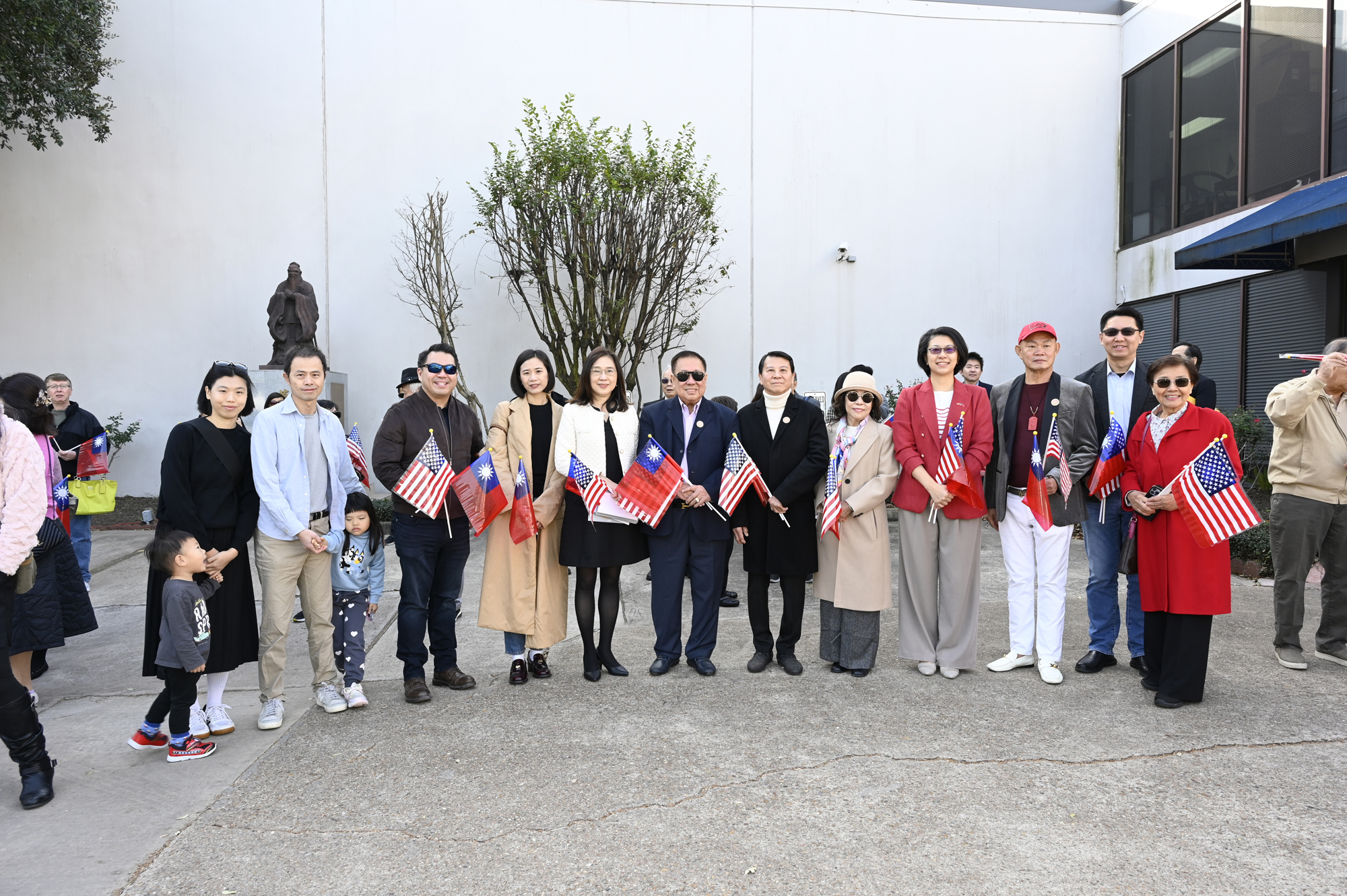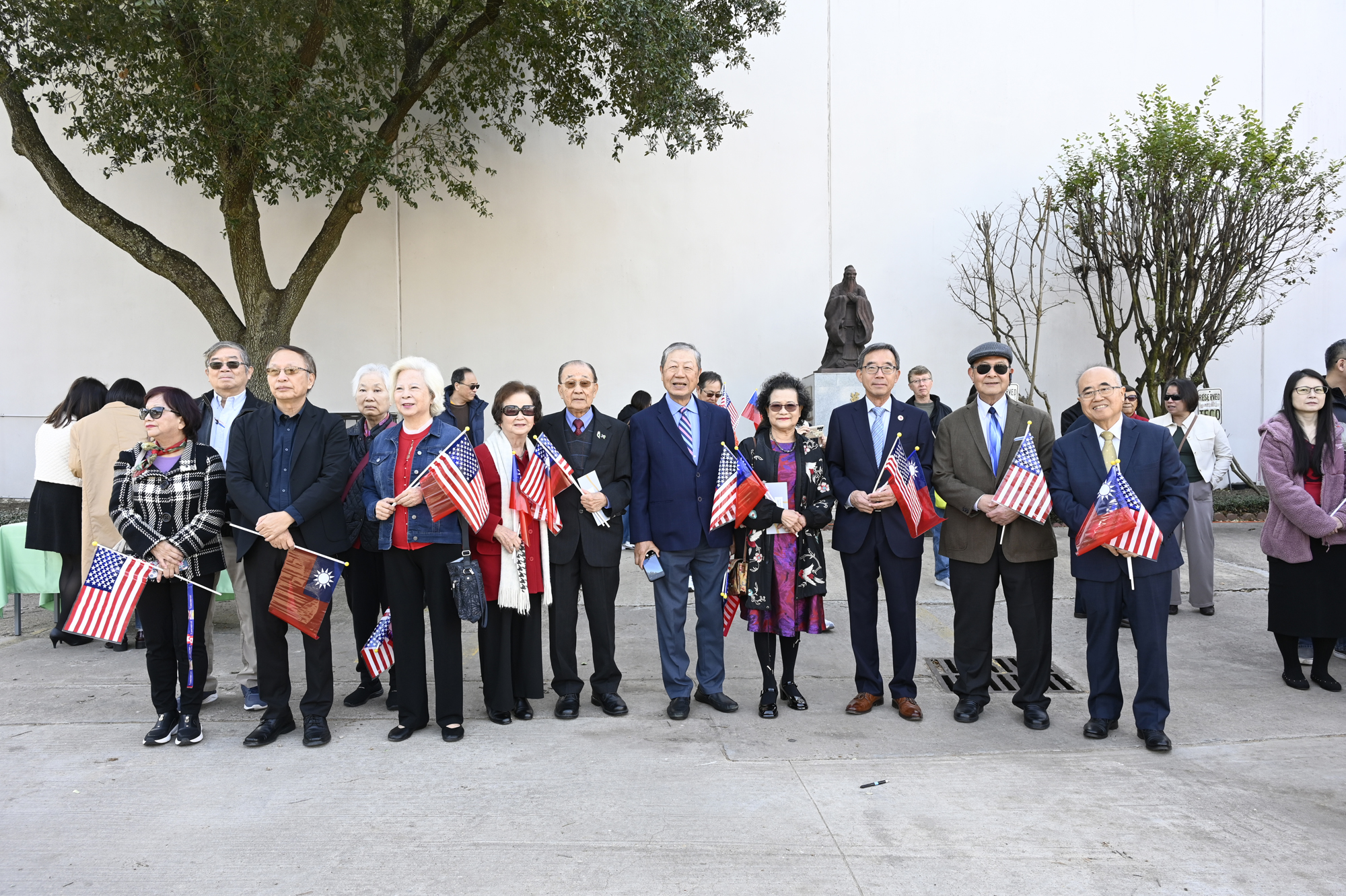 2026年的元旦升旗典禮,是個晴朗的天氣,僑胞社團一早就陸續來到休士頓僑教中心,等候升旗儀式的啟動,社團紛紛拉起了橫幅出場,增加能見度,最後大家目迎中華民國國旗緩緩升起,完成每年第一天最重要的任務,將國旗高高掛上。