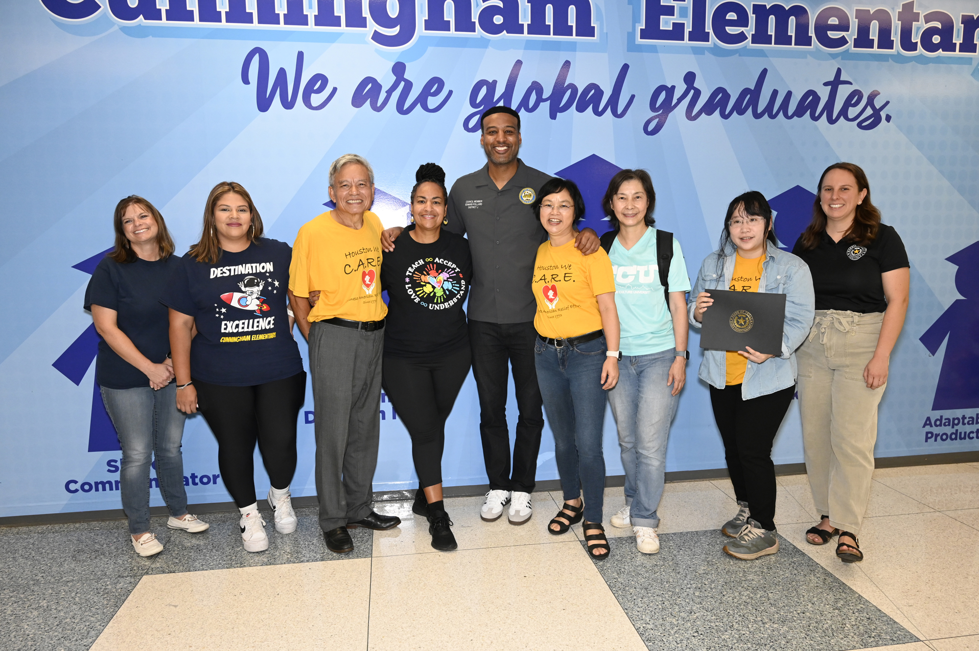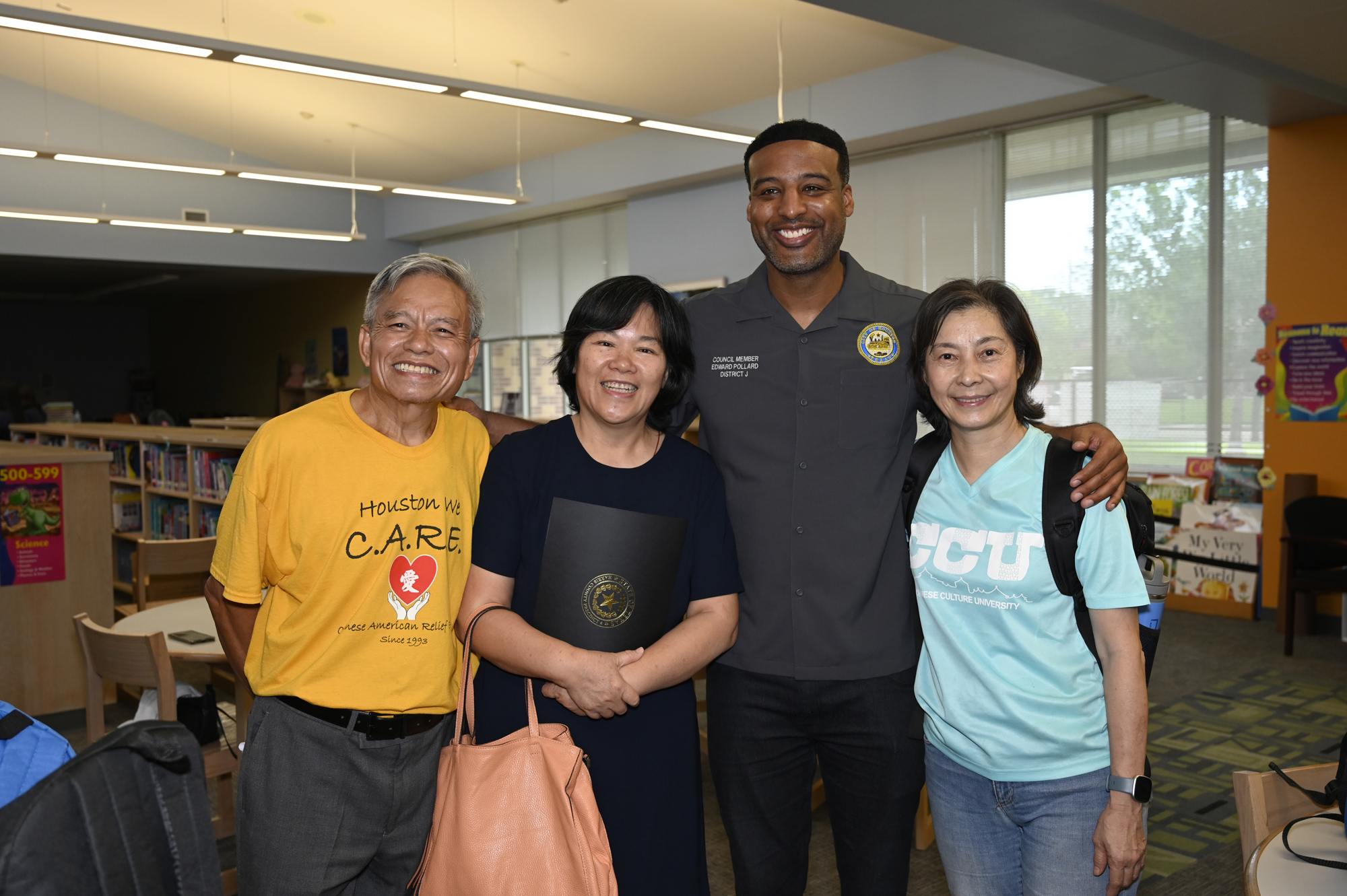 2025年李素涵會長(左一)與工作團隊及受贈家庭合影。