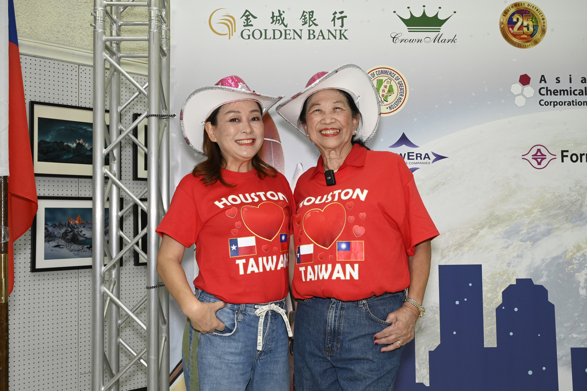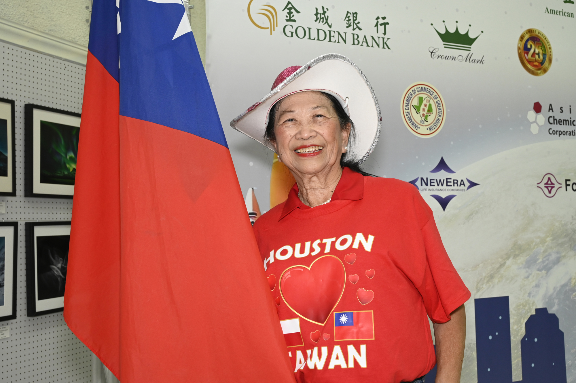 僑聯總會休士頓辦事處主任李迎霞(右)與李雄主任委員(左)於授旗當天合影。
