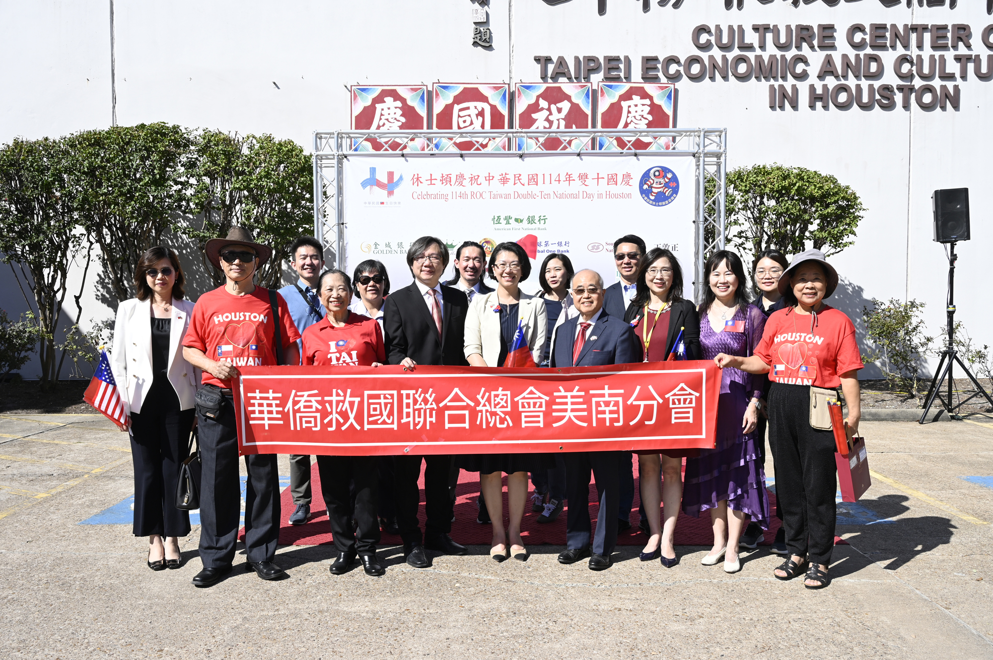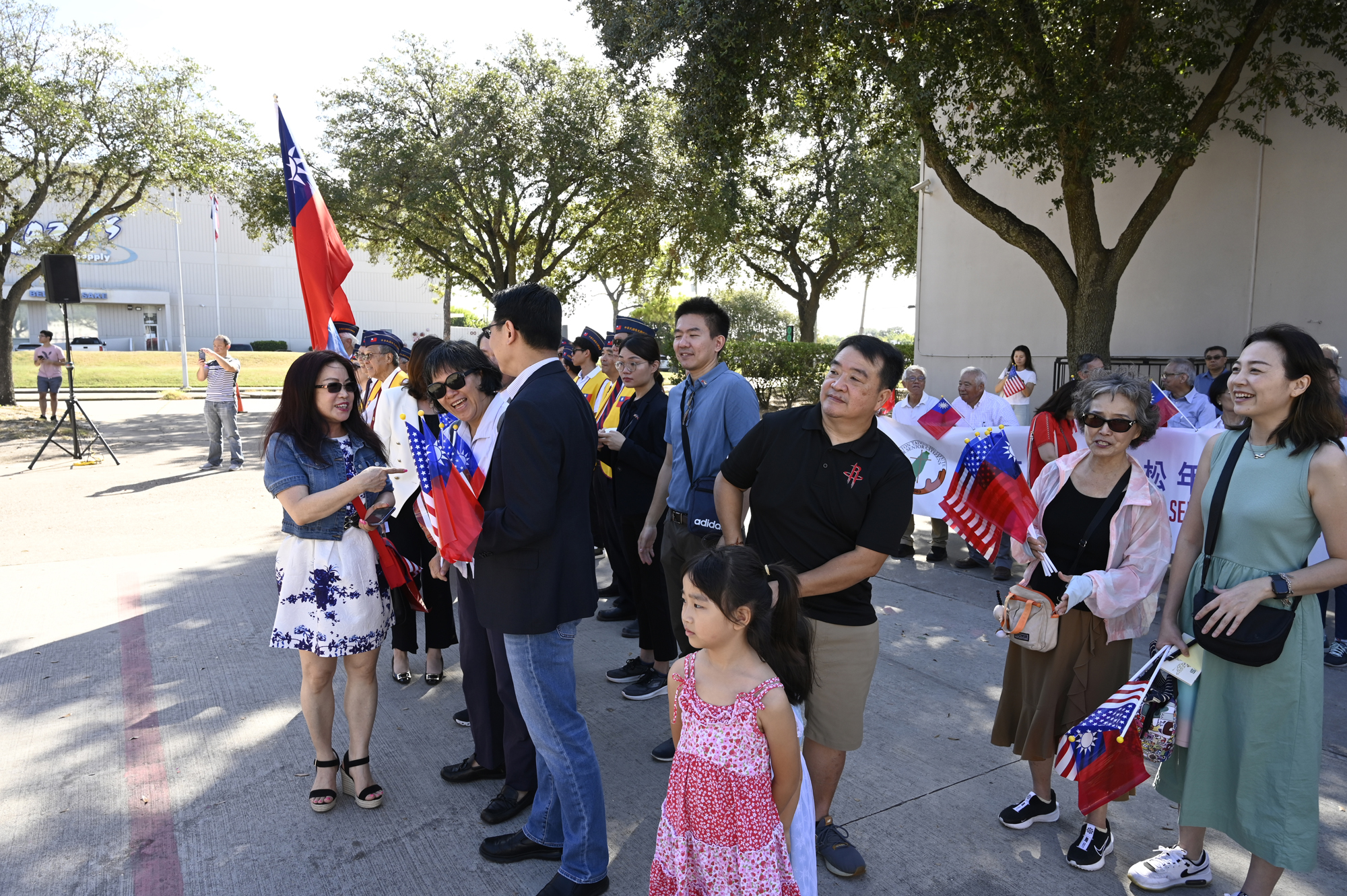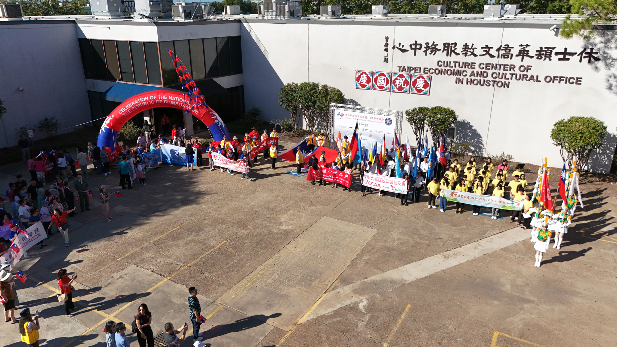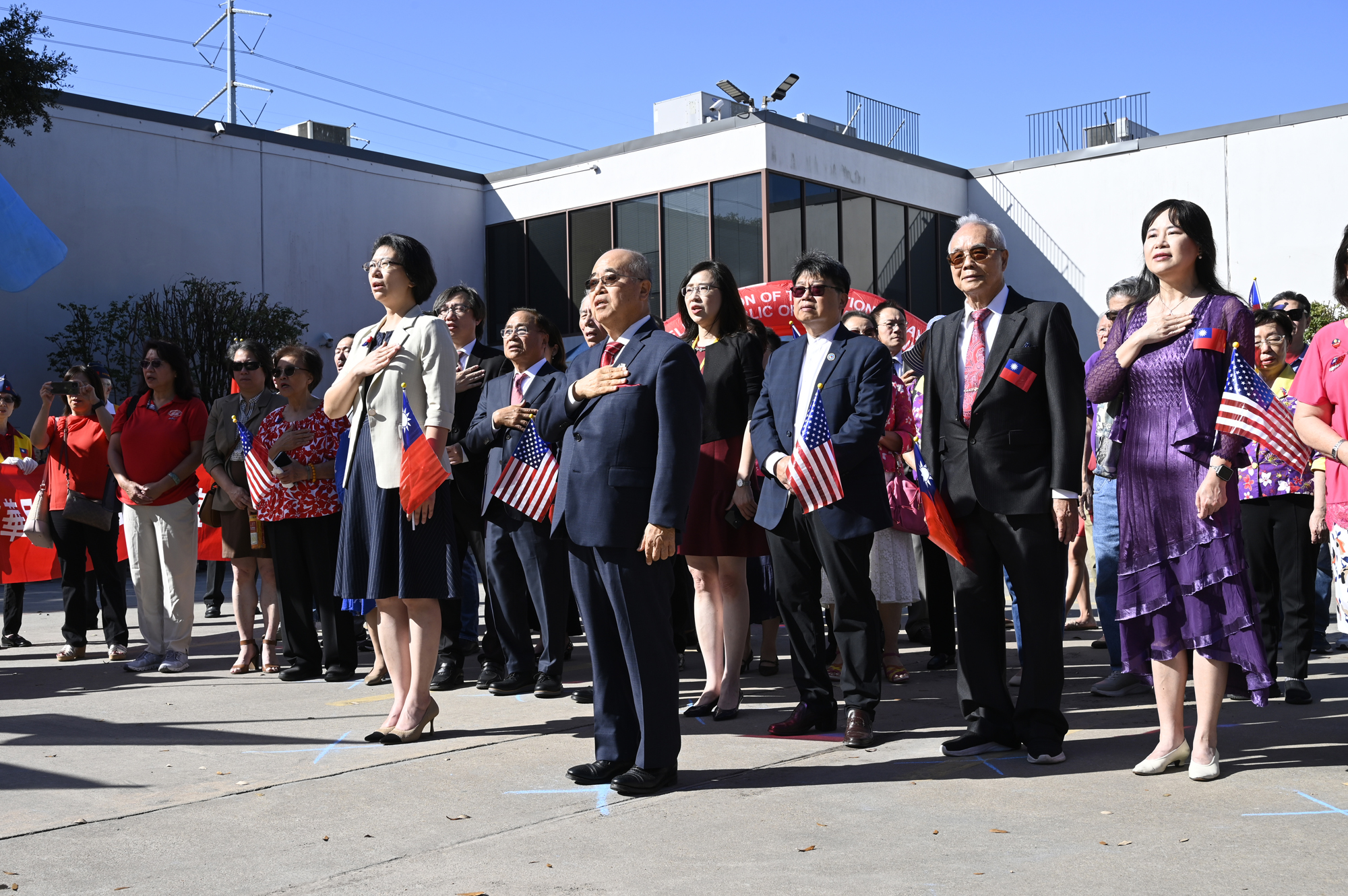 2025年休士頓僑教中心前廣場的國慶國升旗典禮一景。