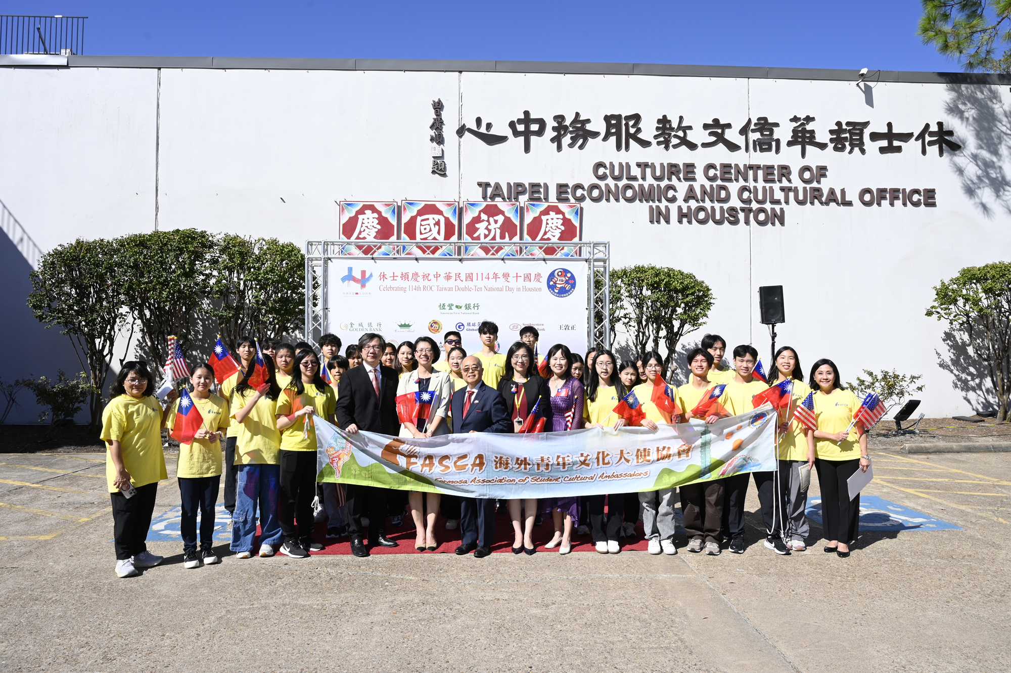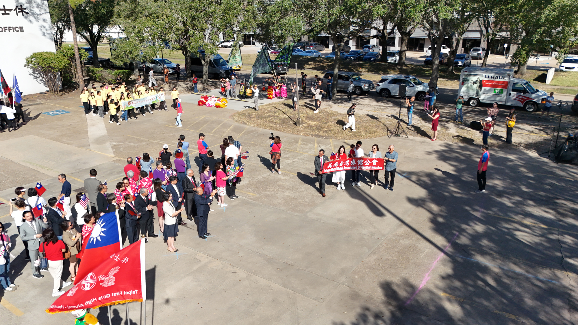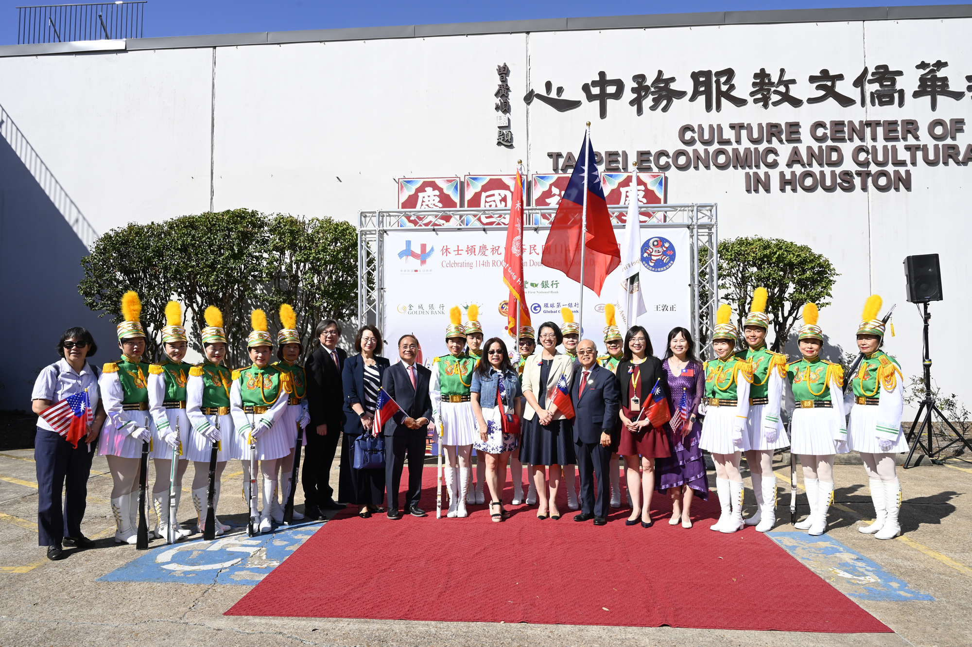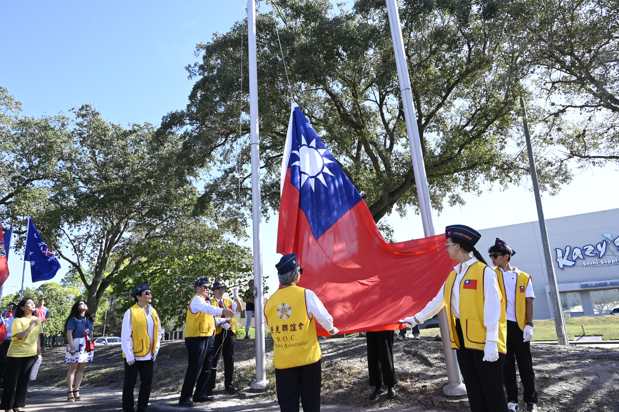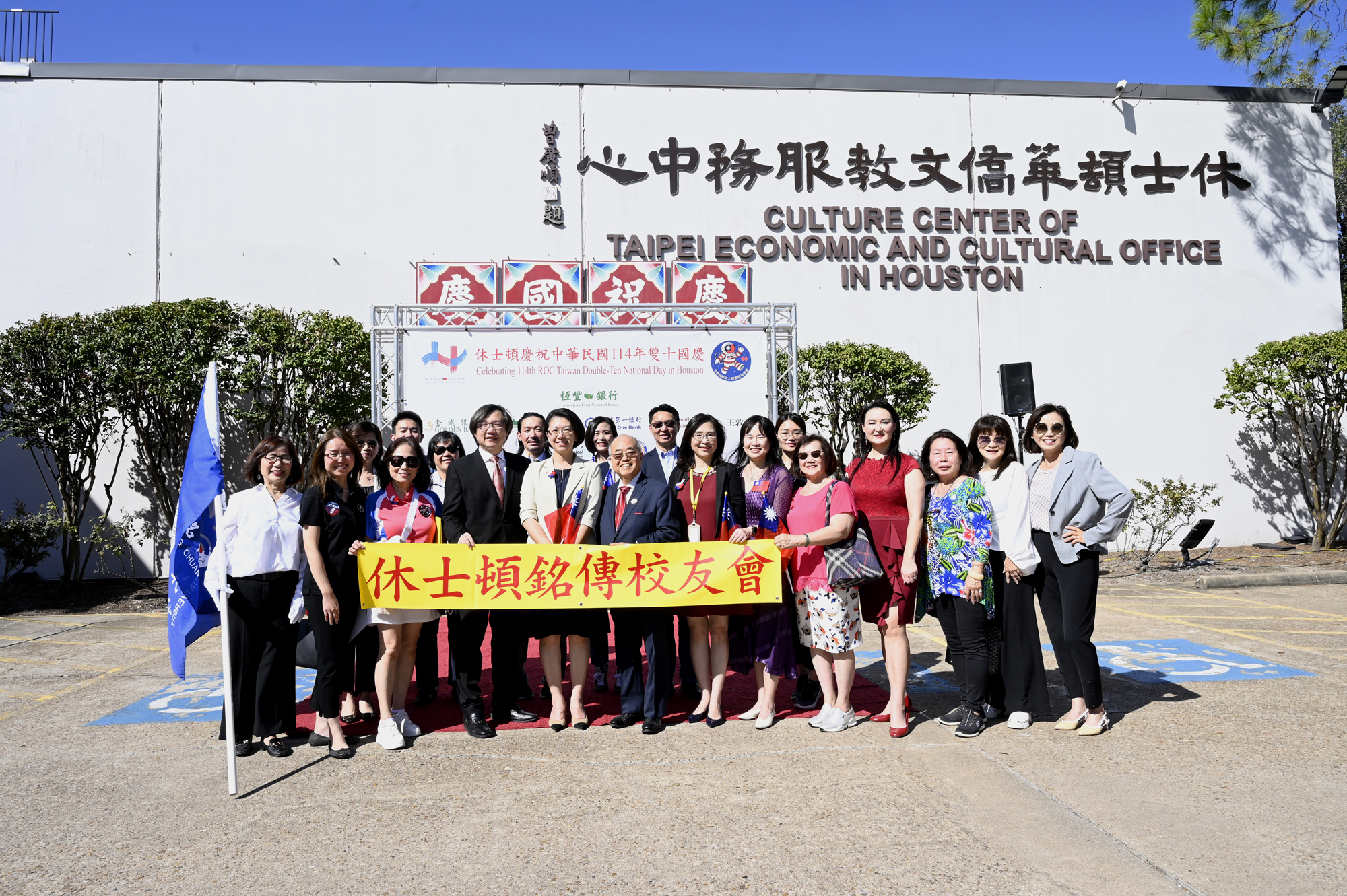 2025年休士頓僑教中心前廣場的國慶國升旗典禮一景。