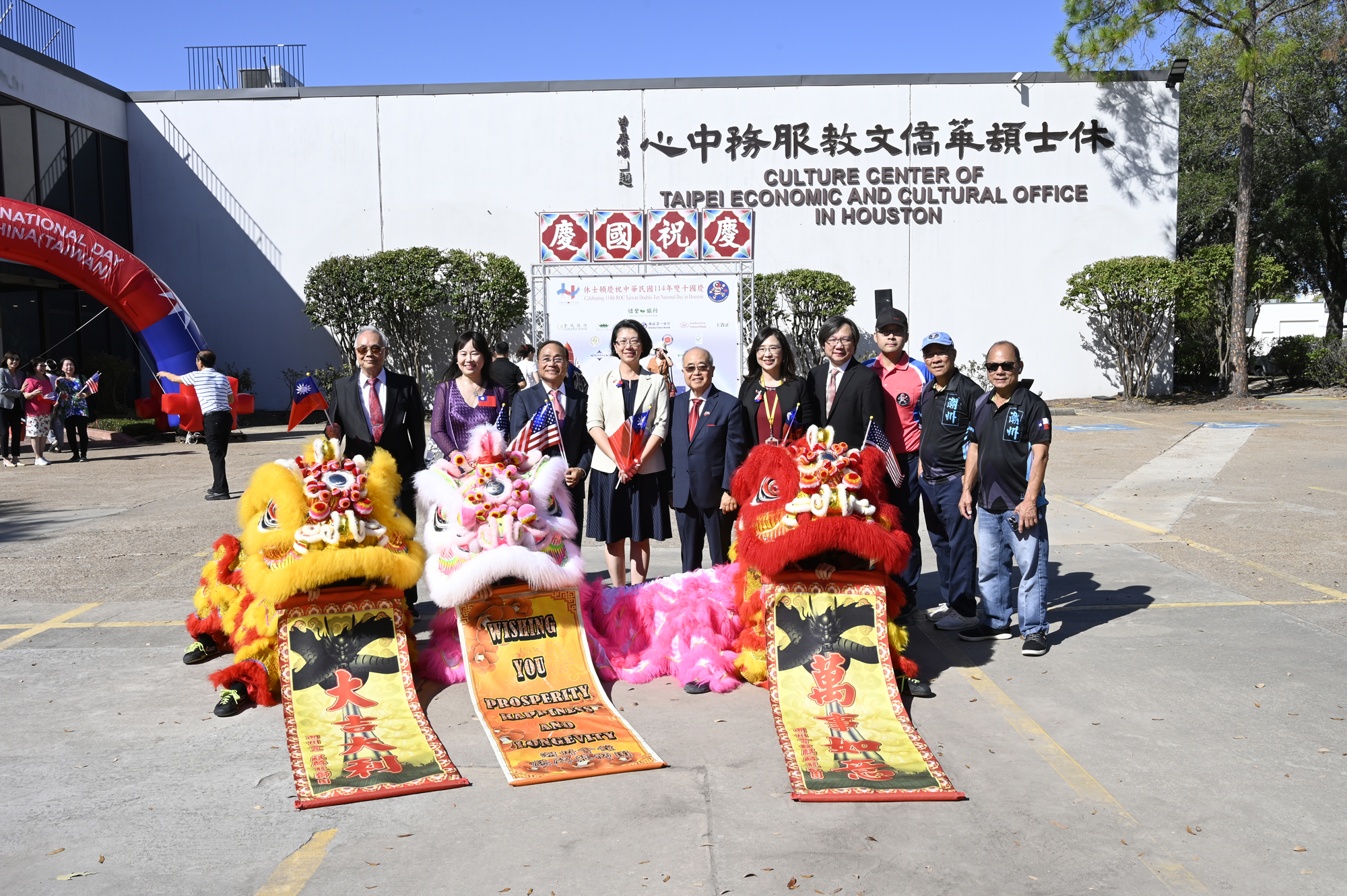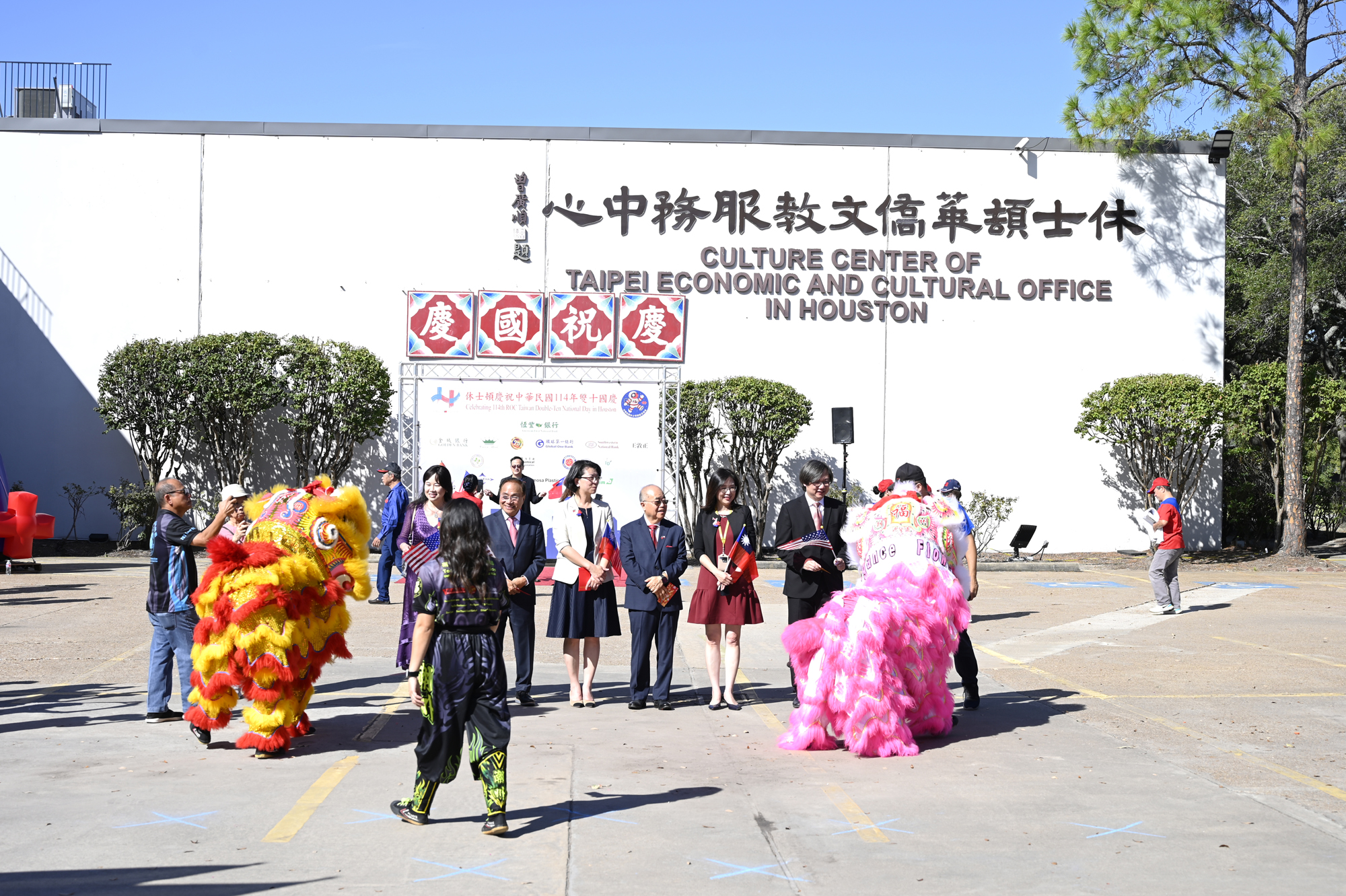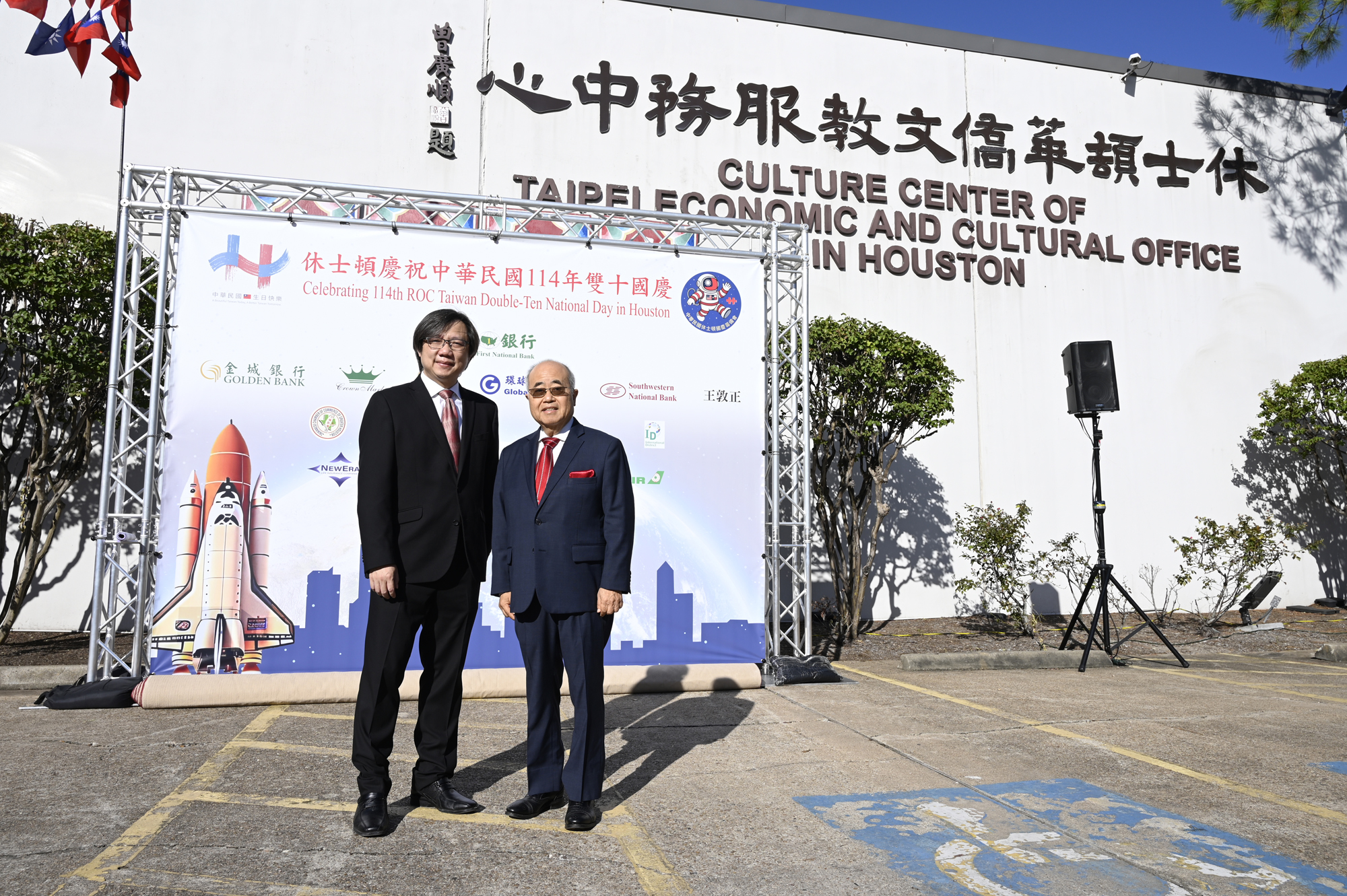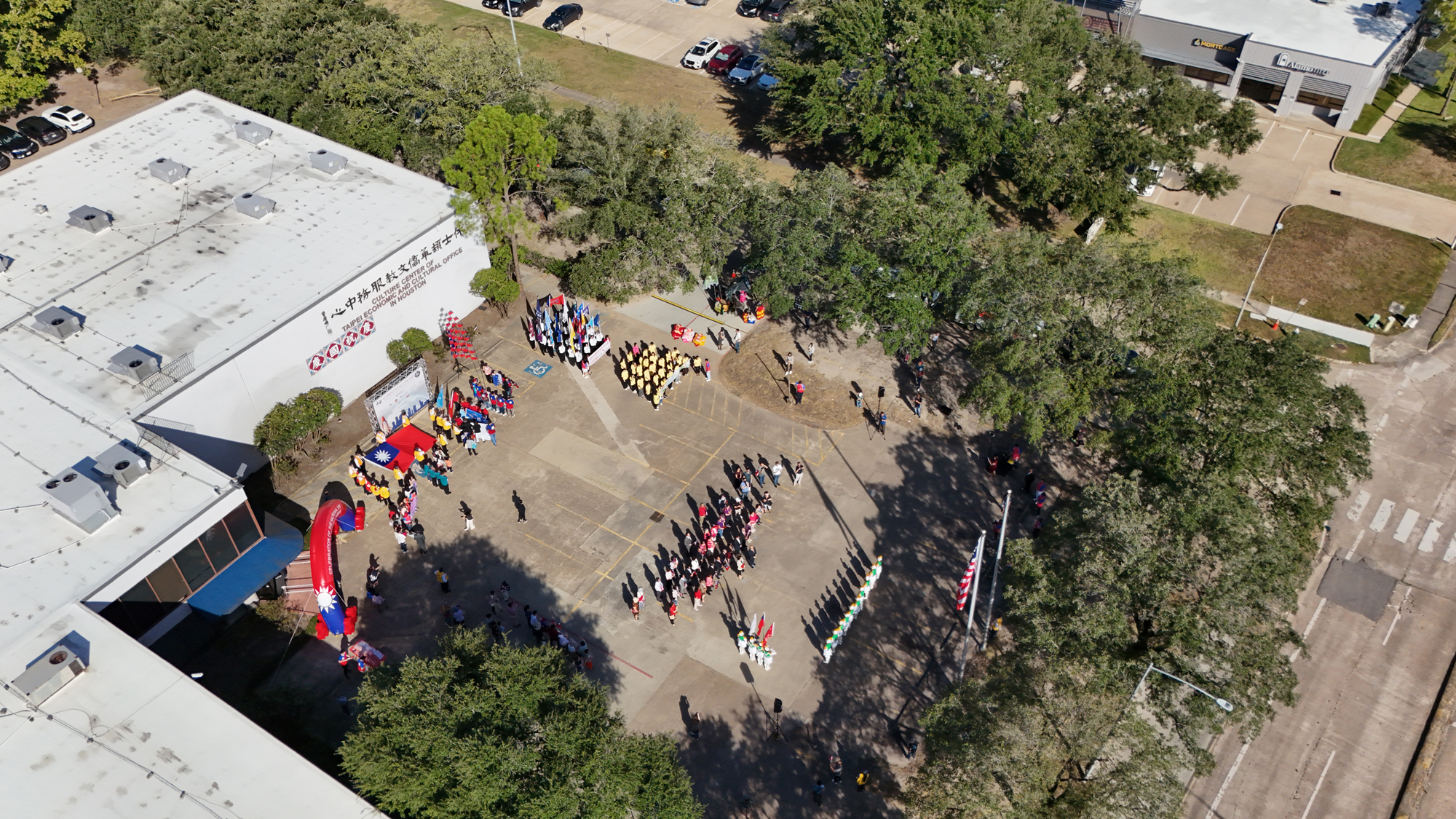 2025年休士頓僑教中心前廣場的國慶國升旗典禮一景。