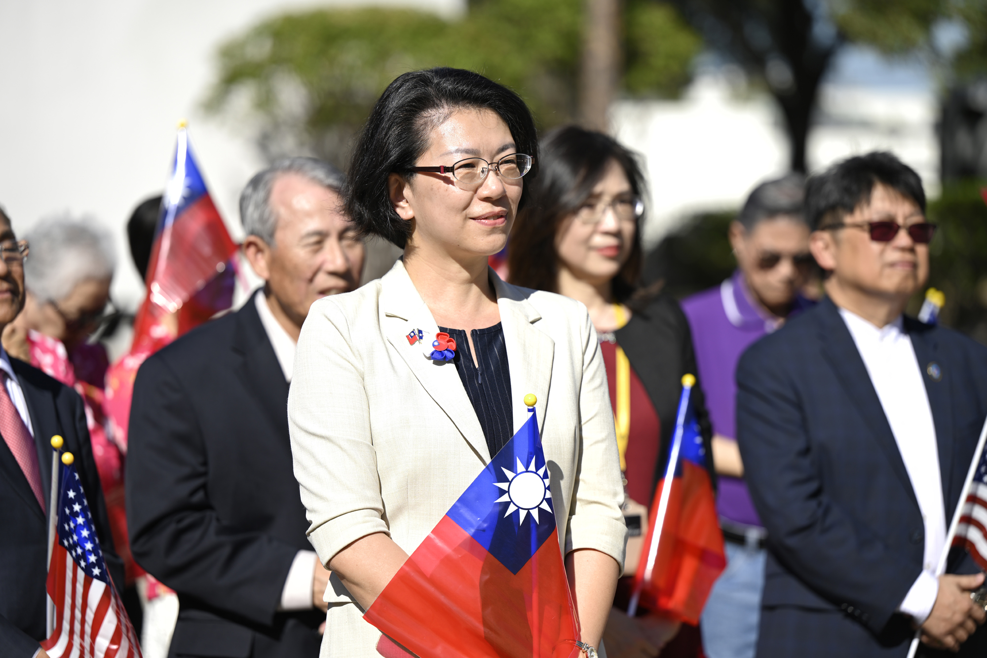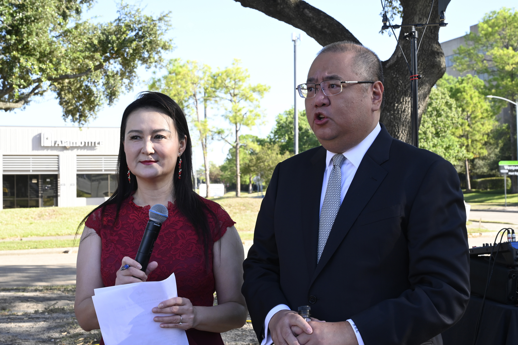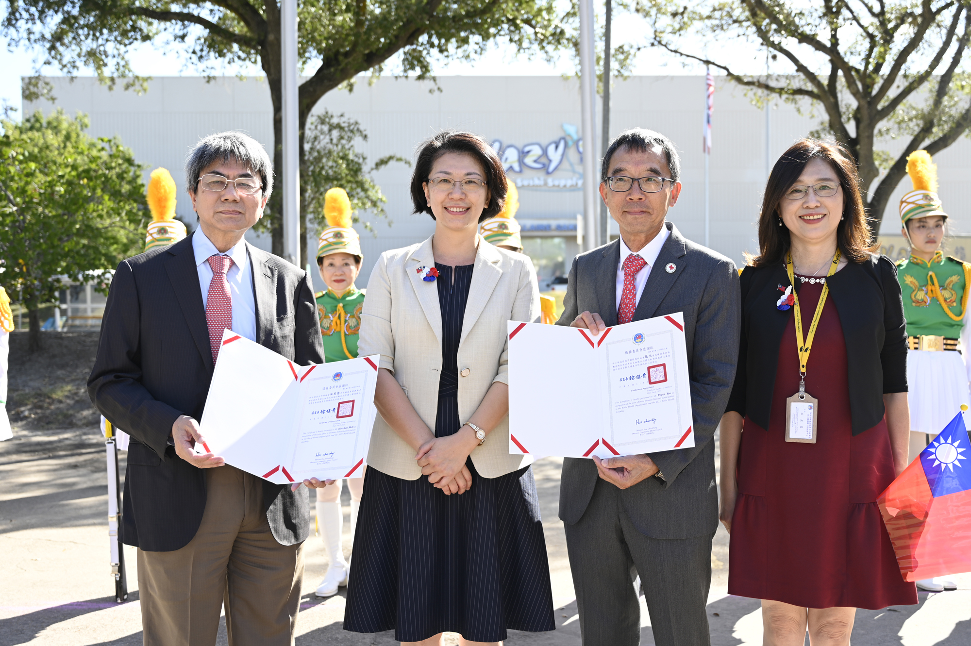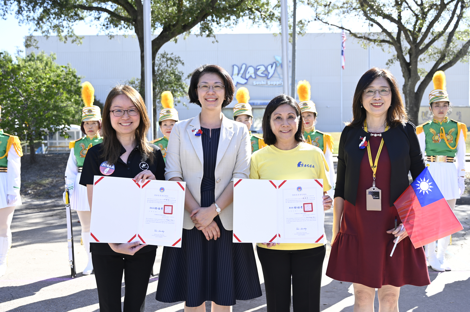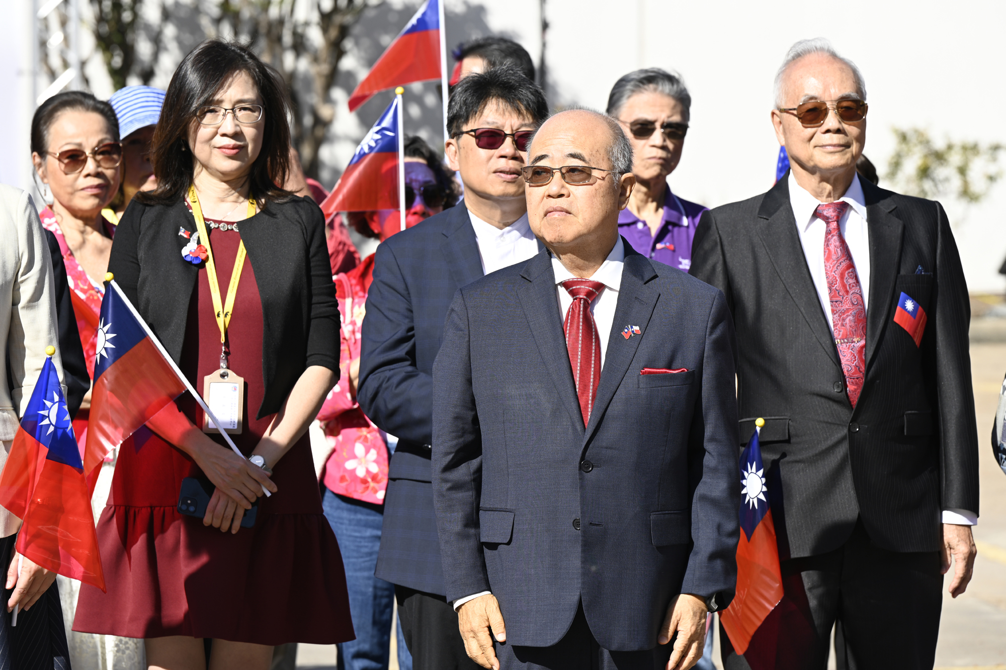 2025年休士頓僑教中心前廣場的國慶國升旗典禮一景。