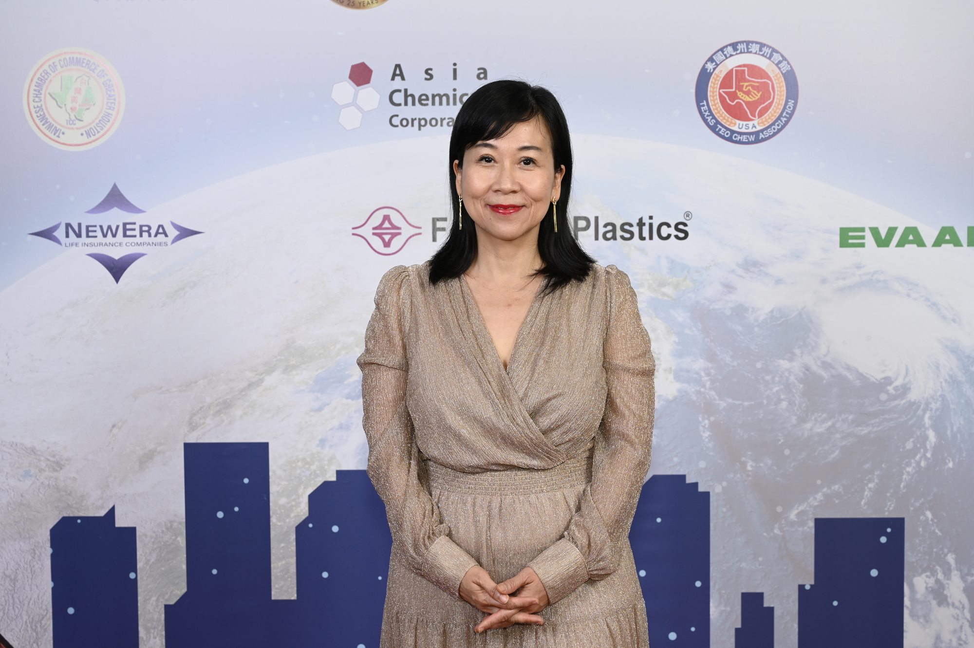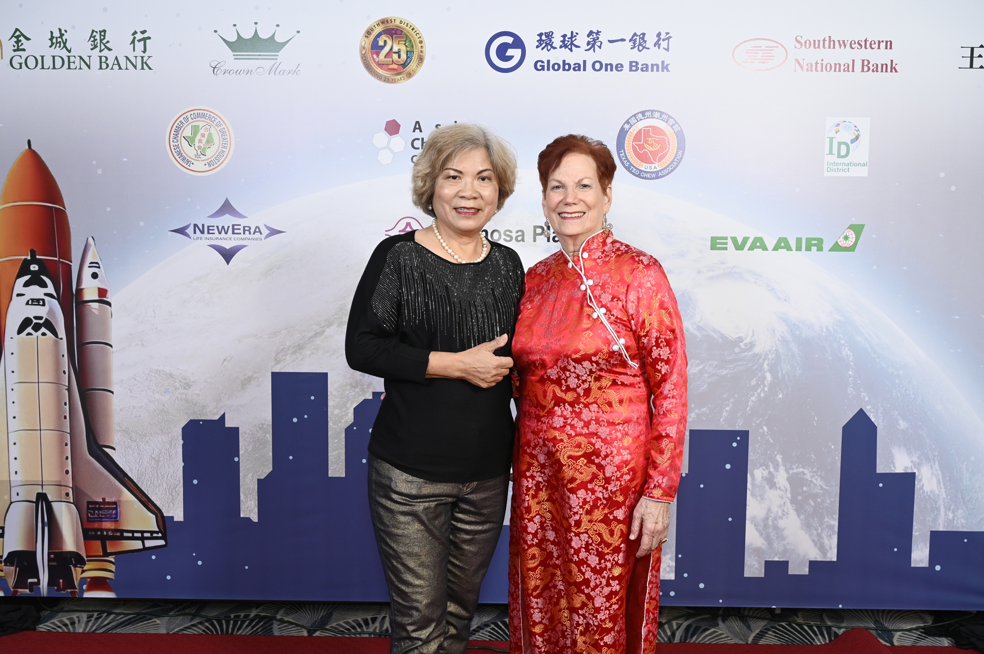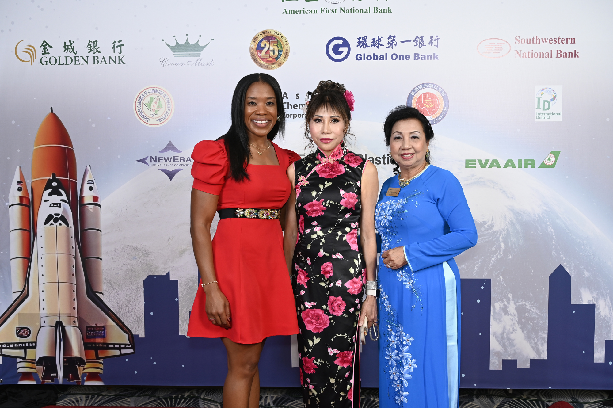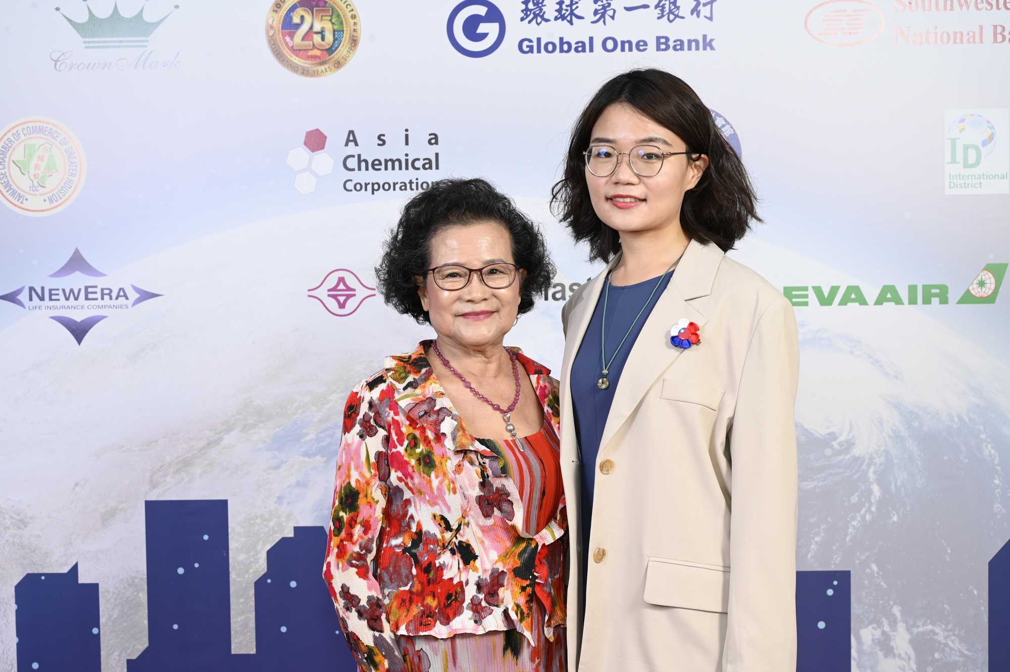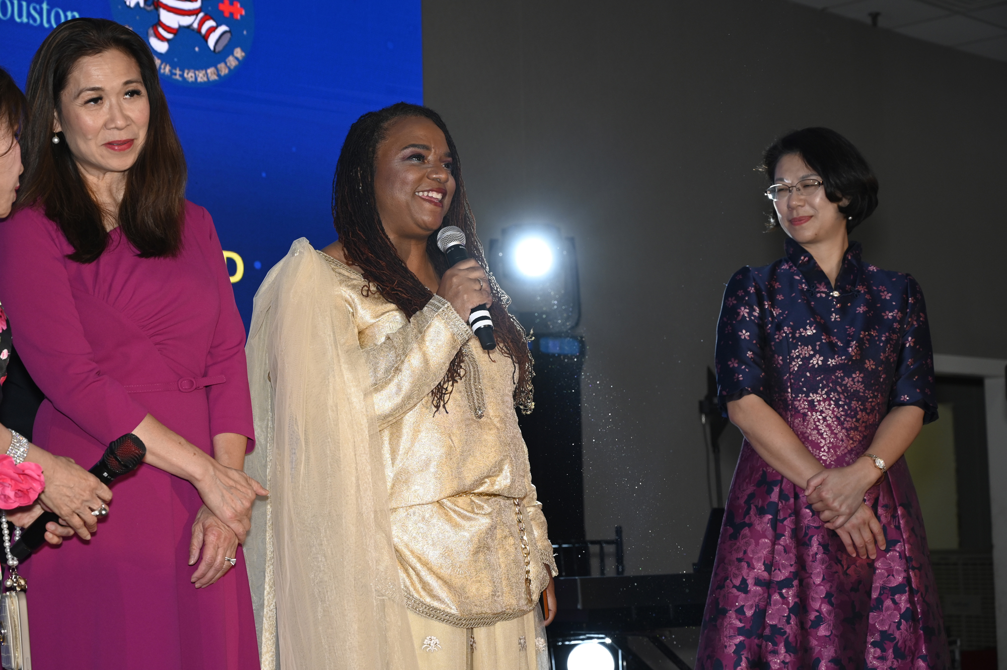 2025年國慶國慶晚宴上,蕭伊芳處長(左一)、林富桂律師(右一)陪同國慶籌備會李雄主任委員(左二)接受國會議員Al Green(右二)致贈賀狀。