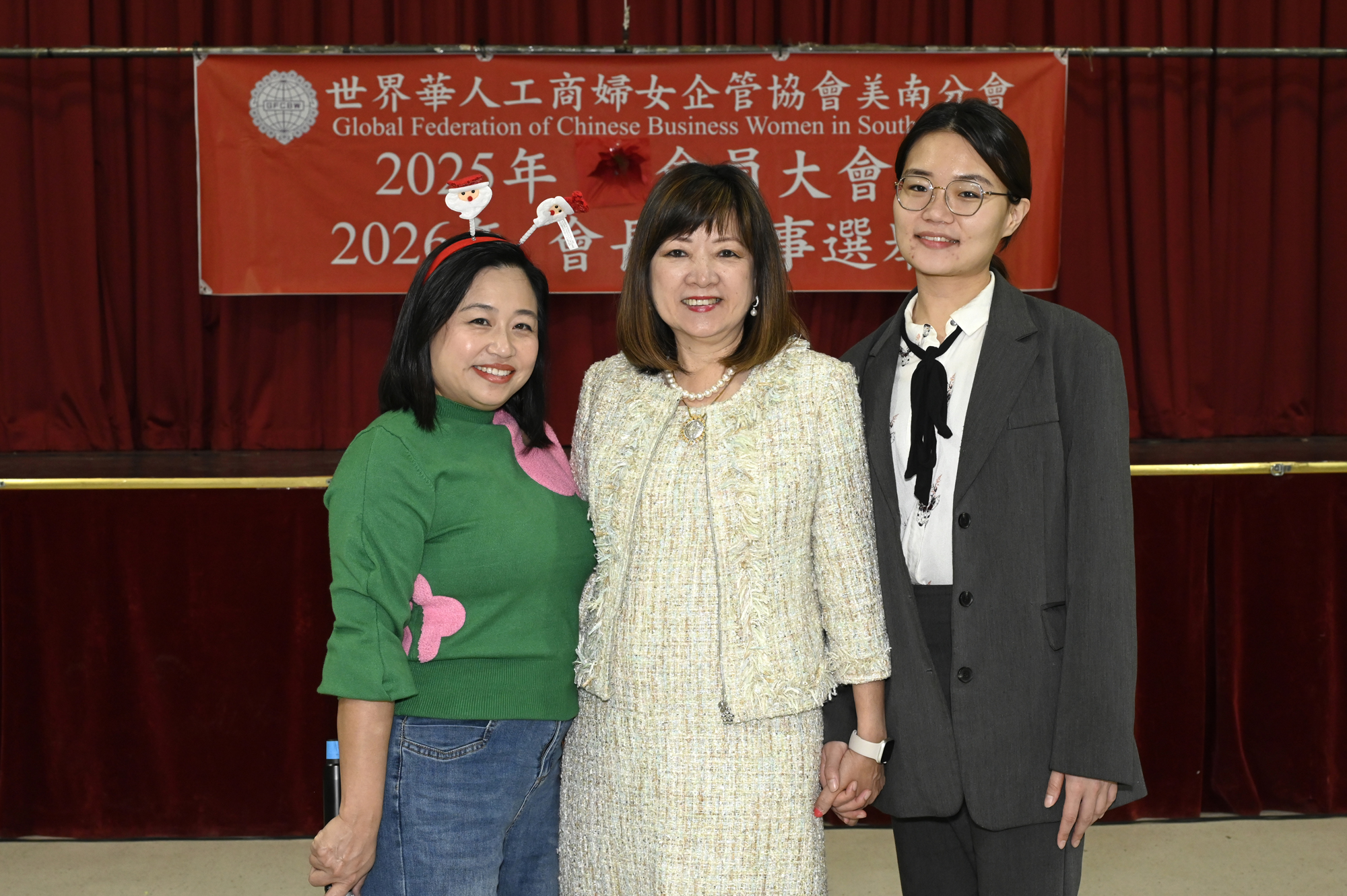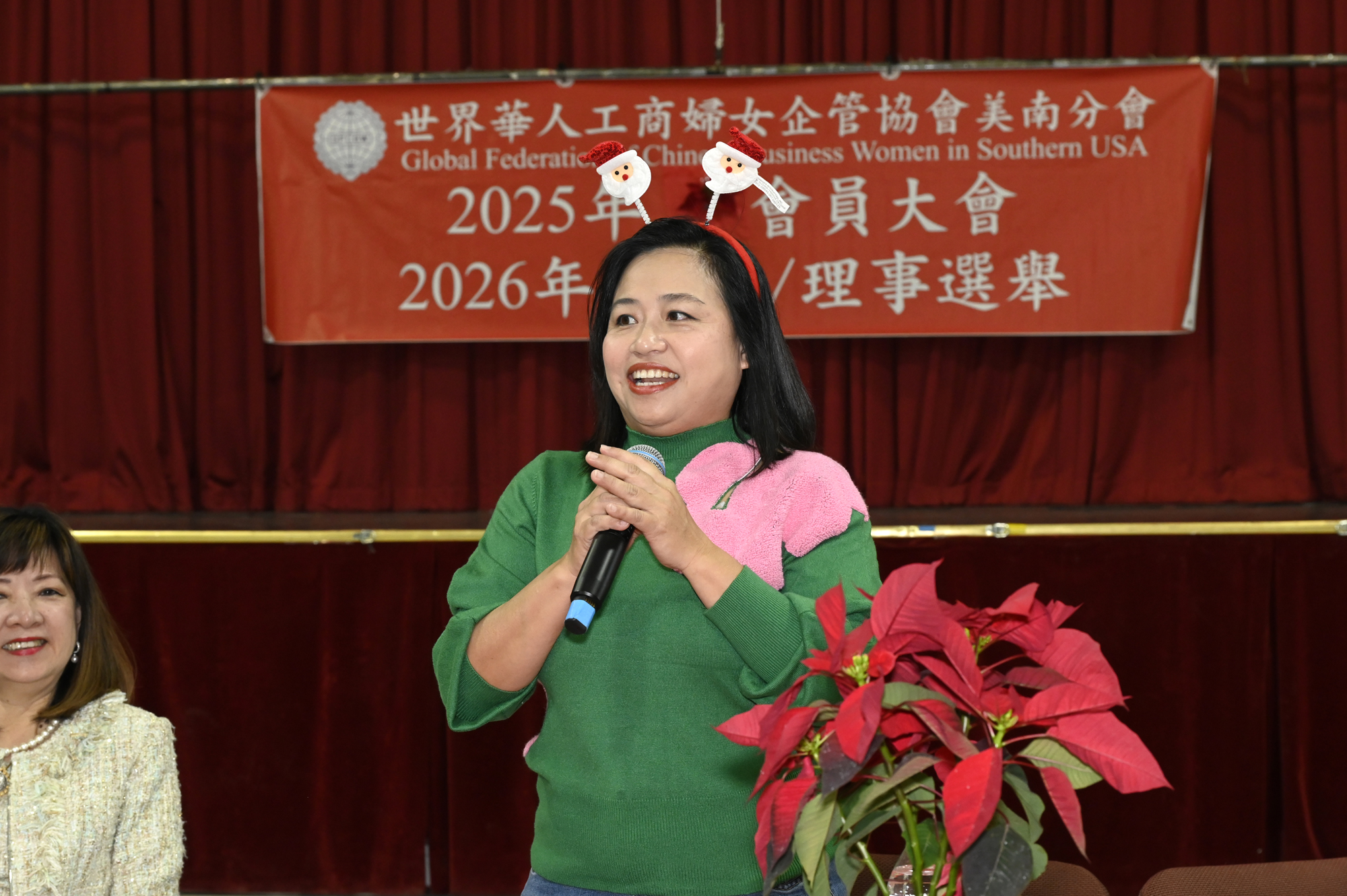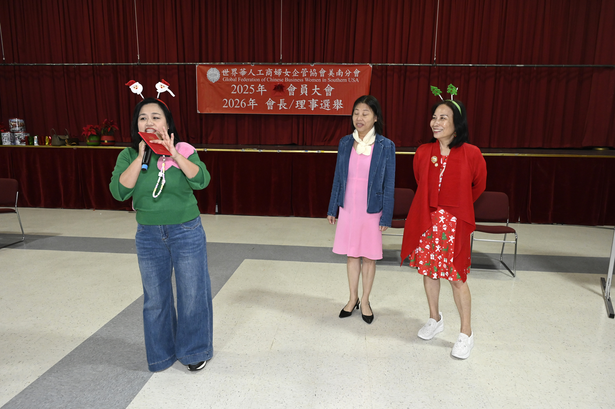 世界華人工商婦女企管協會美南分會,這場年終餐會上,選出了2026年會長及新理事團隊,而裴俊莉會長也將在當天活動後,將為過去一年的所有活動畫下句點,順利卸任。會長正式交接儀式,將安排在2026年的第一季舉行,接任的孫玉玟會長,將於1月1日起開始安排活動會務。