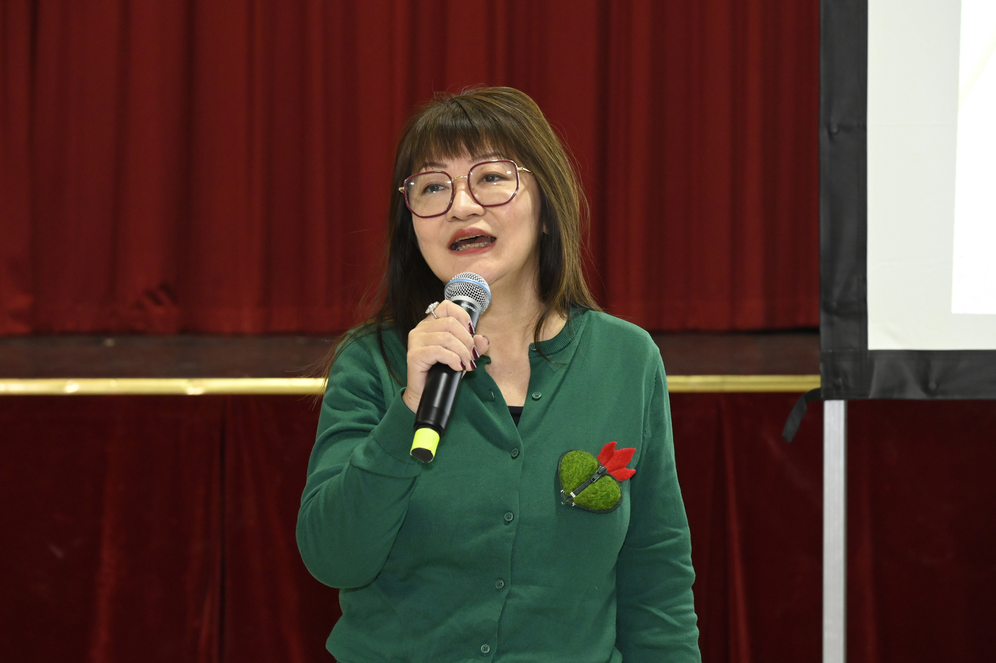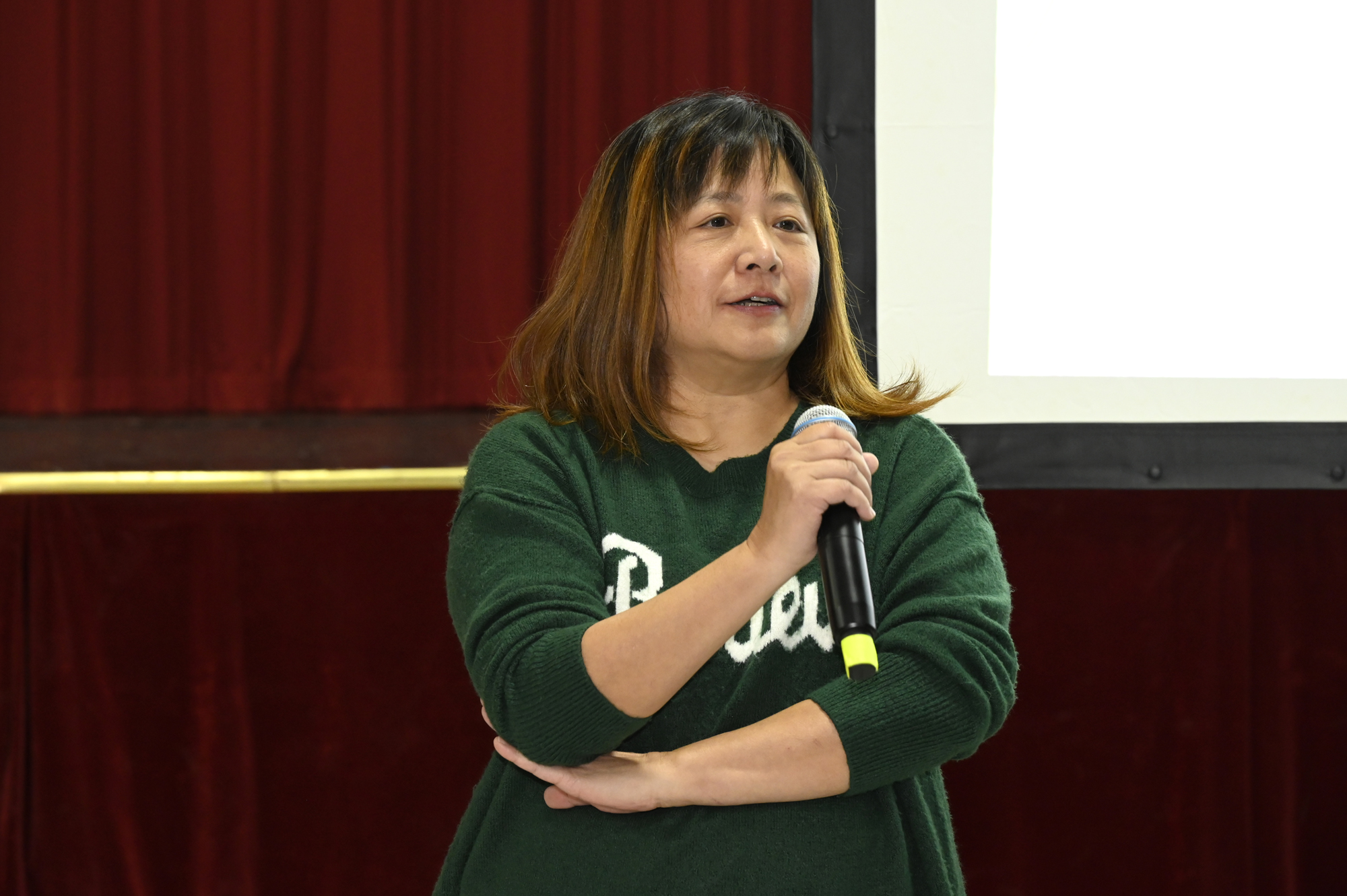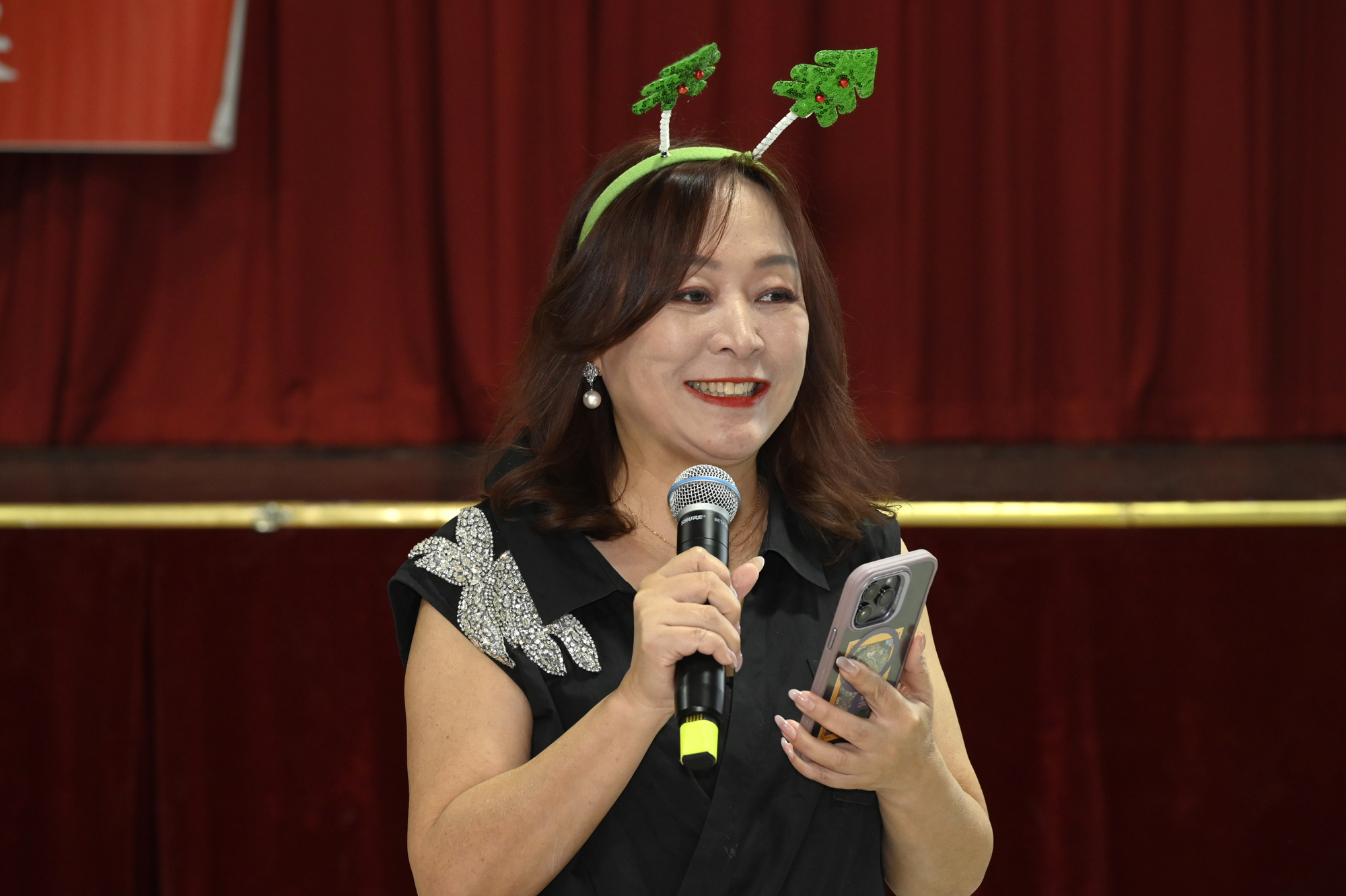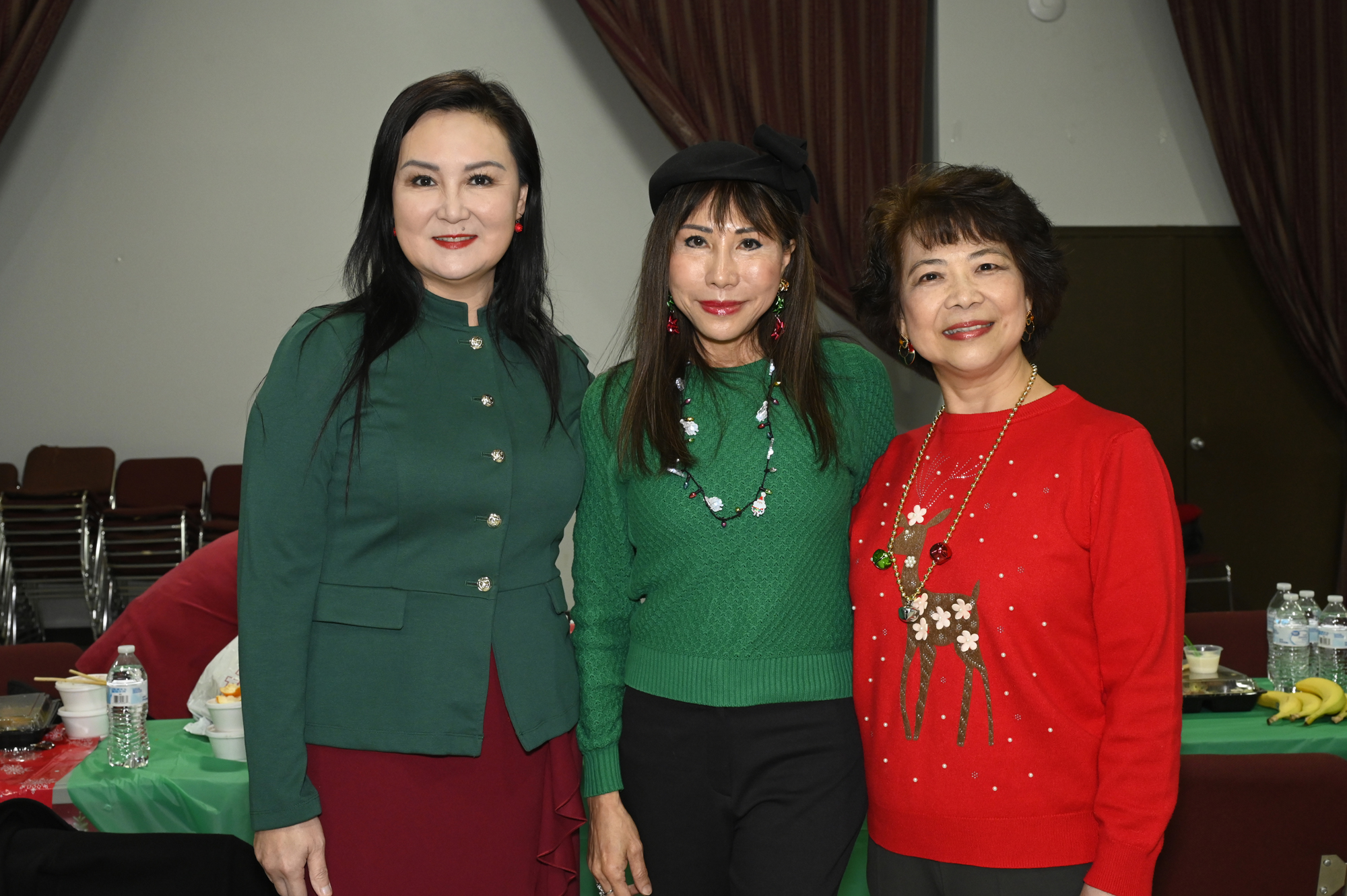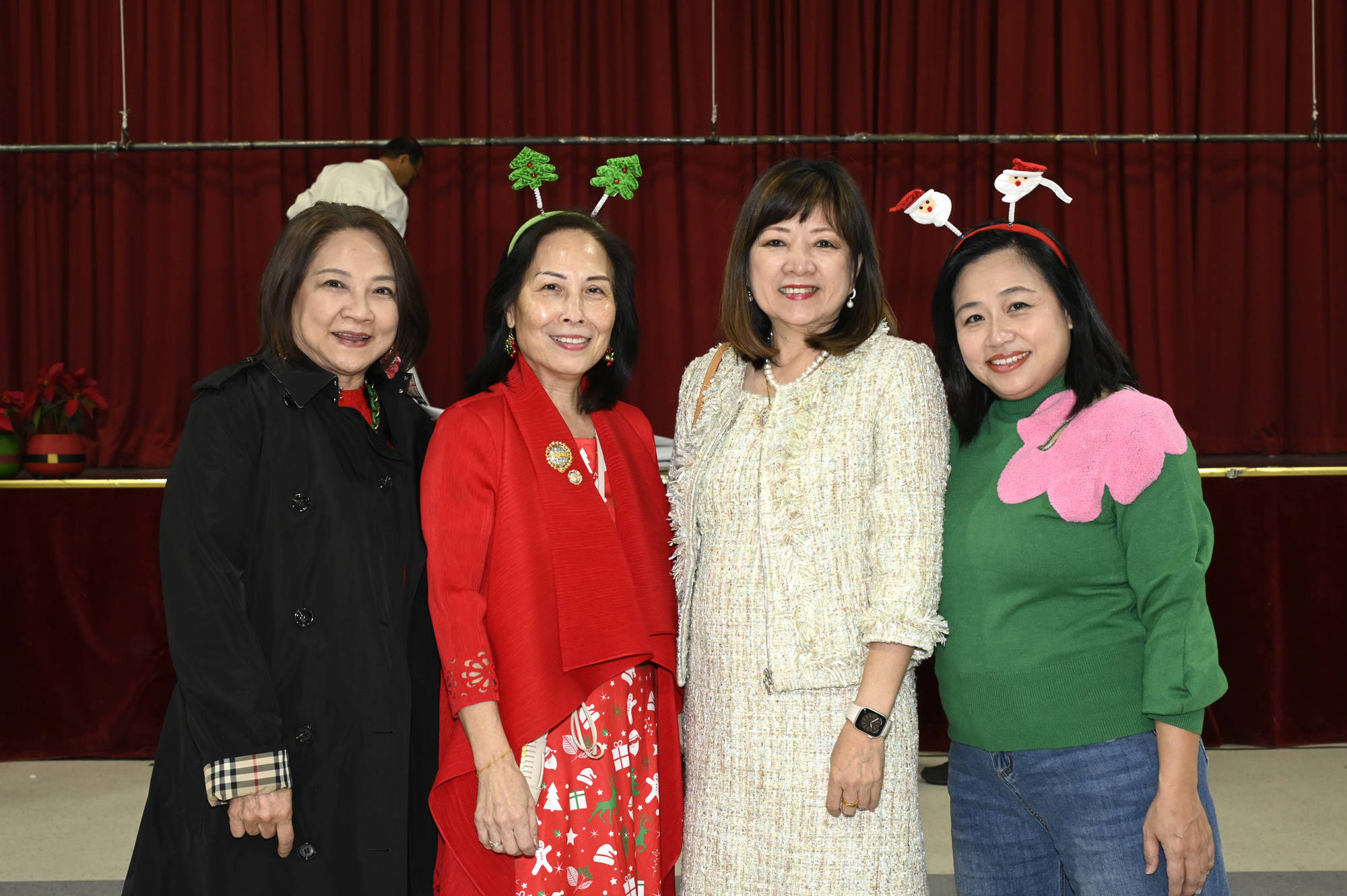 2025年世華美南分會年終理事選舉上唱會歌,右起何真前會長、裴俊莉會長、黎淑瑛名譽總會長、張文華前會長。