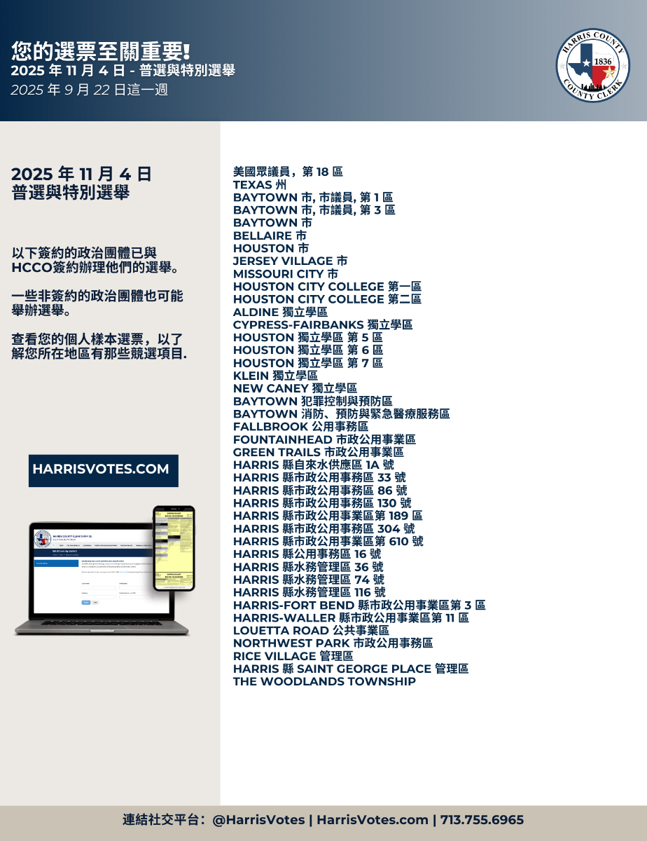 (Harris County書記官辦公室消息