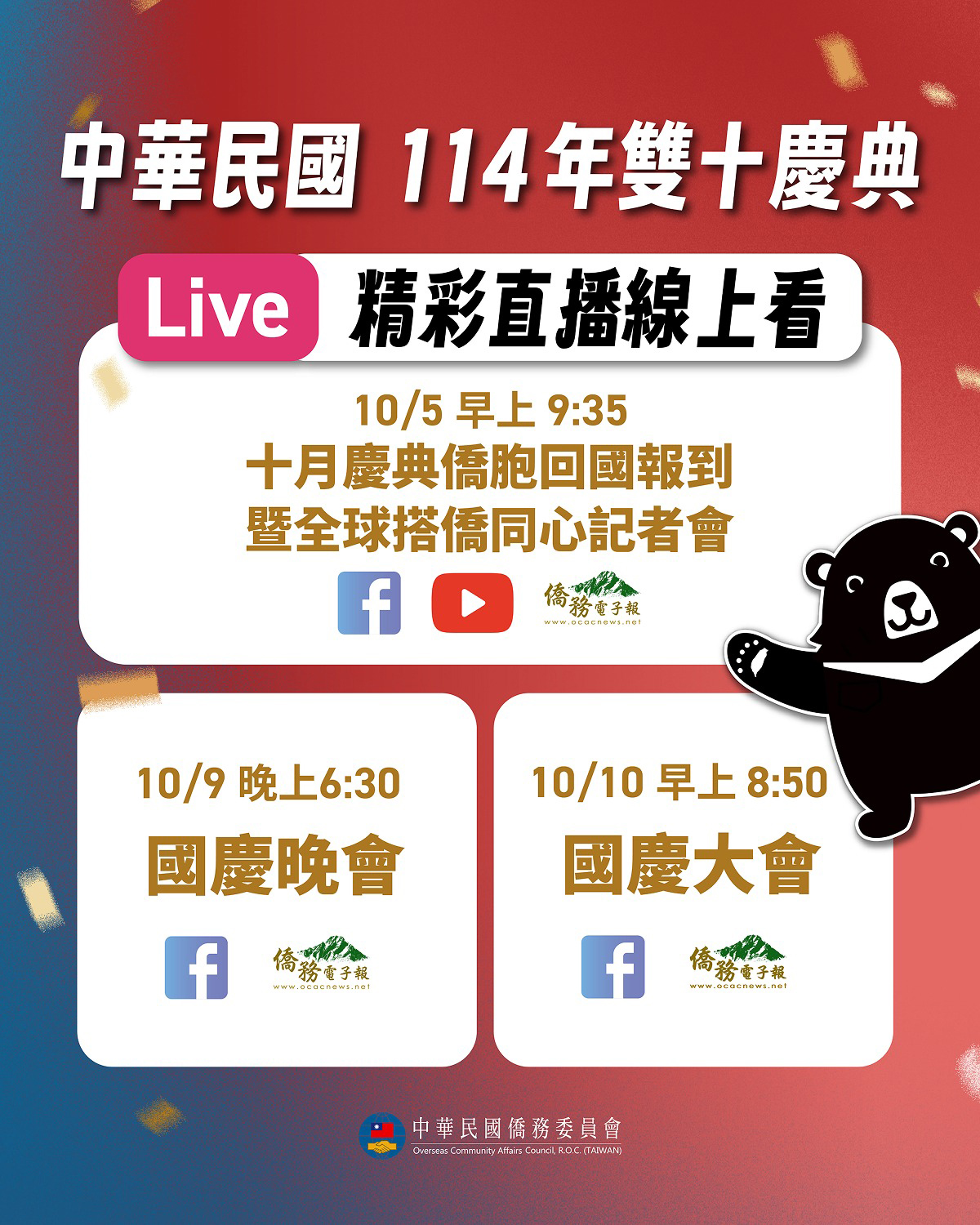 十月慶典僑胞回國報到暨全球搭僑同心記者會(另於 YouTube 頻道同步直播:https://www.youtube.com/c/taiwanmactv)