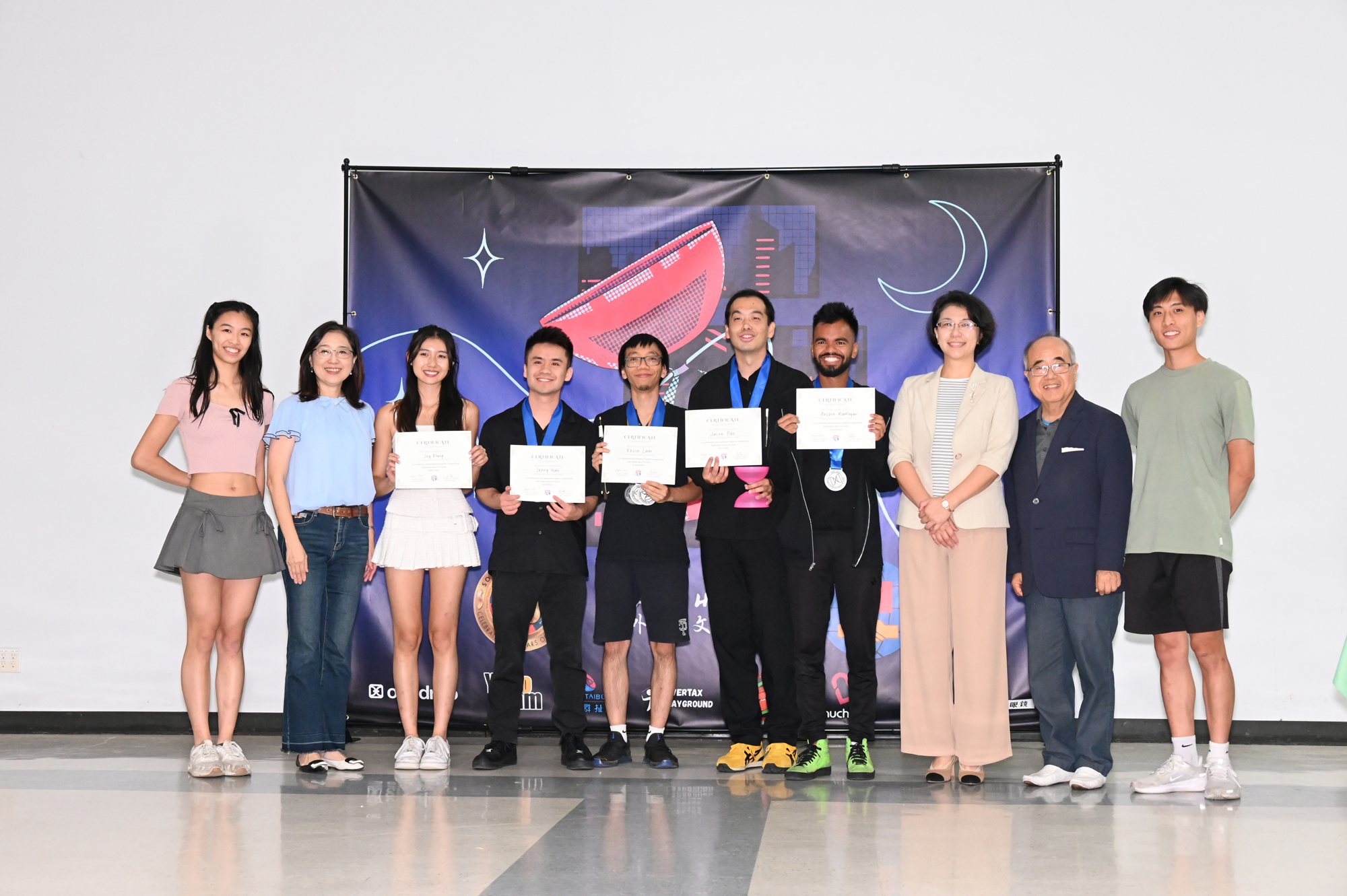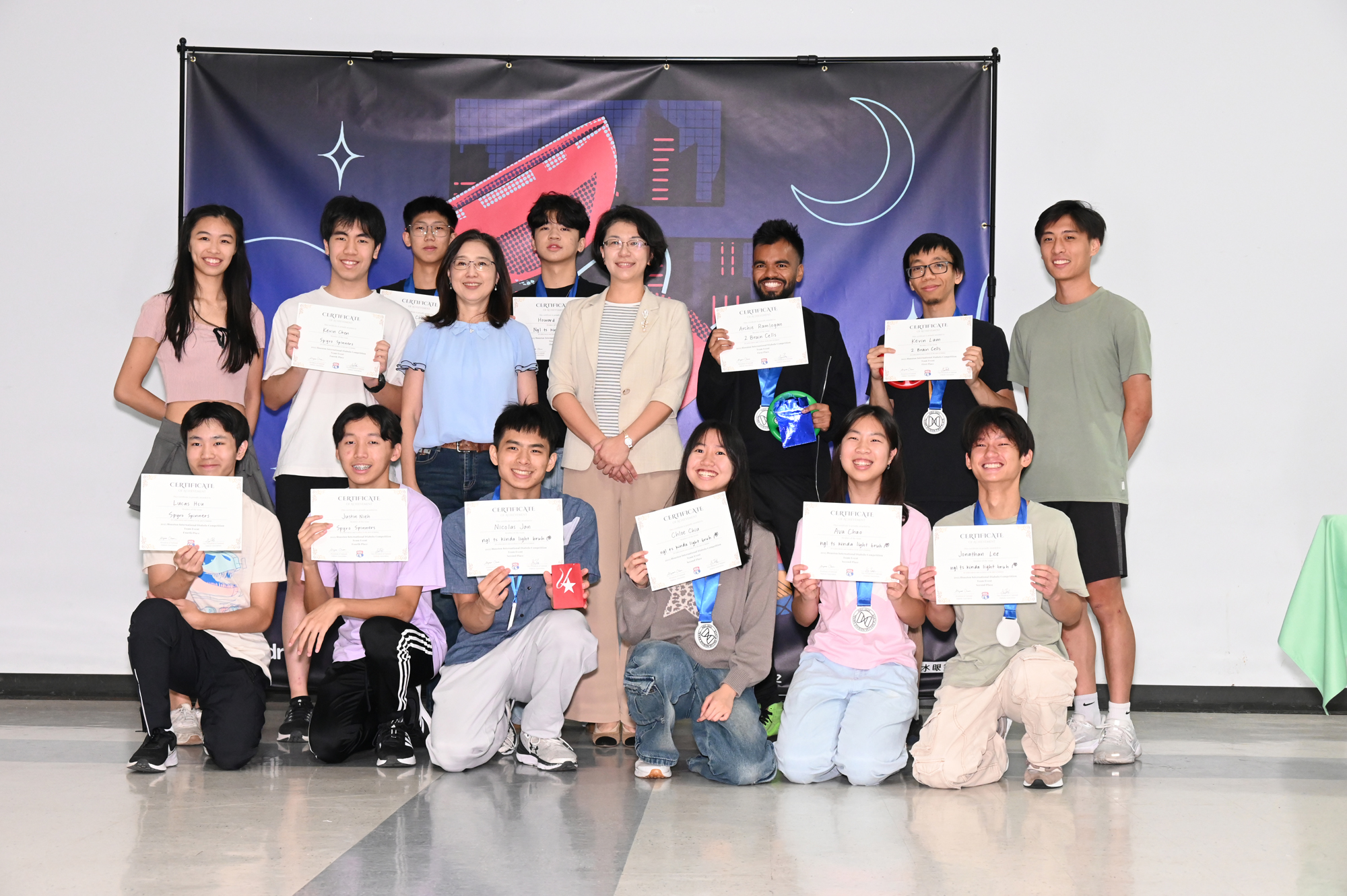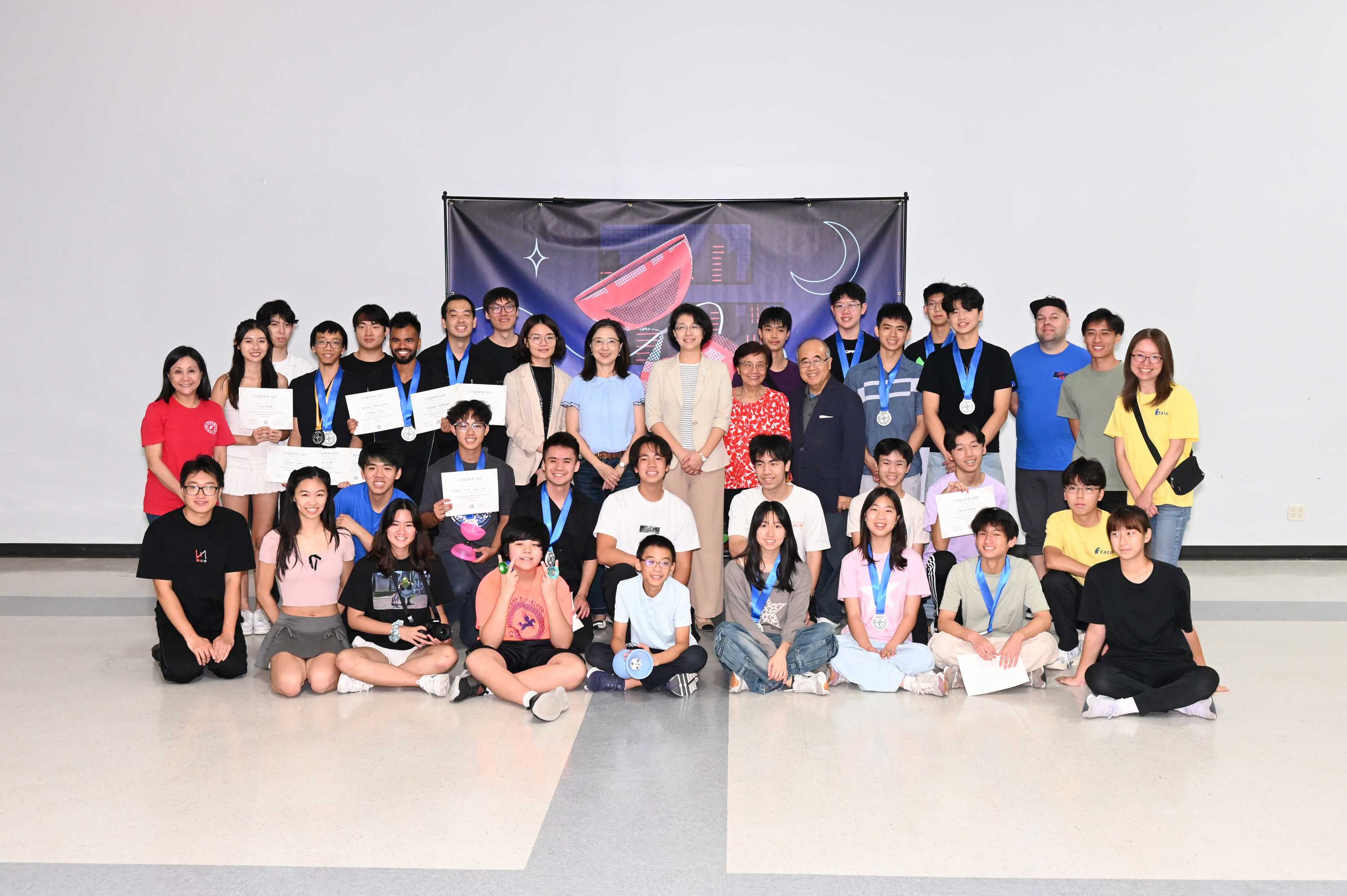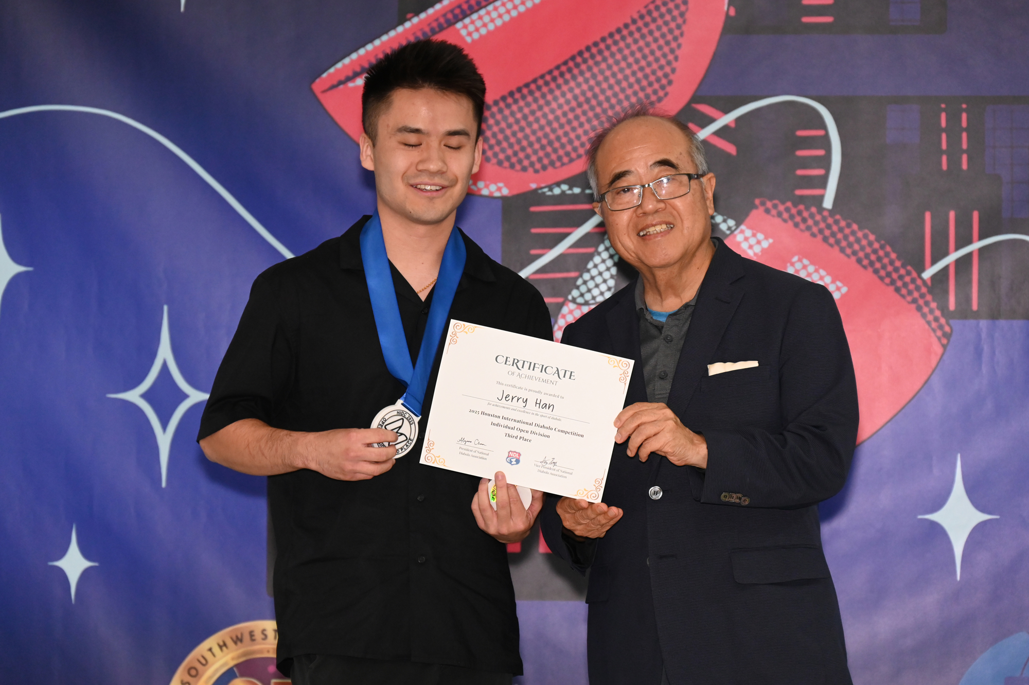 國際扯鈴聯盟大賽主辦人與獲獎人和貴賓合影。