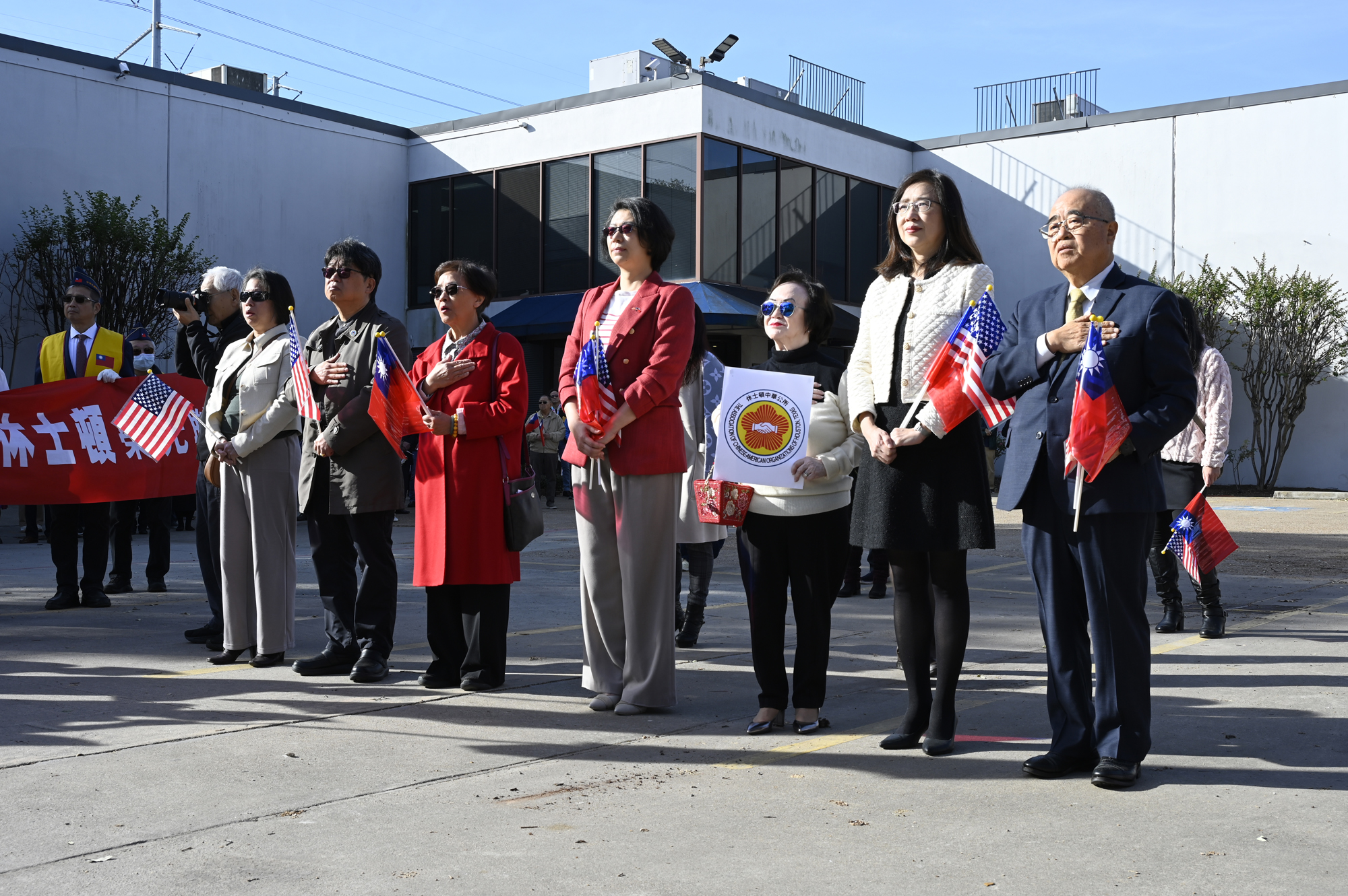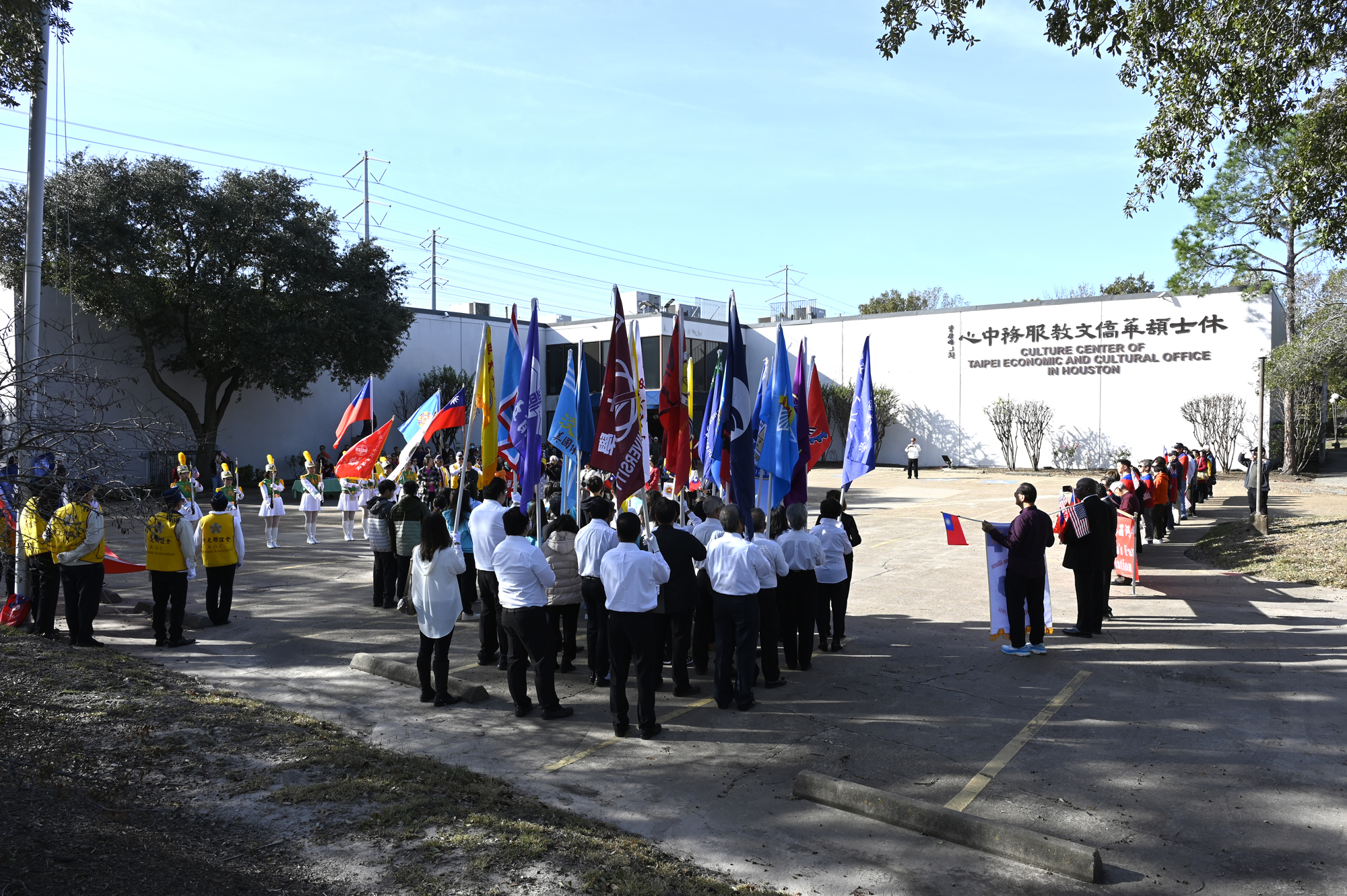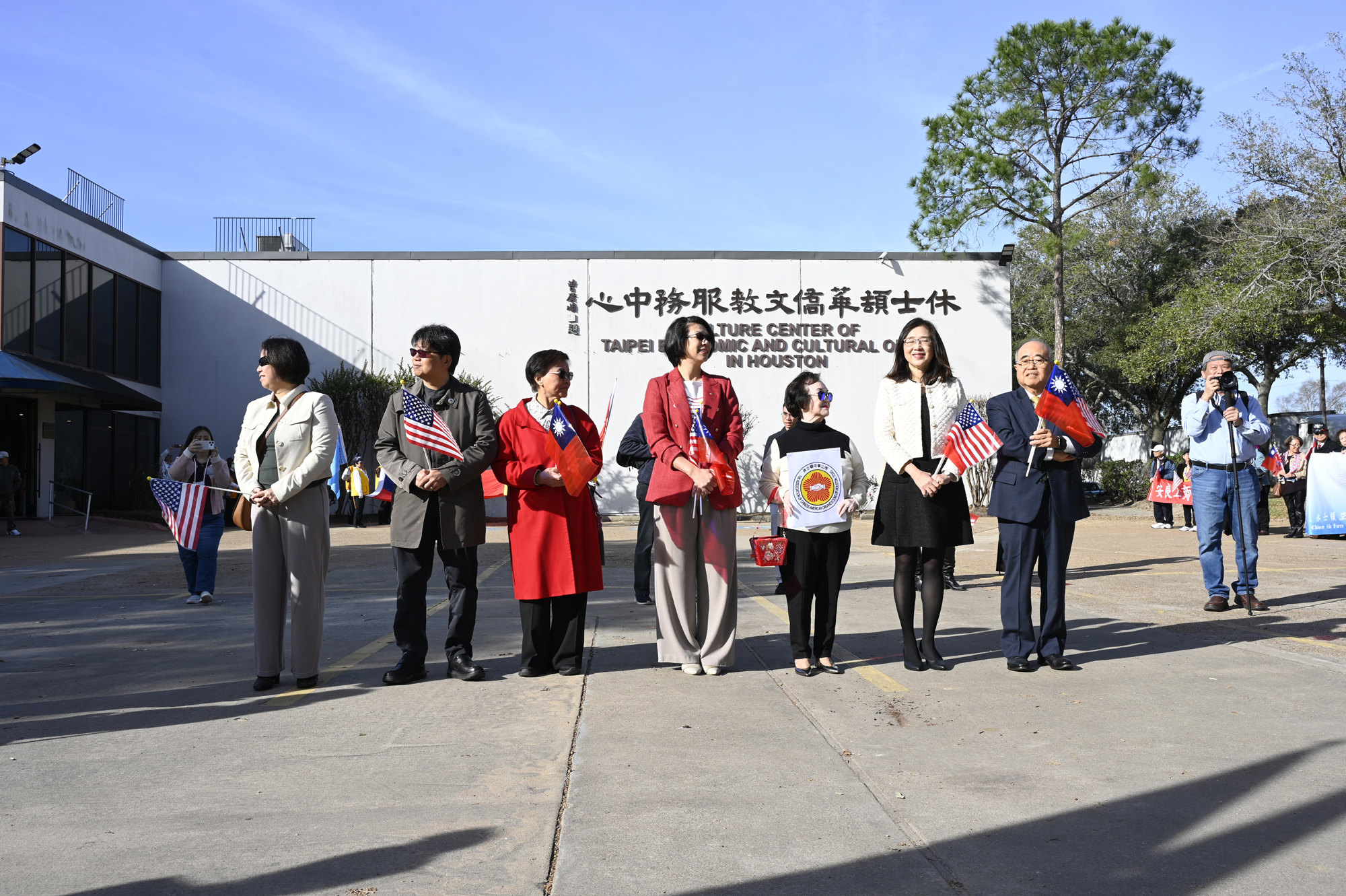 2026年的元旦升旗典禮,是個晴朗的天氣,僑胞社團一早就陸續來到休士頓僑教中心,等候升旗儀式的啟動,社團紛紛拉起了橫幅出場,增加能見度,最後大家目迎中華民國國旗緩緩升起,完成每年第一天最重要的任務,將國旗高高掛上。