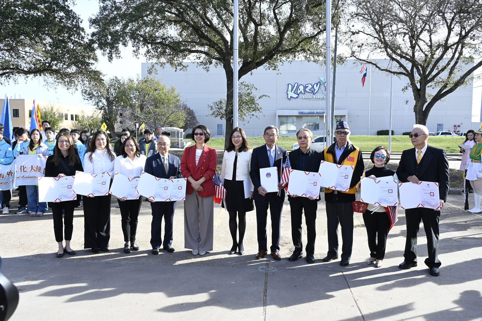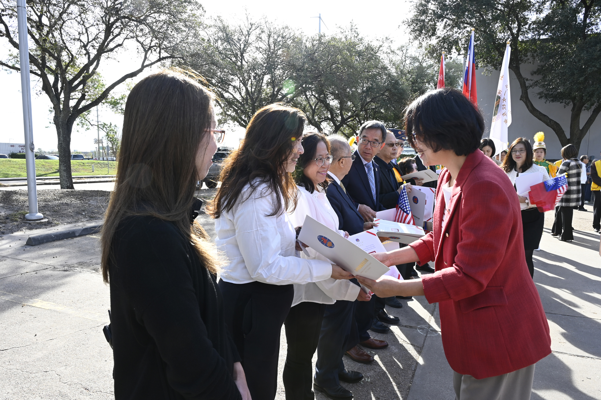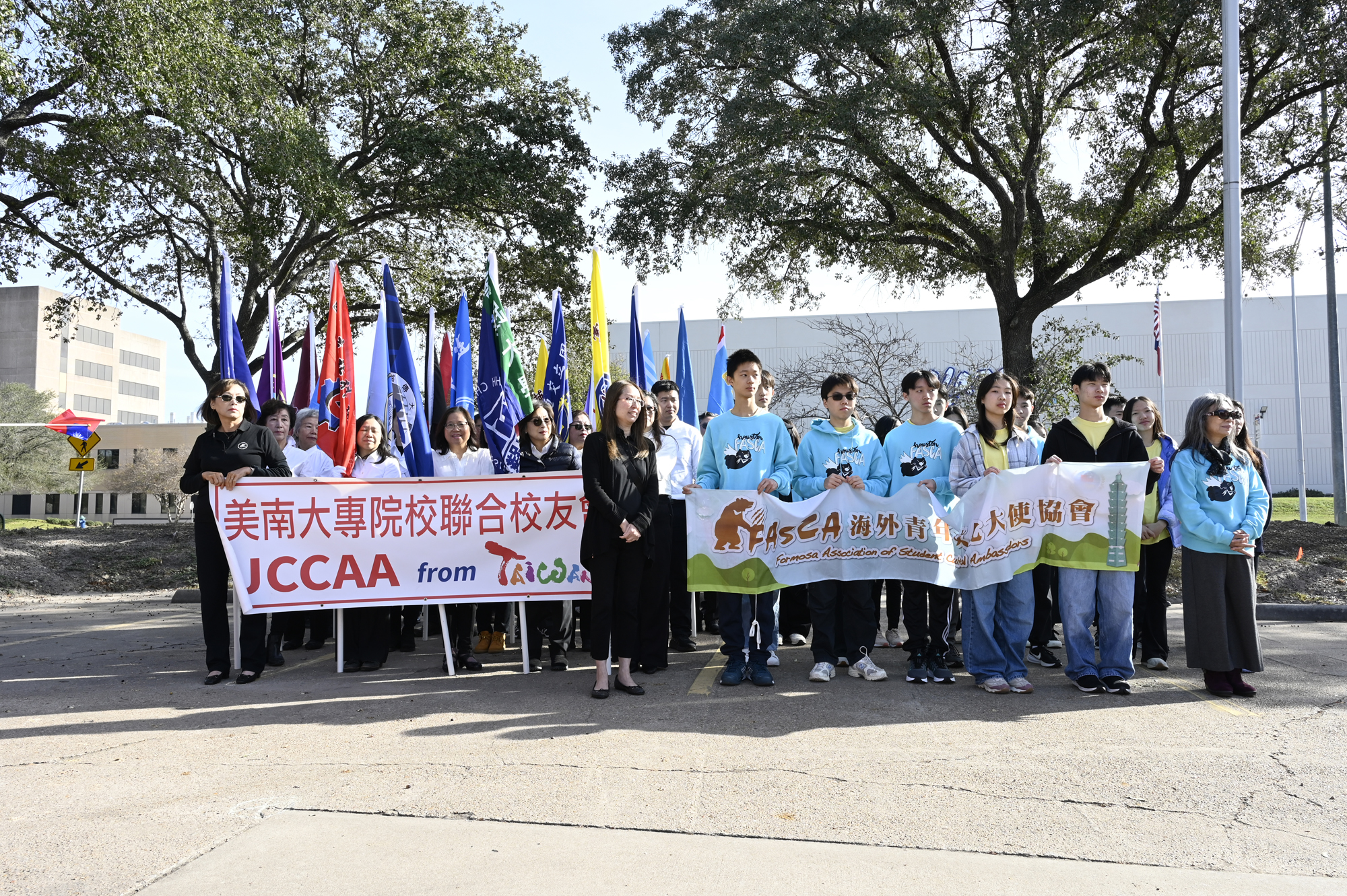 2026年的元旦升旗典禮,是個晴朗的天氣,僑胞社團一早就陸續來到休士頓僑教中心,等候升旗儀式的啟動,社團紛紛拉起了橫幅出場,增加能見度,最後大家目迎中華民國國旗緩緩升起,完成每年第一天最重要的任務,將國旗高高掛上。