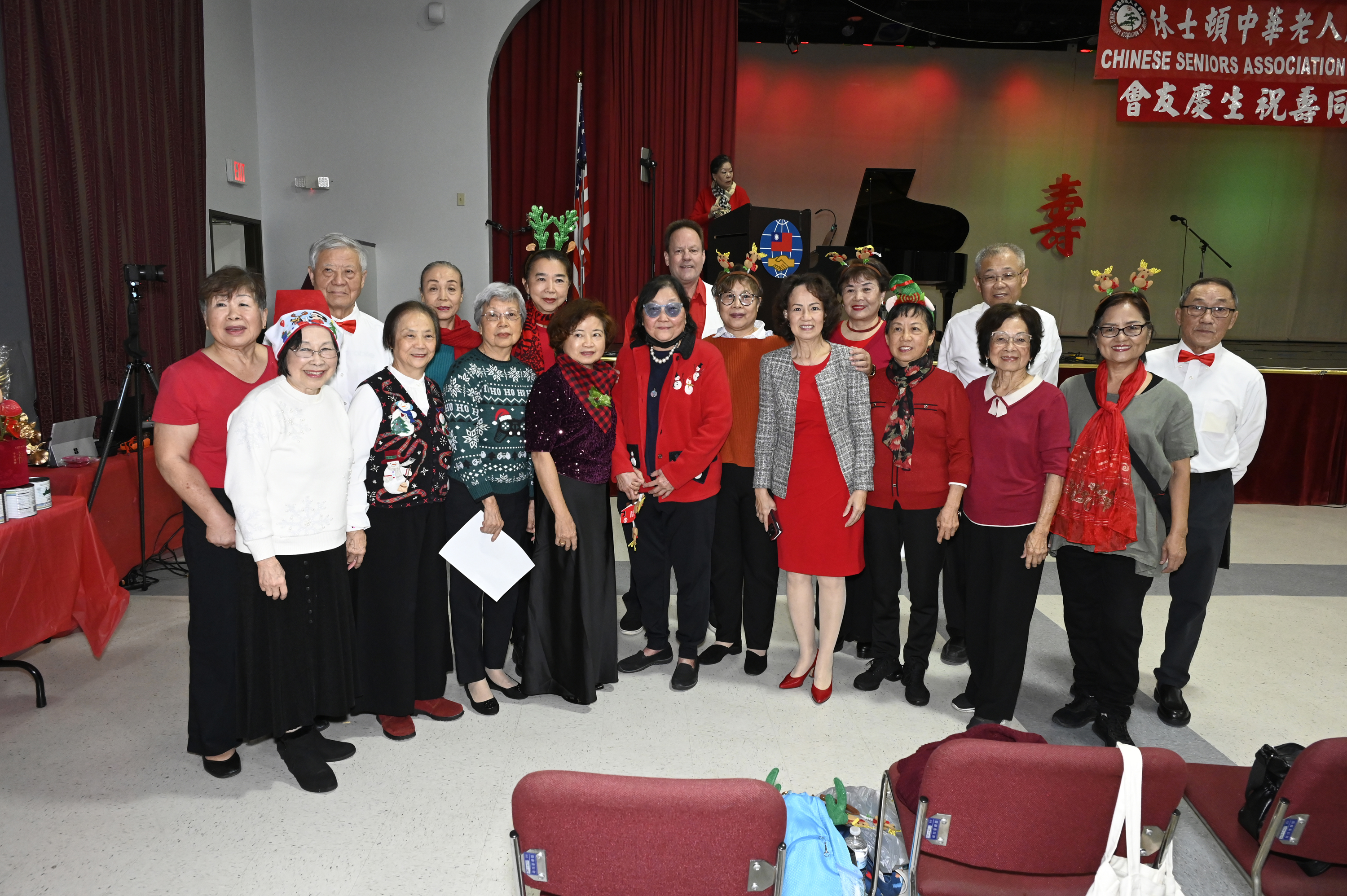 中華老人服務協會第四季慶生會中,會長會員合影(本台檔案照片)。