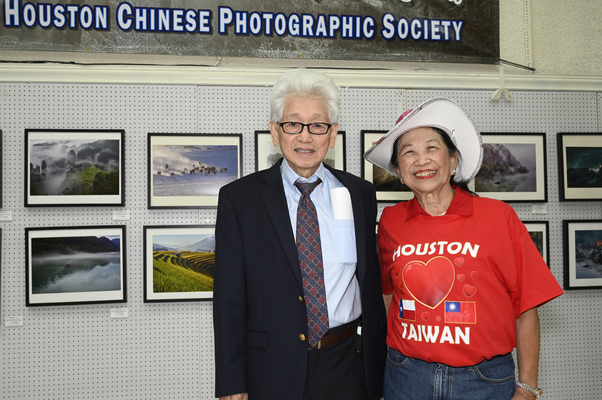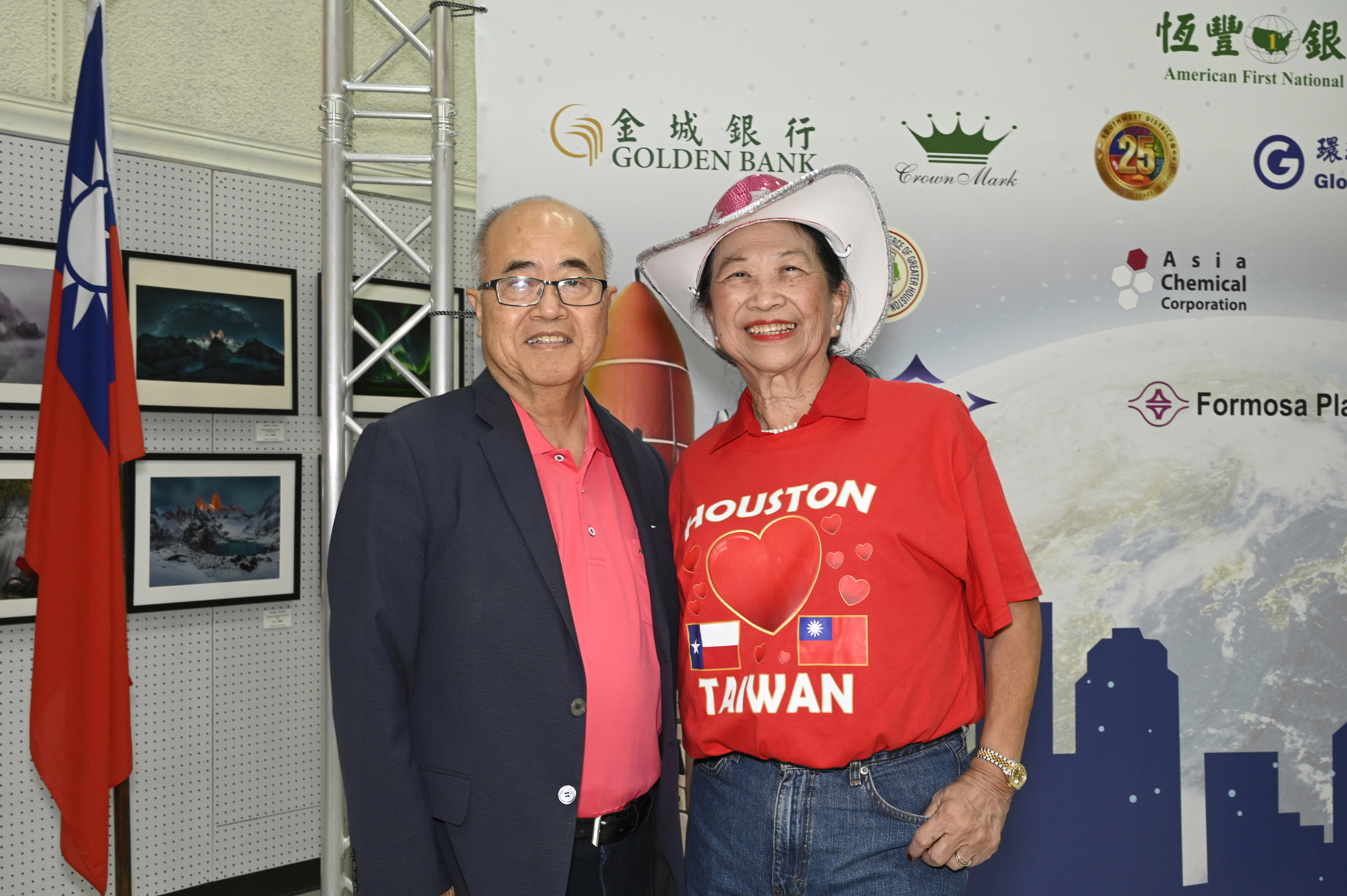 僑聯總會休士頓辦事處主任李迎霞(右)與李雄主任委員(左)於授旗當天合影。