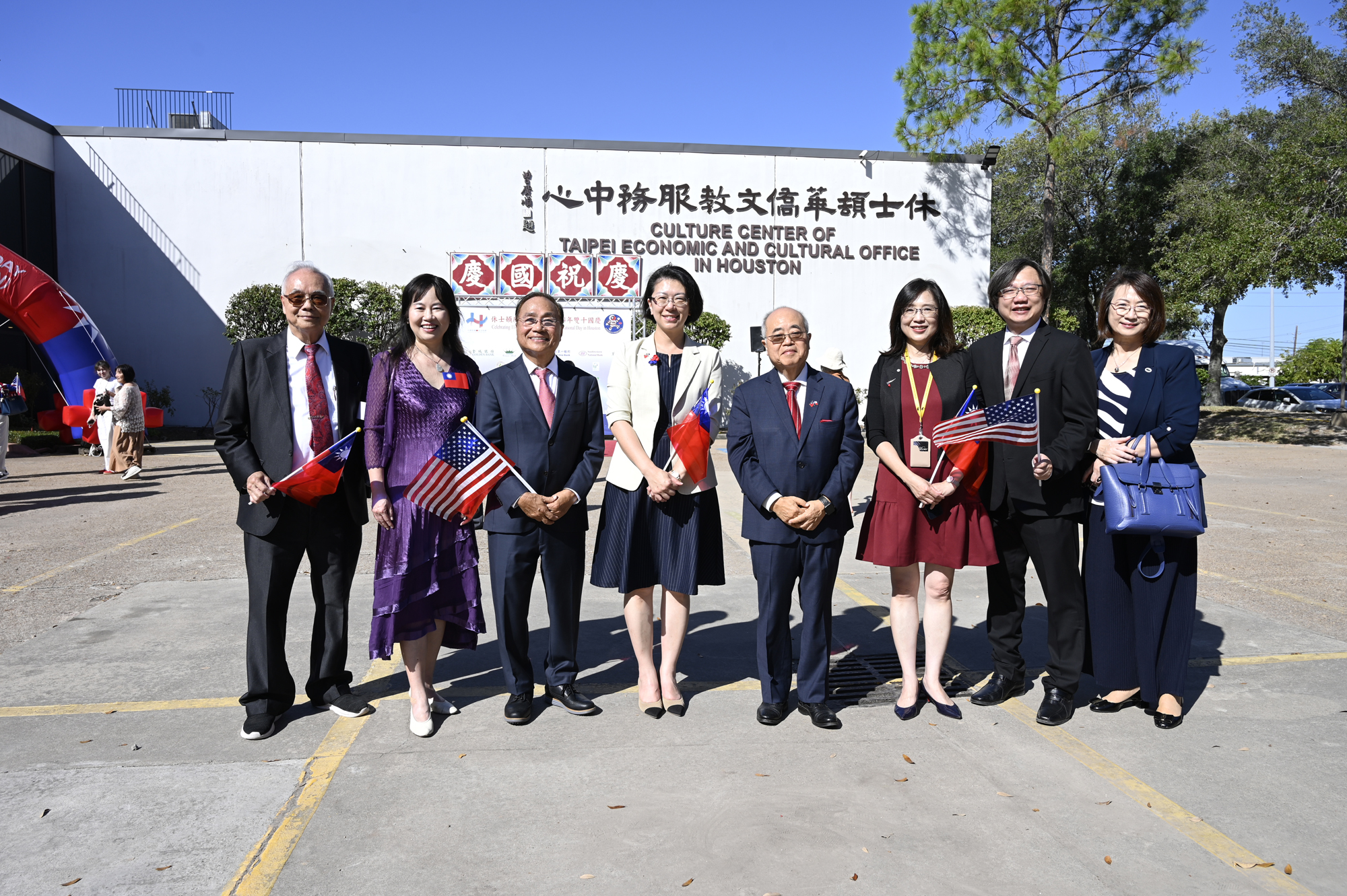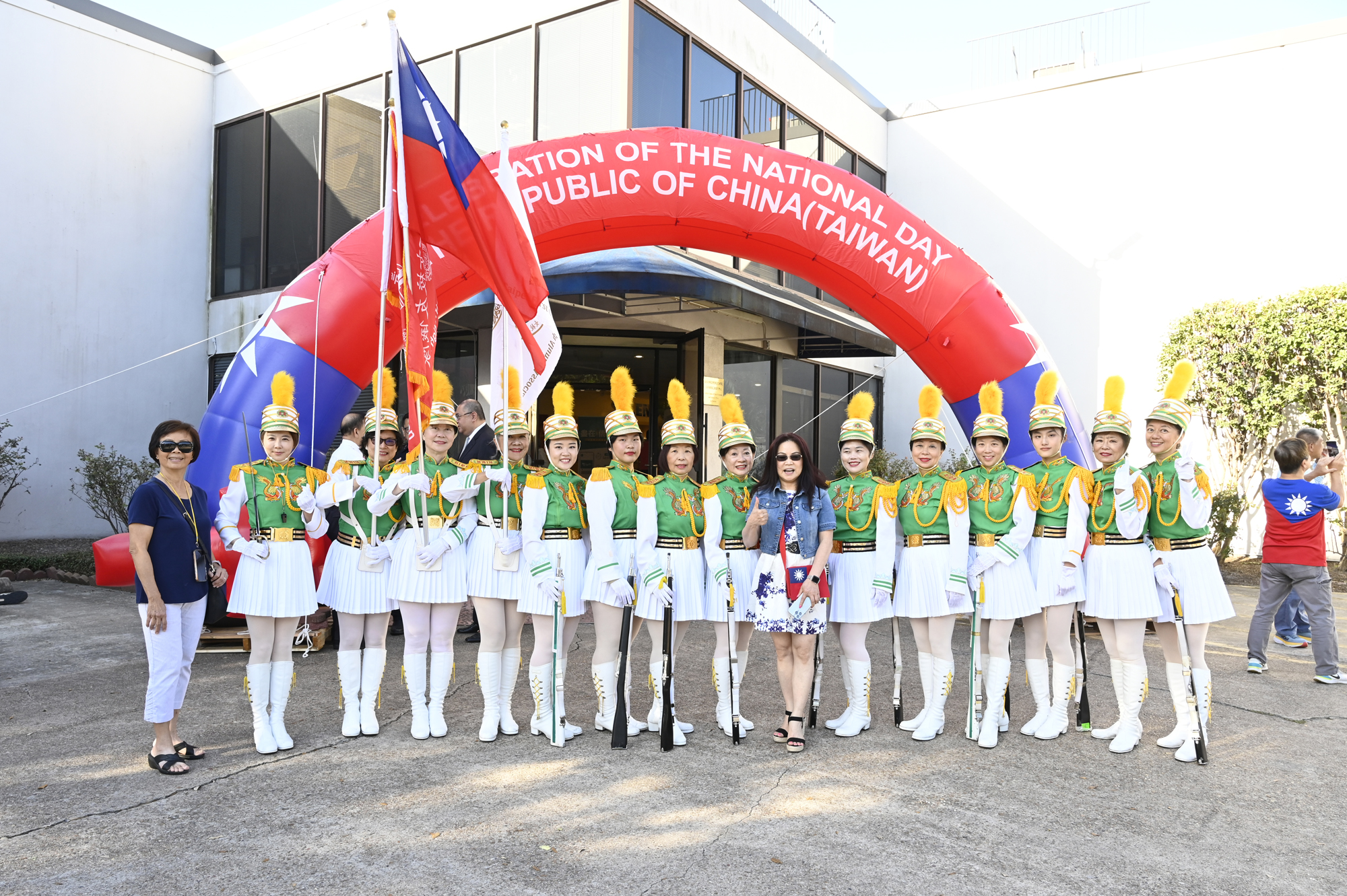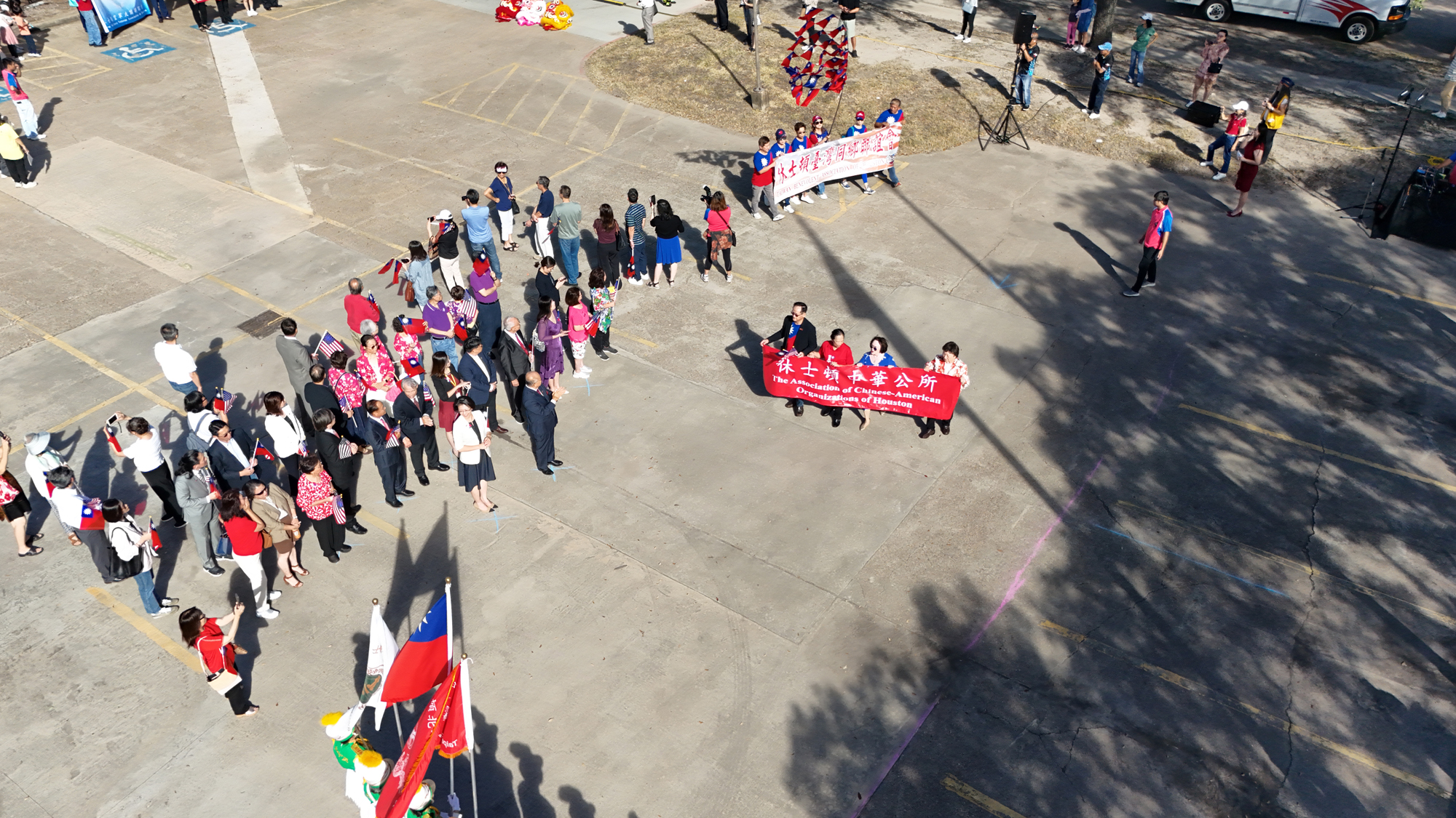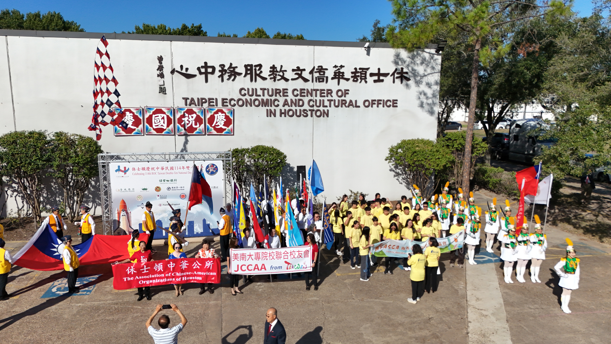 2025年休士頓僑教中心前廣場的國慶國升旗典禮一景。