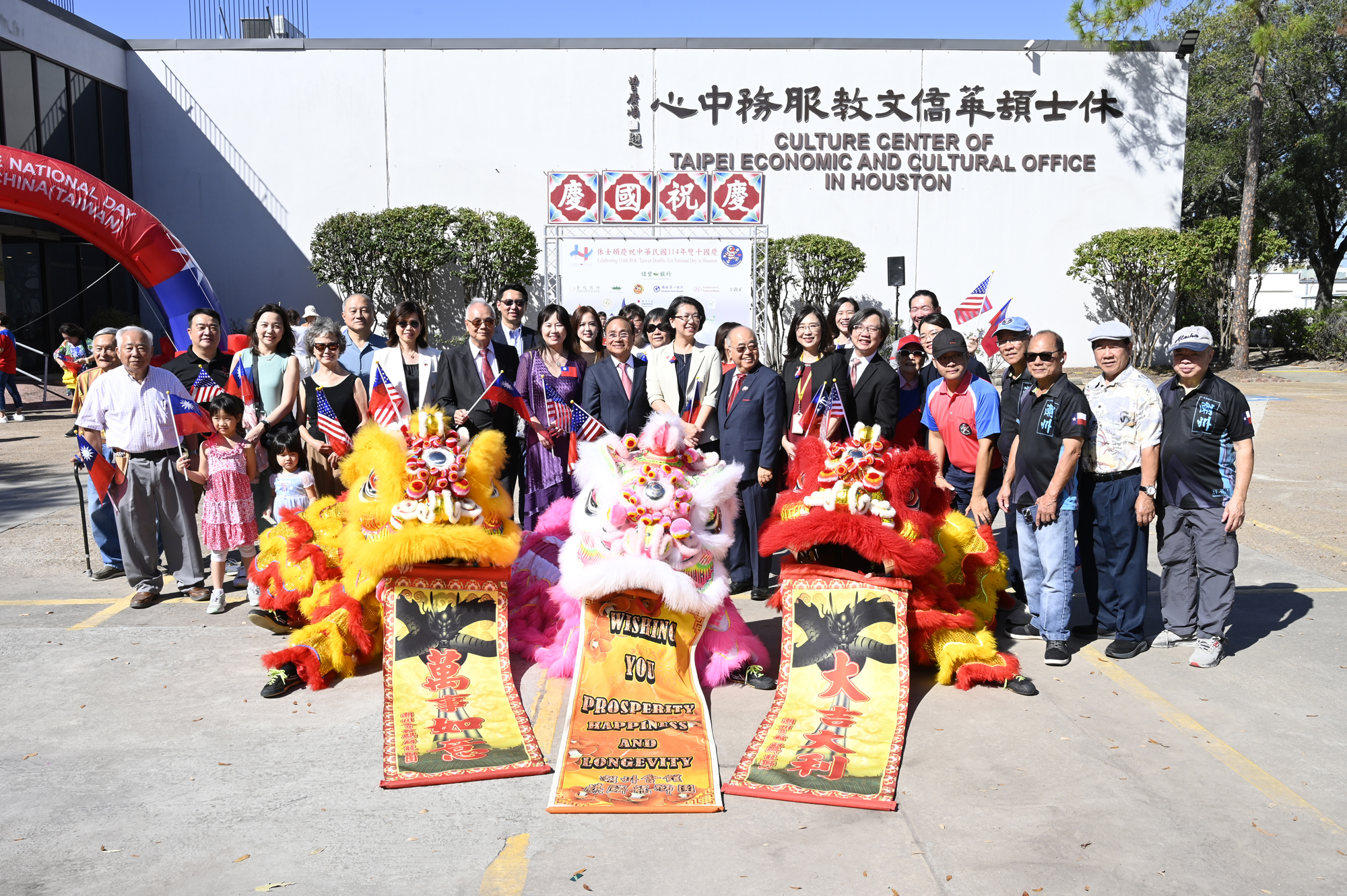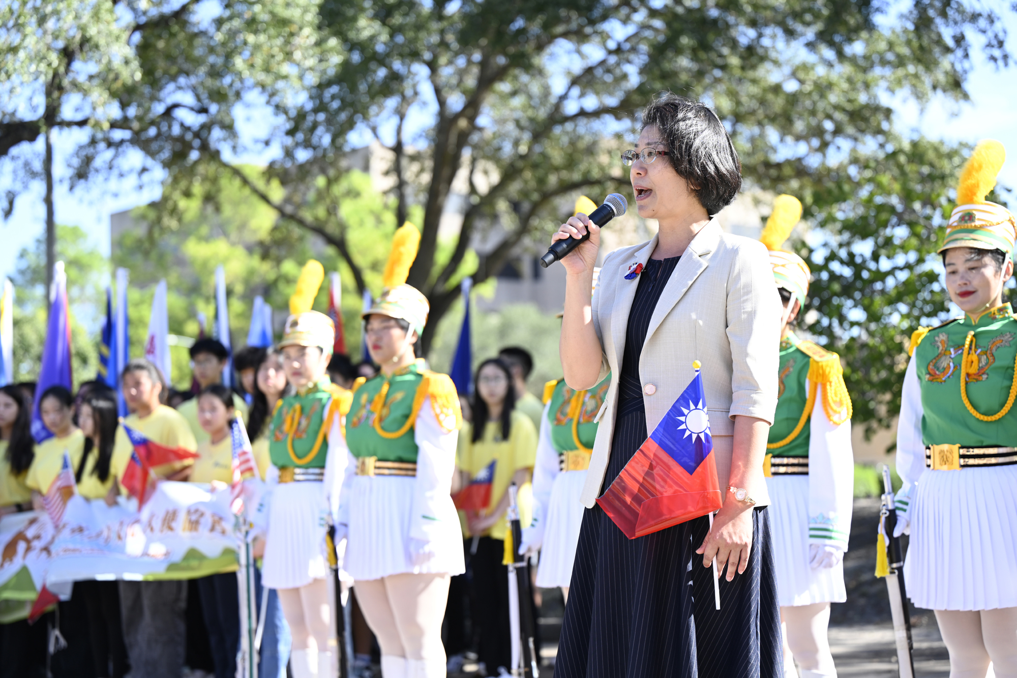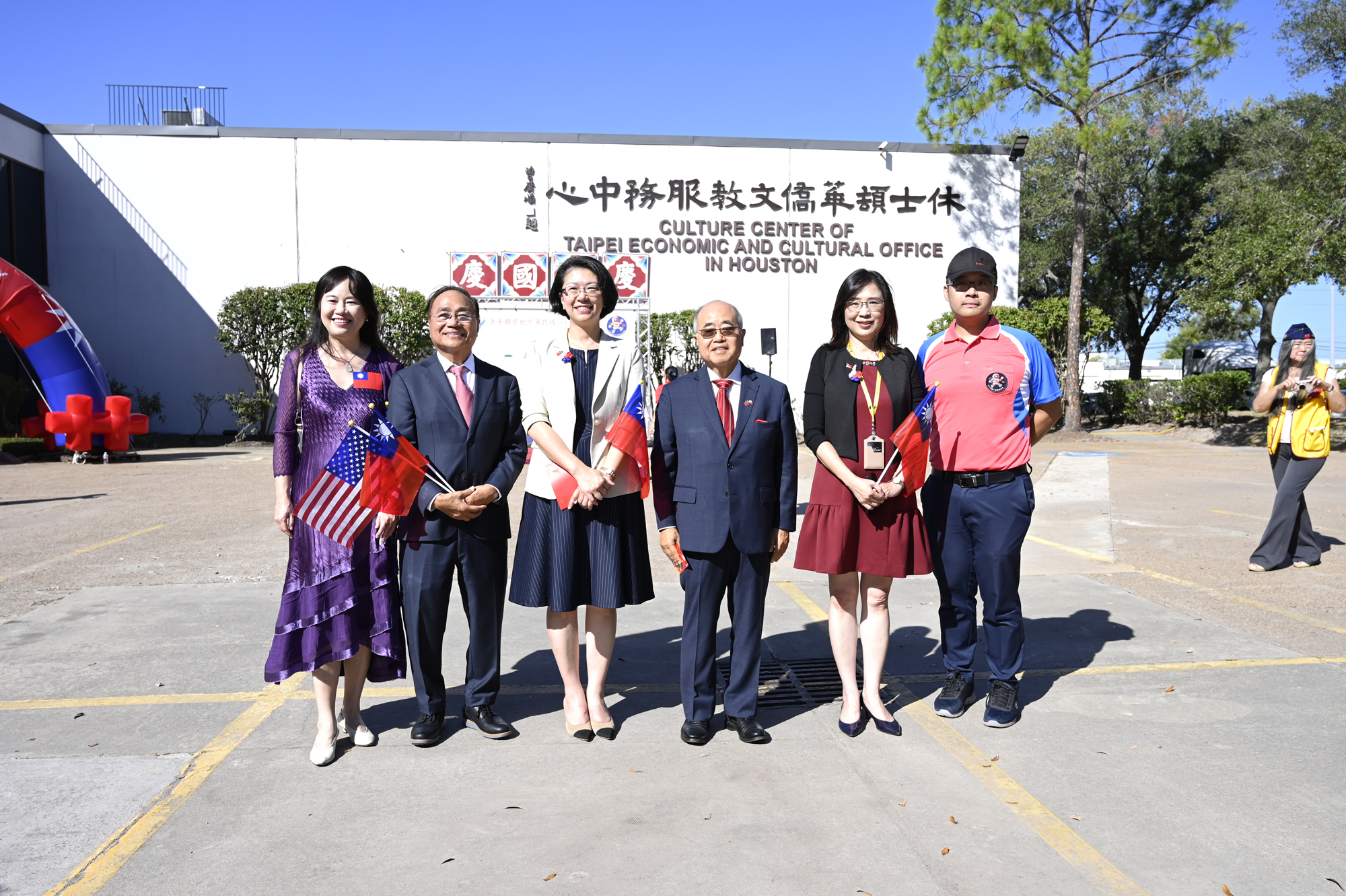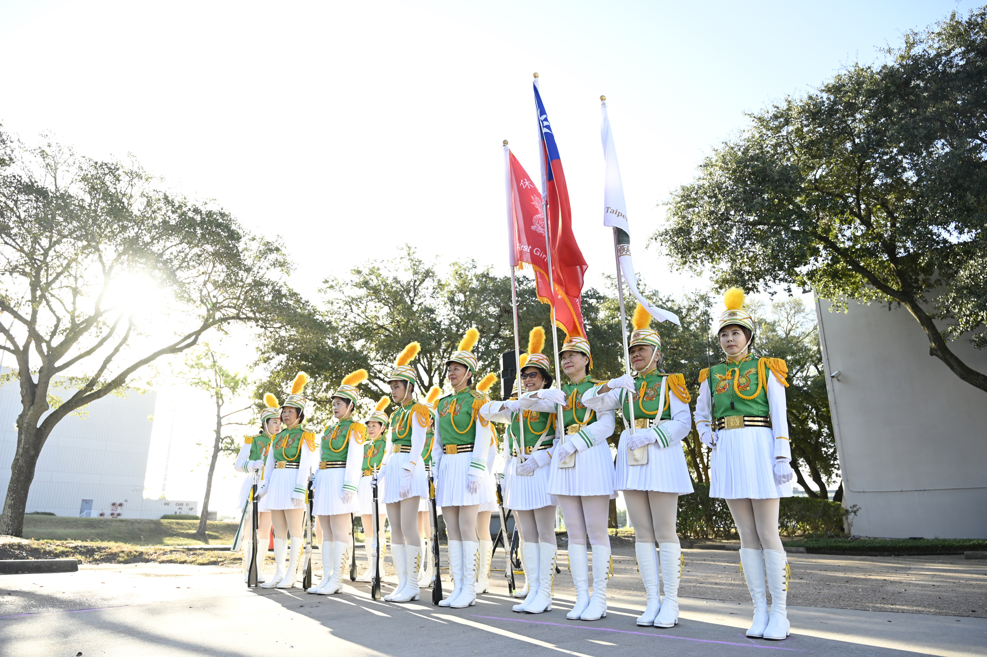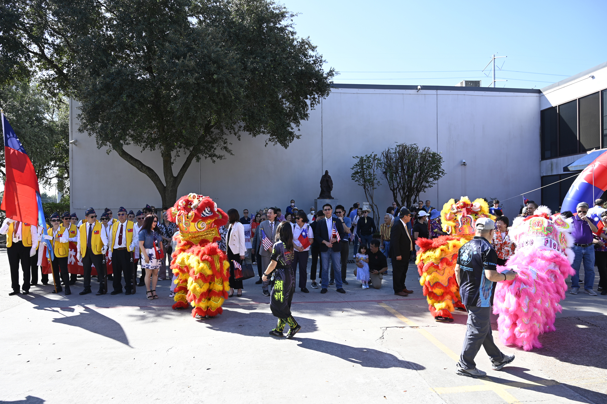 2025年休士頓僑教中心前廣場的國慶國升旗典禮一景。