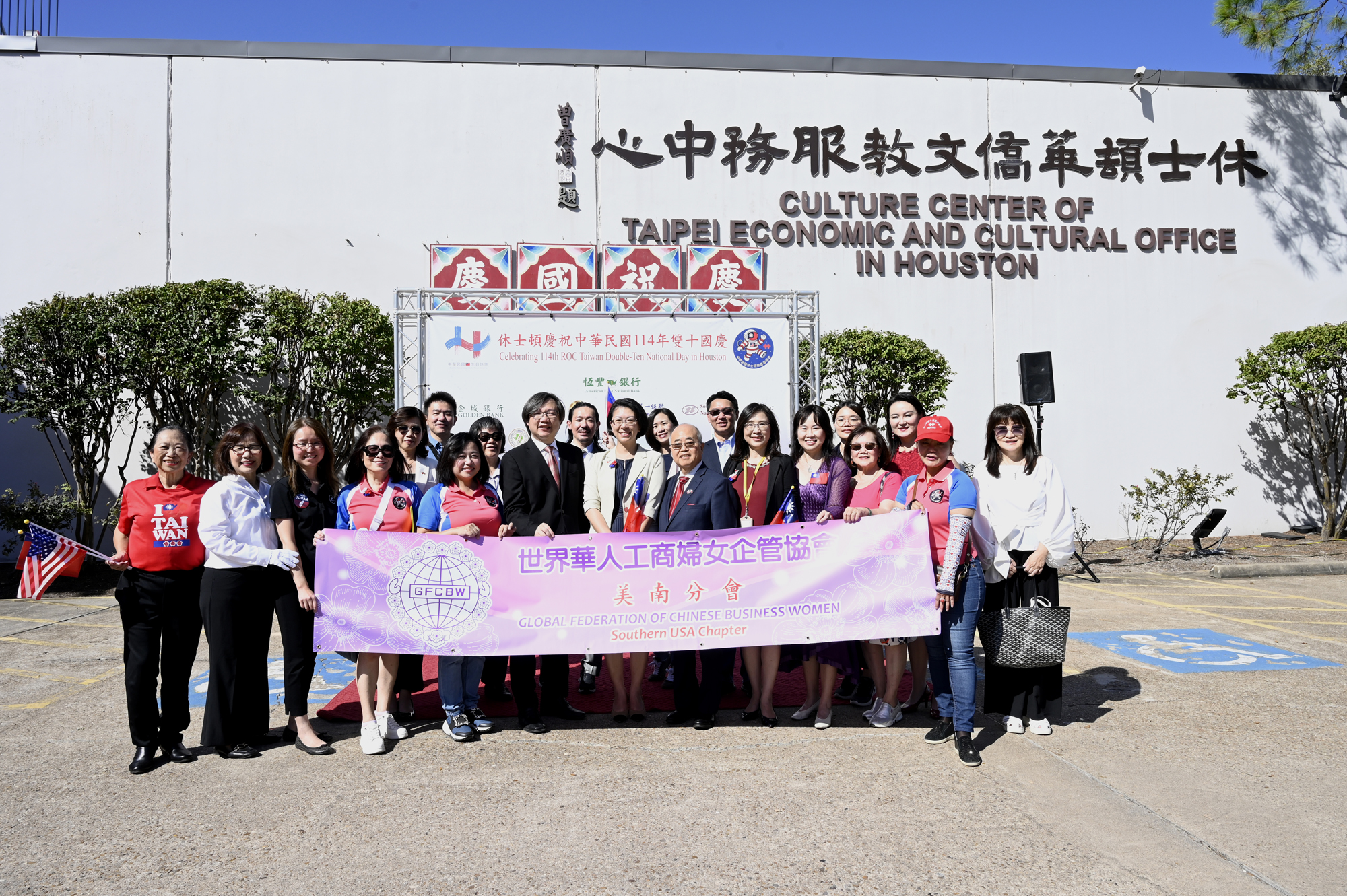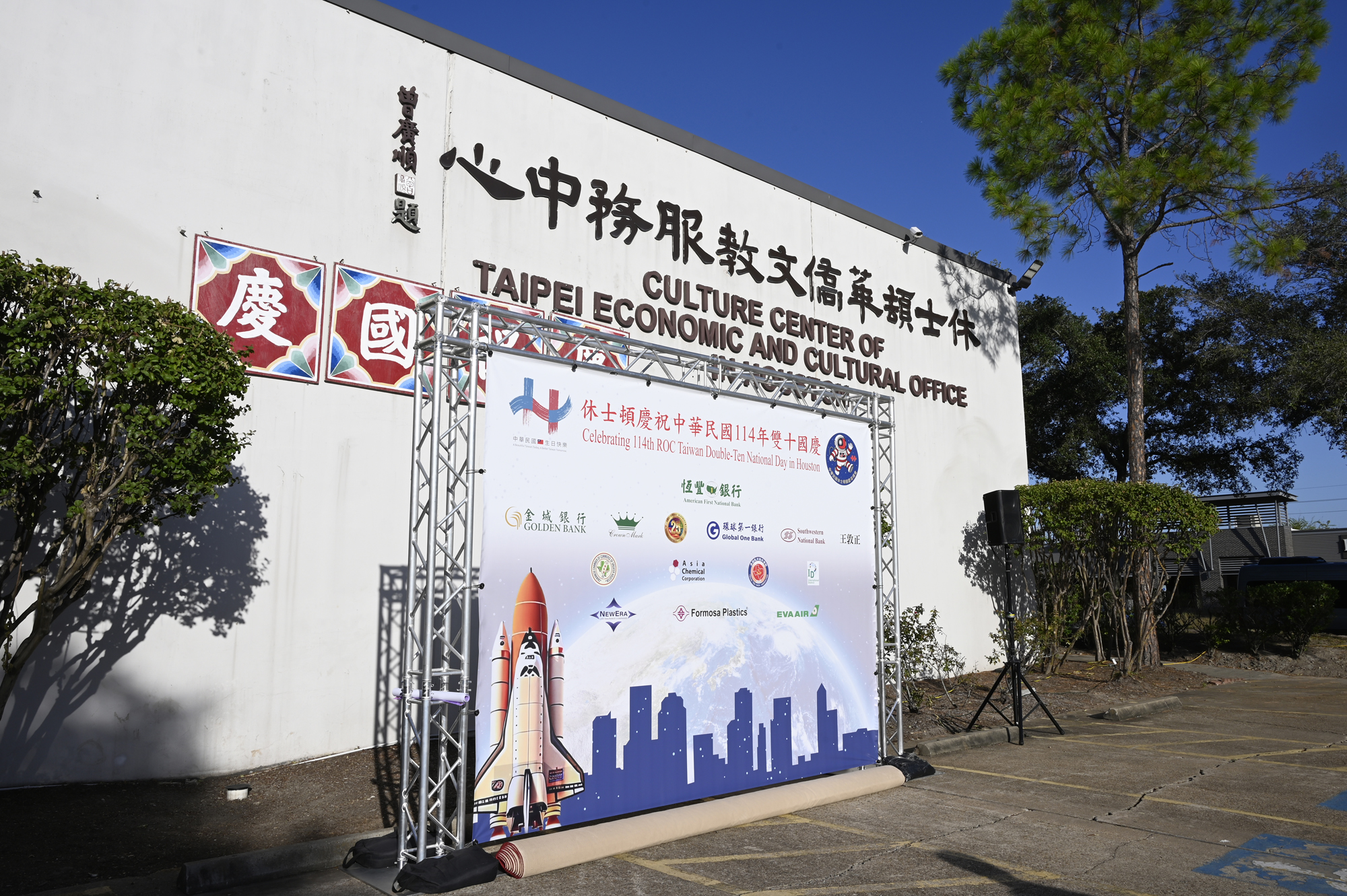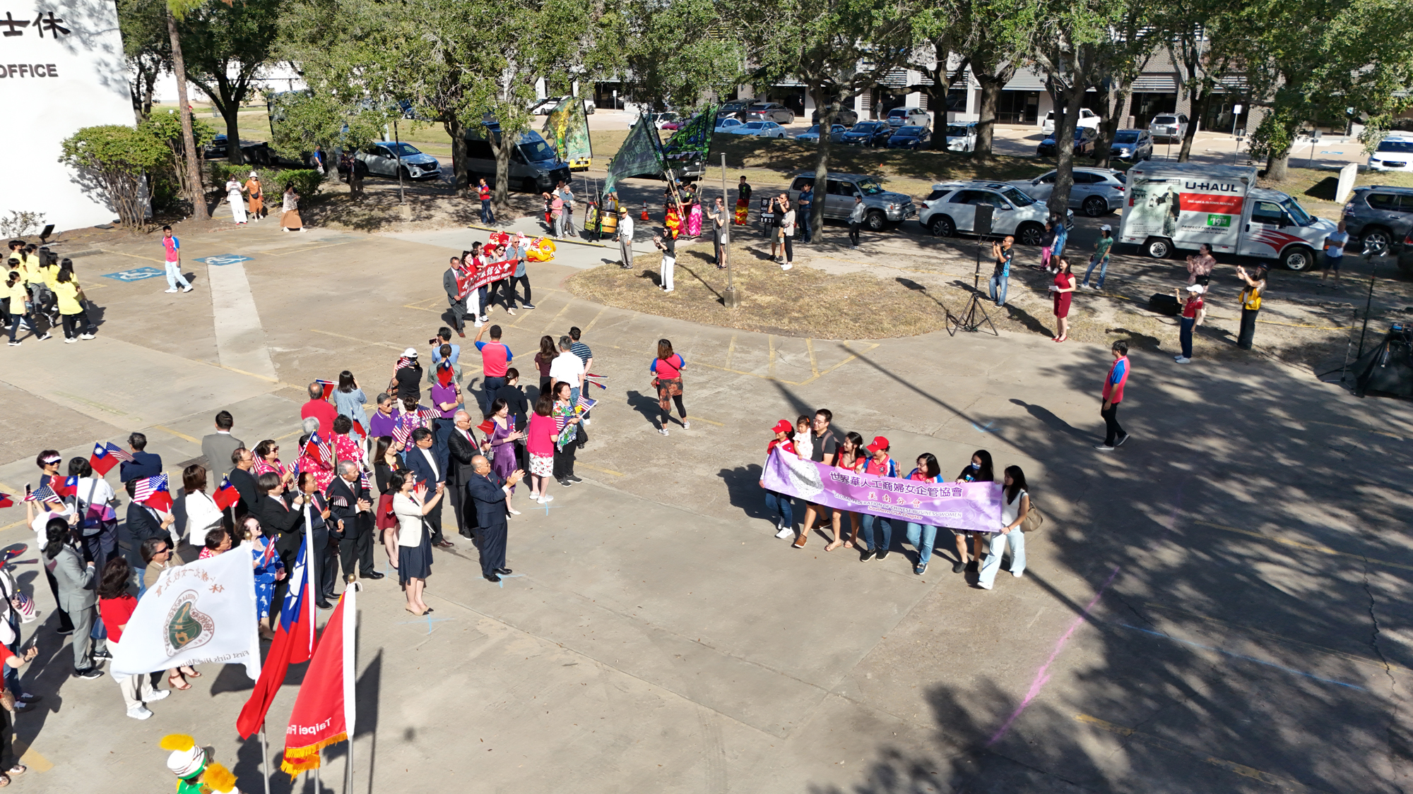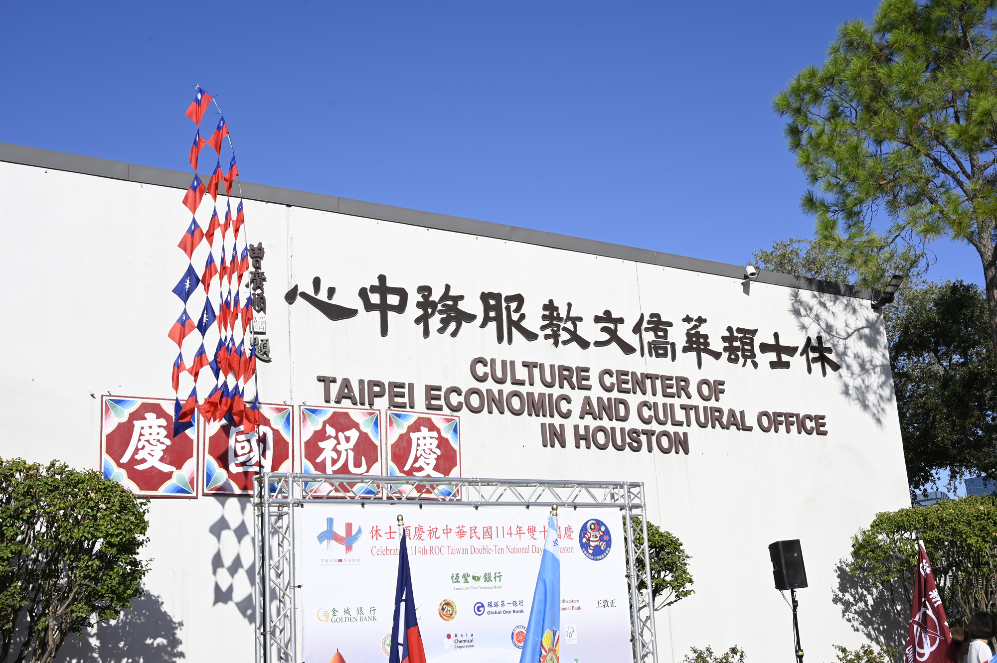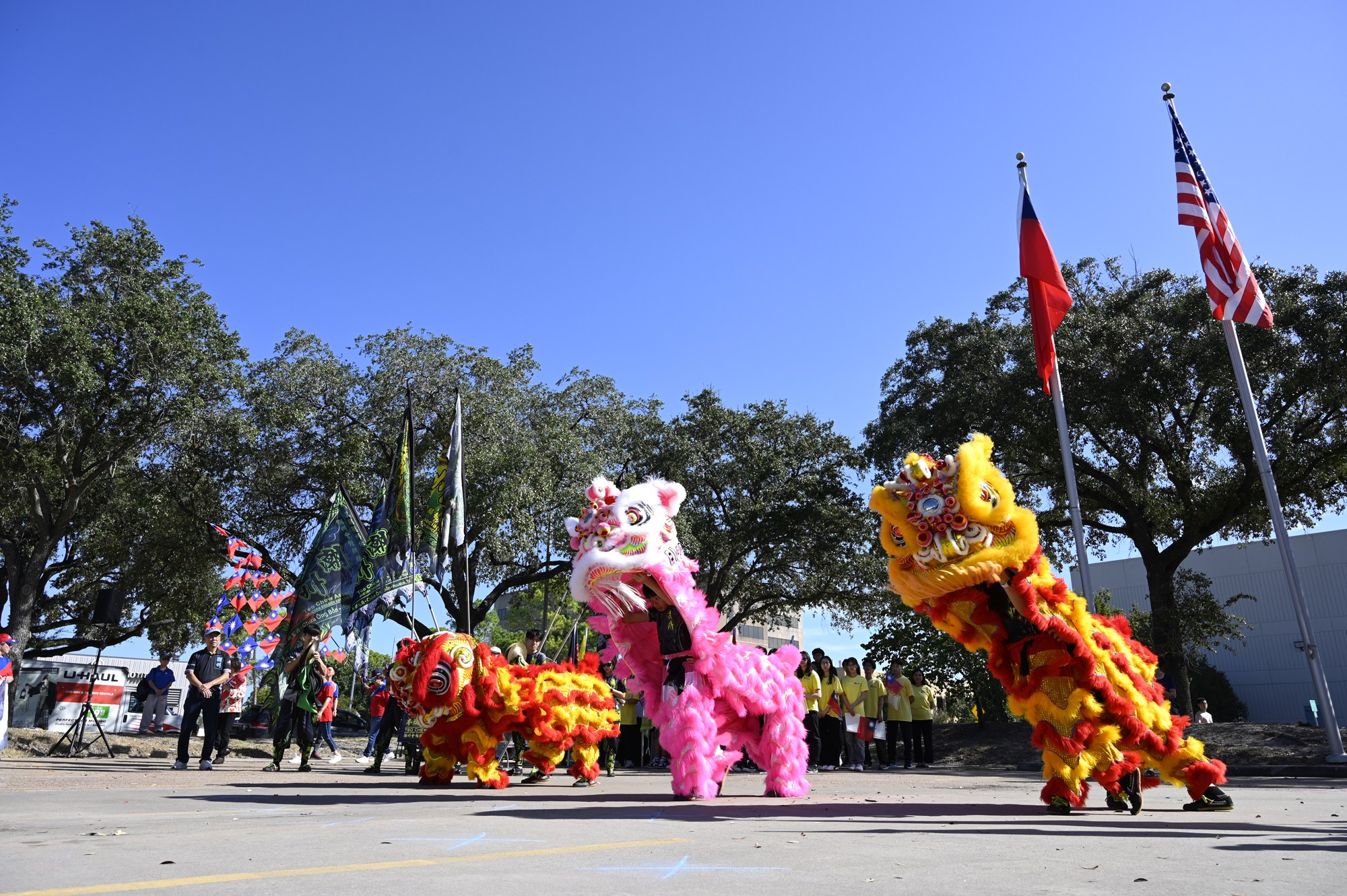 2025年休士頓僑教中心前廣場的國慶國升旗典禮一景。