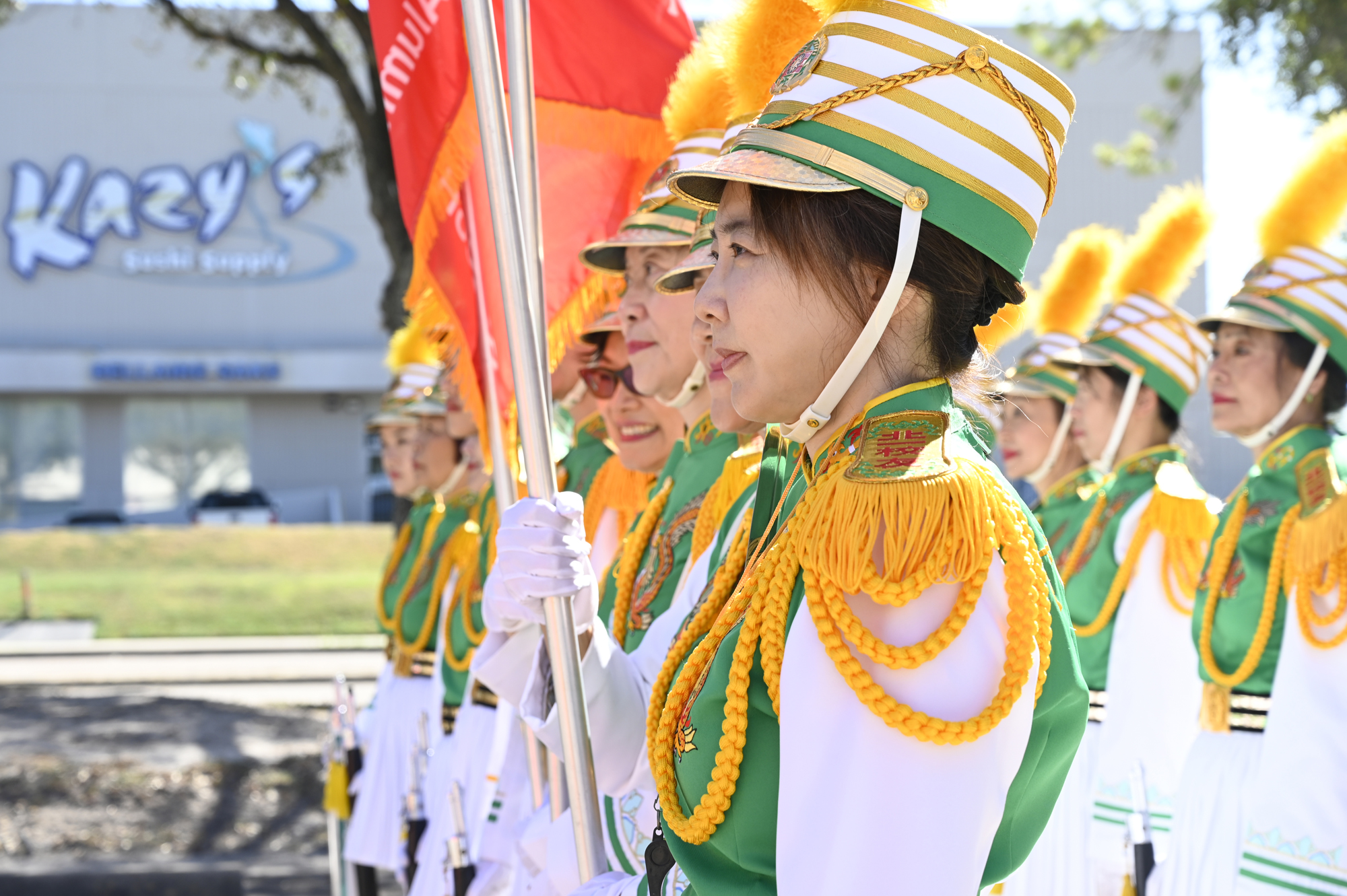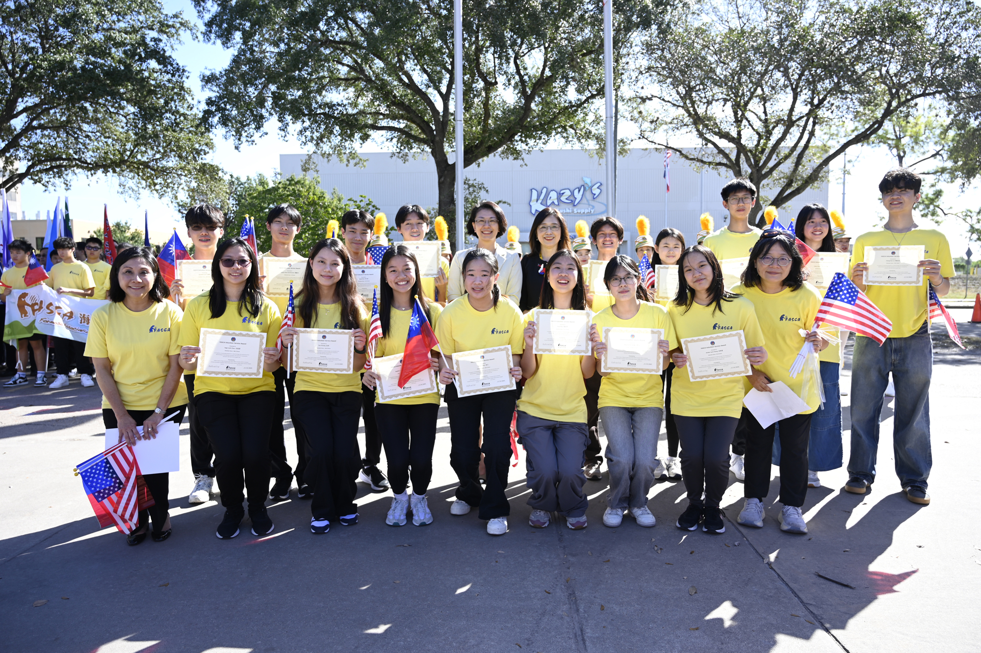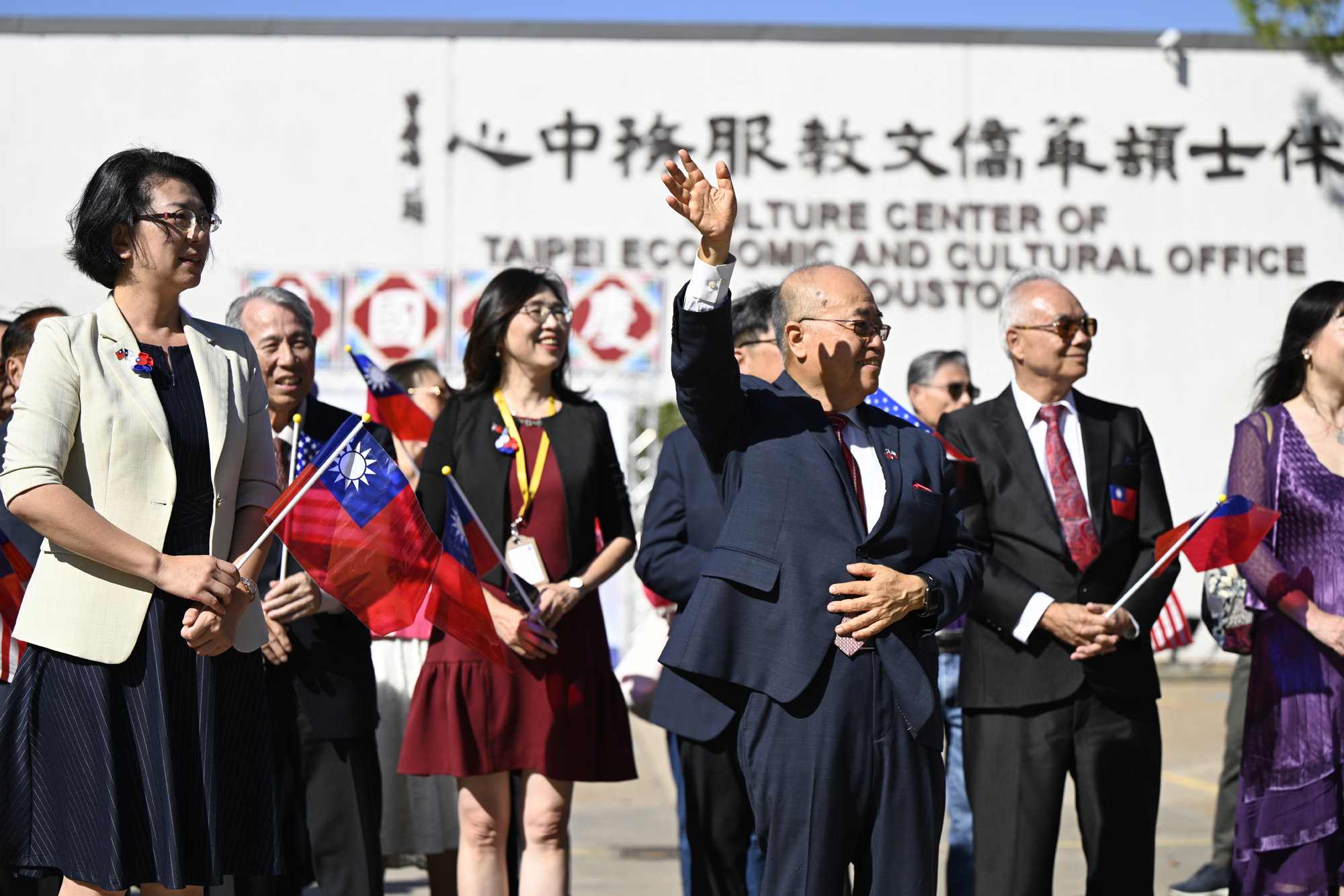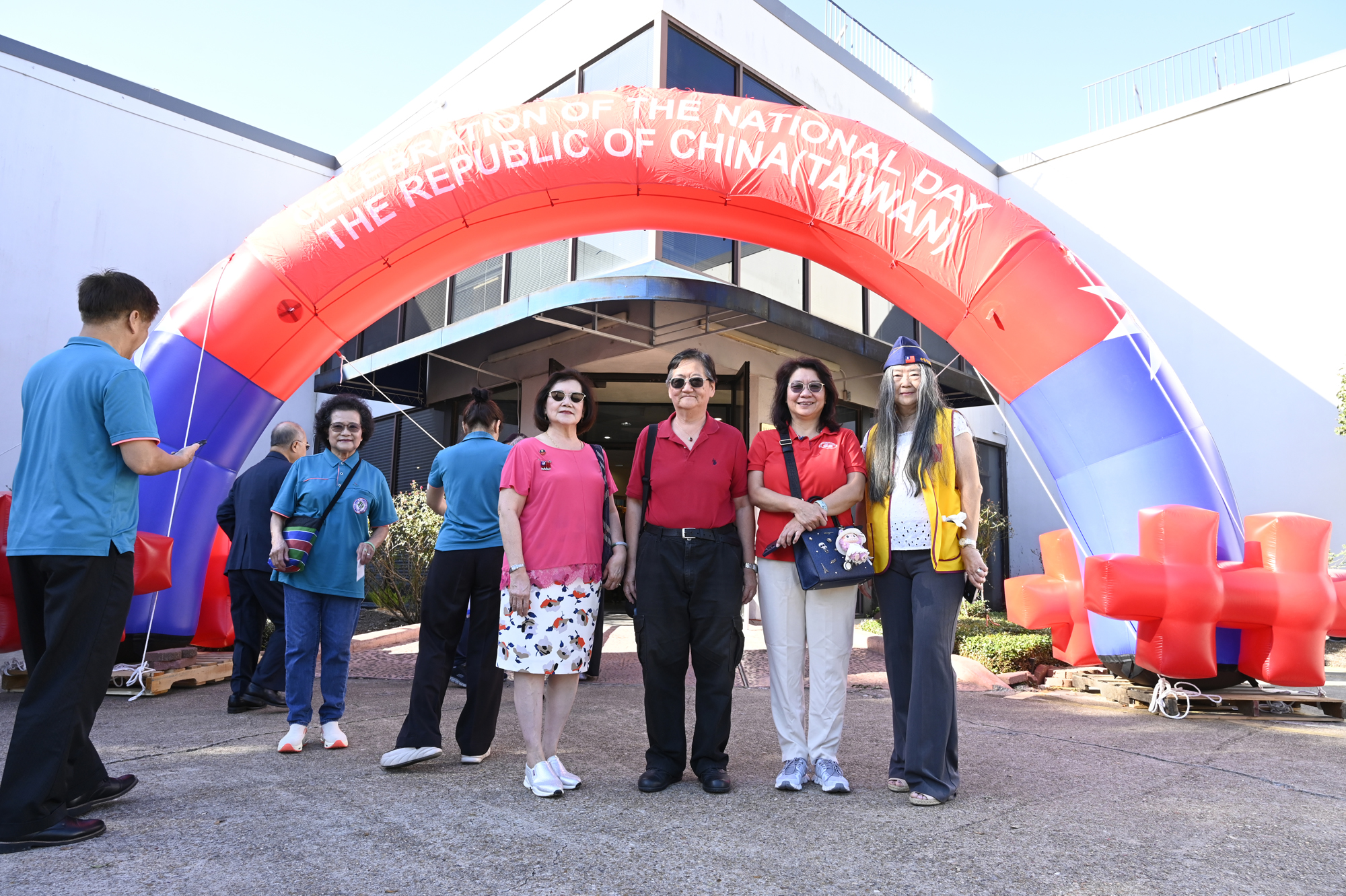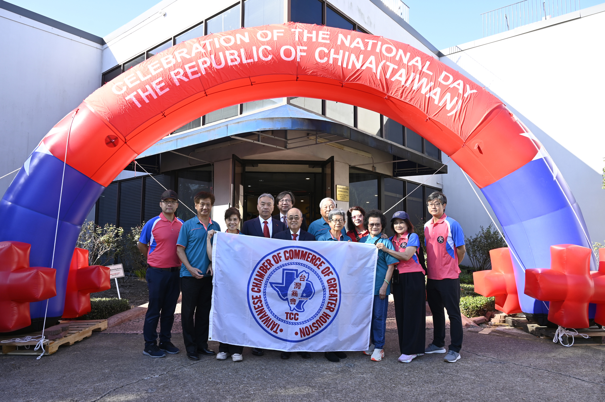 2025年休士頓僑教中心前廣場的國慶國升旗典禮一景。