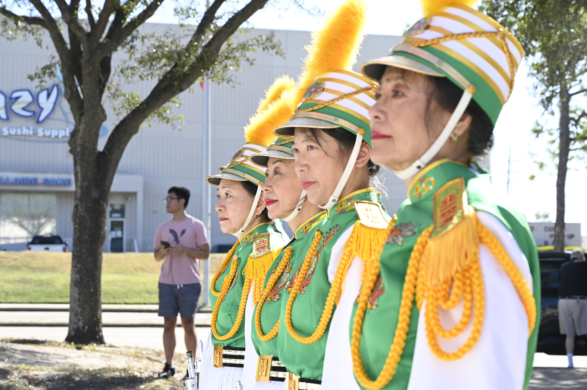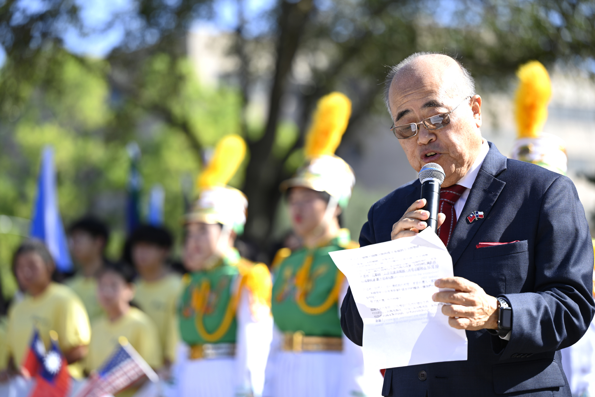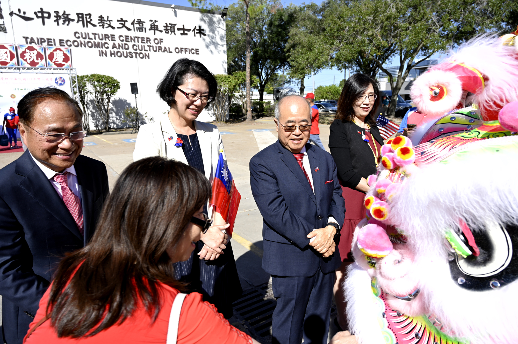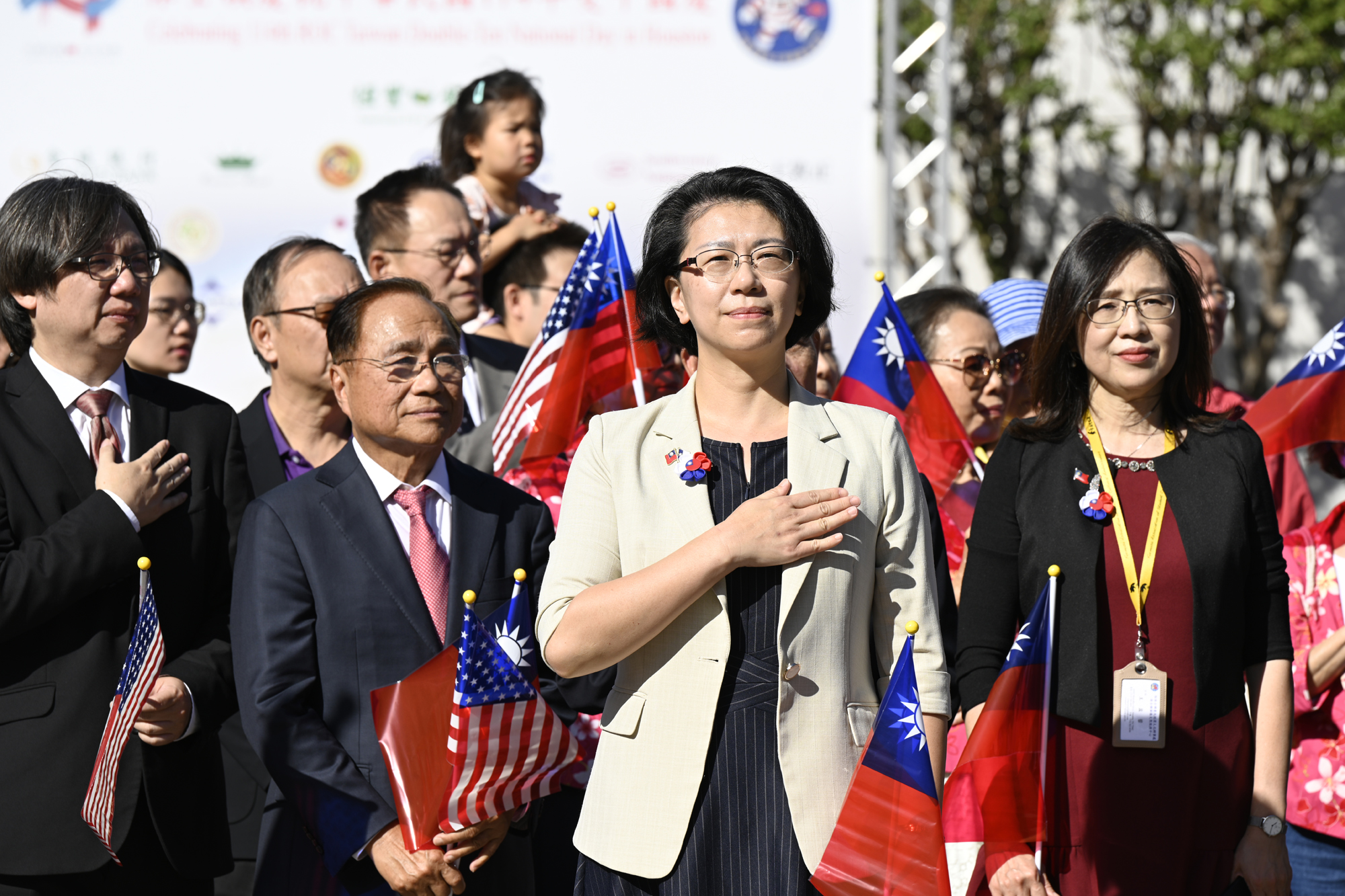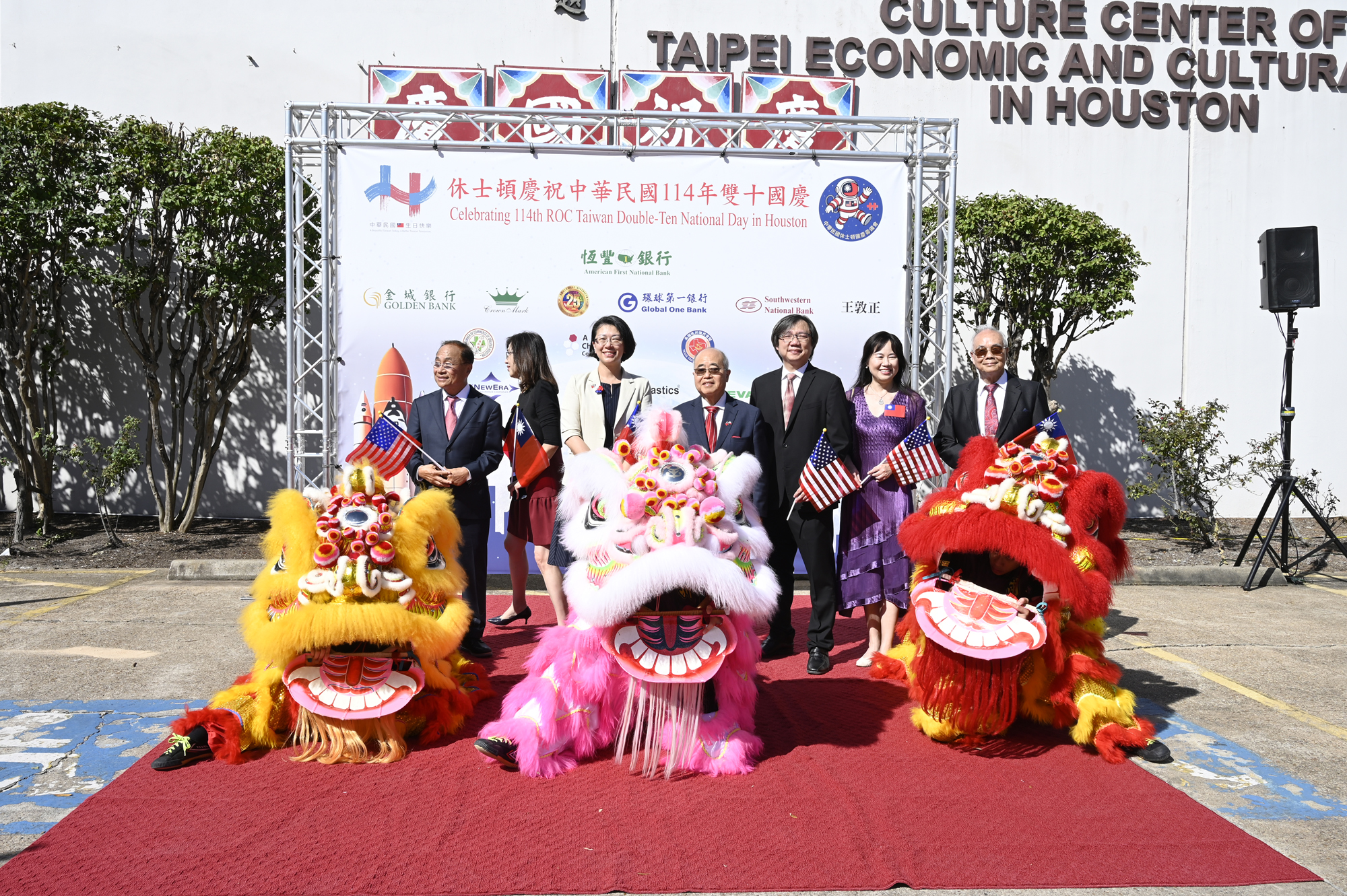2025年休士頓僑教中心前廣場的國慶國升旗典禮一景。