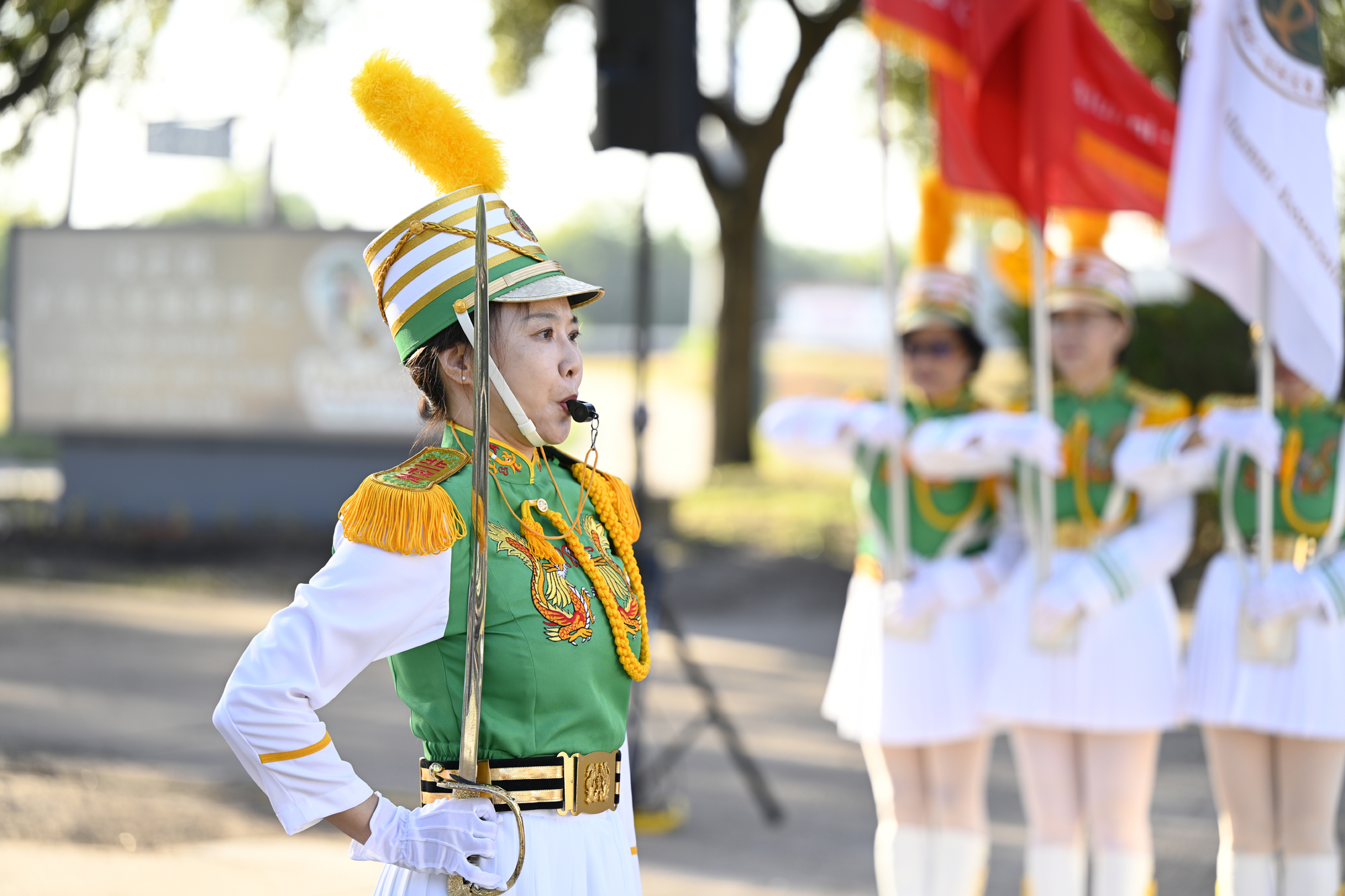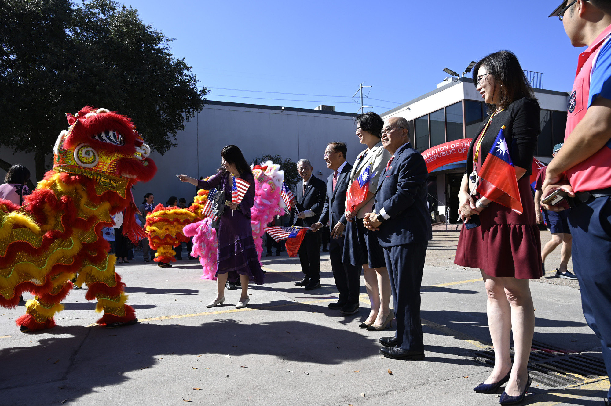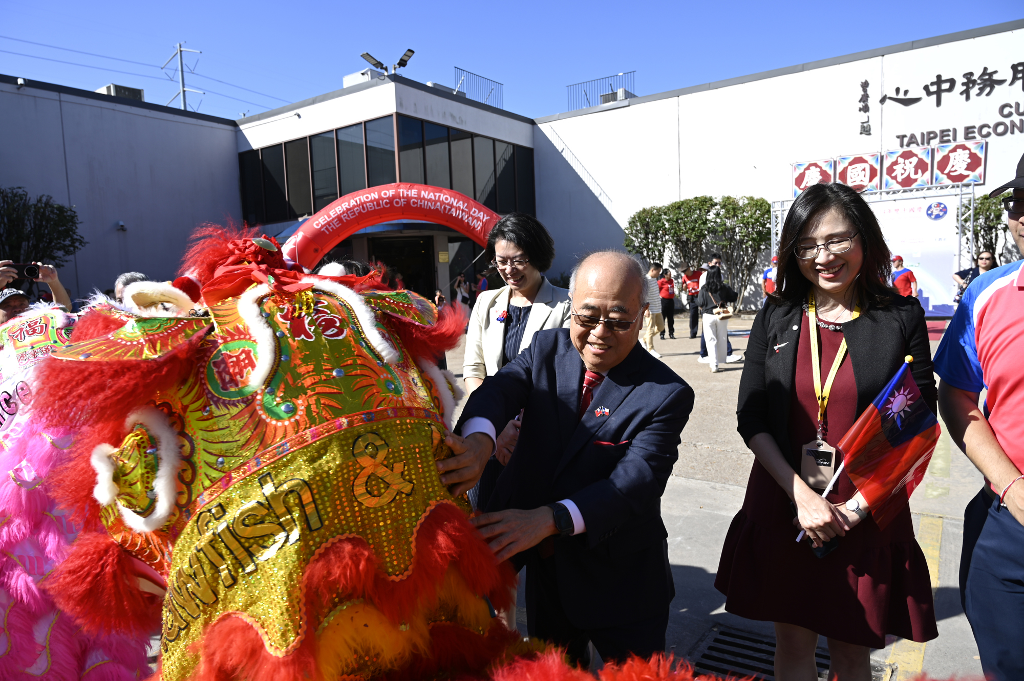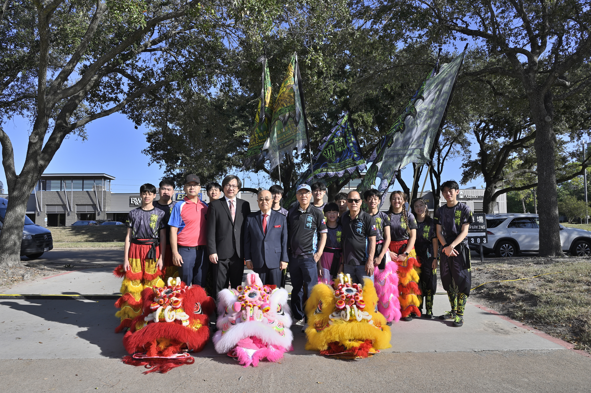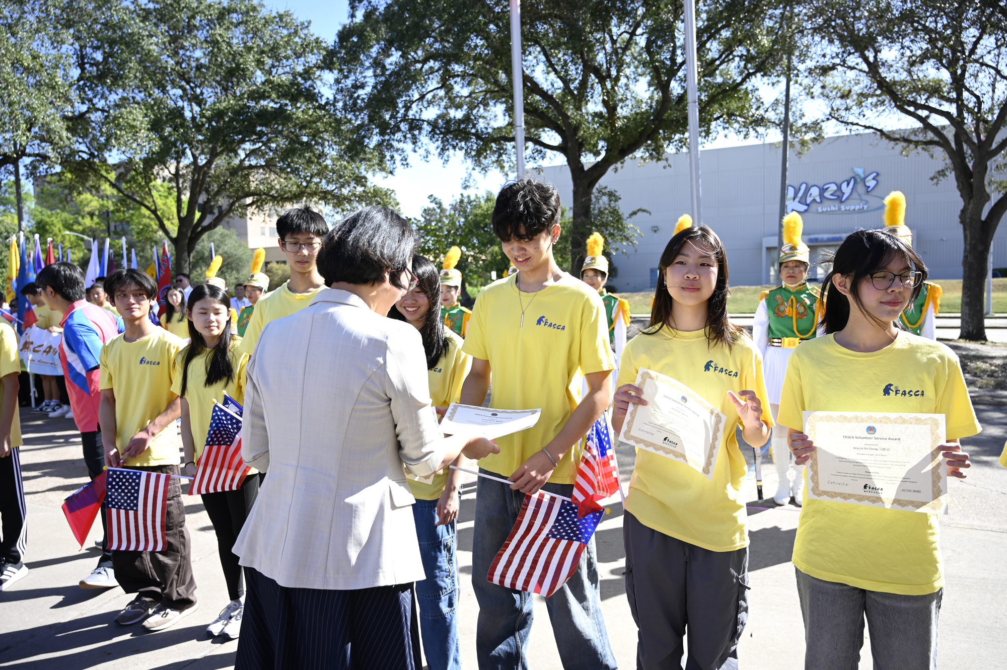 2025年休士頓僑教中心前廣場的國慶國升旗典禮一景。