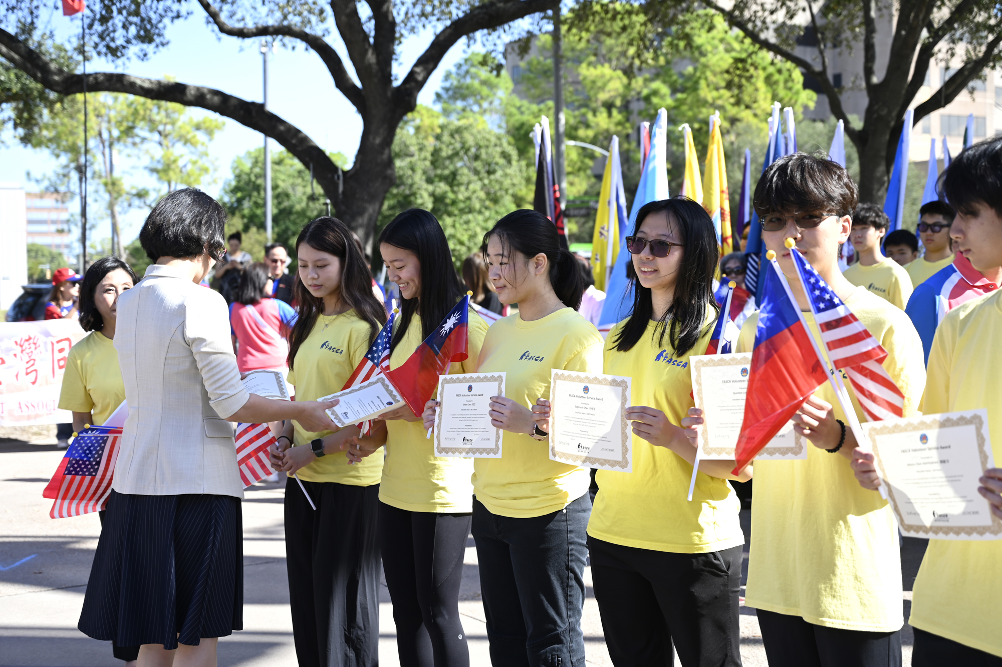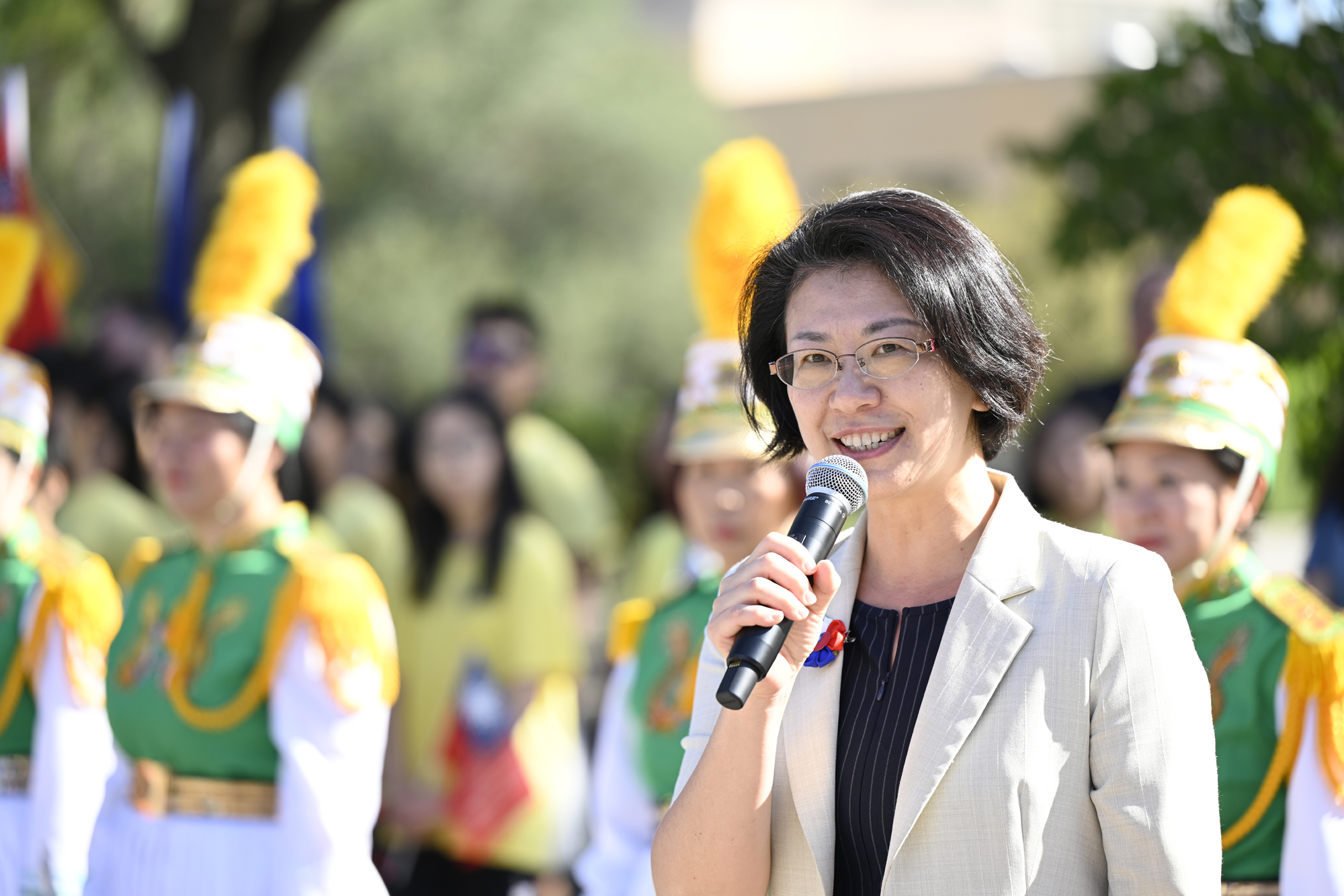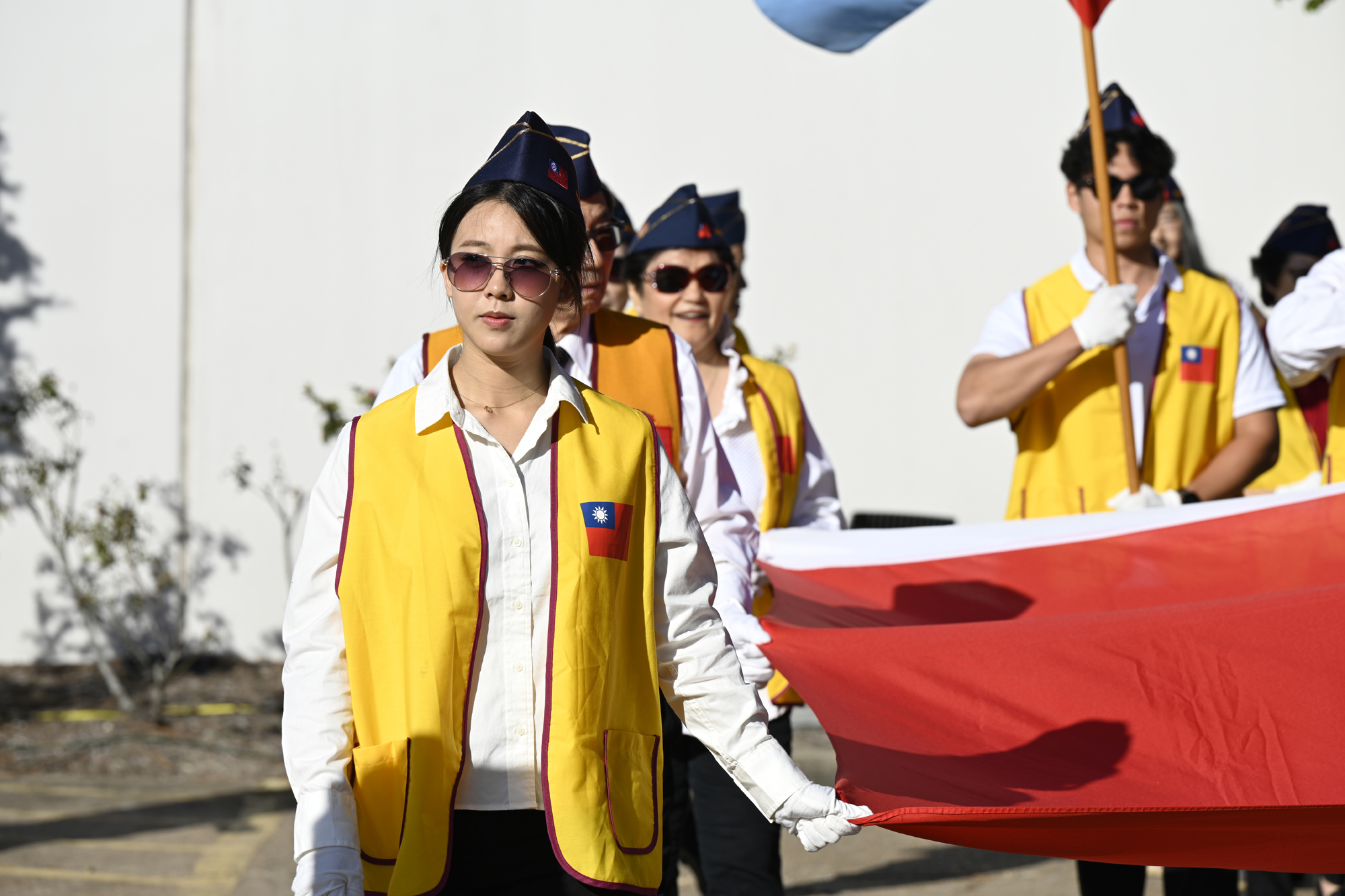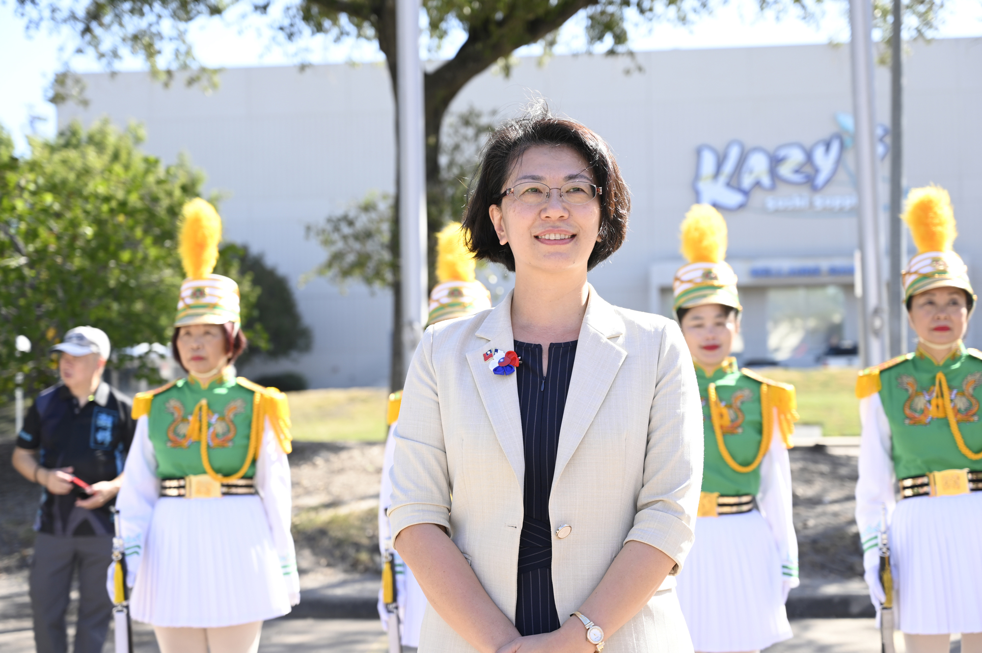 2025年休士頓僑教中心前廣場的國慶國升旗典禮一景。
