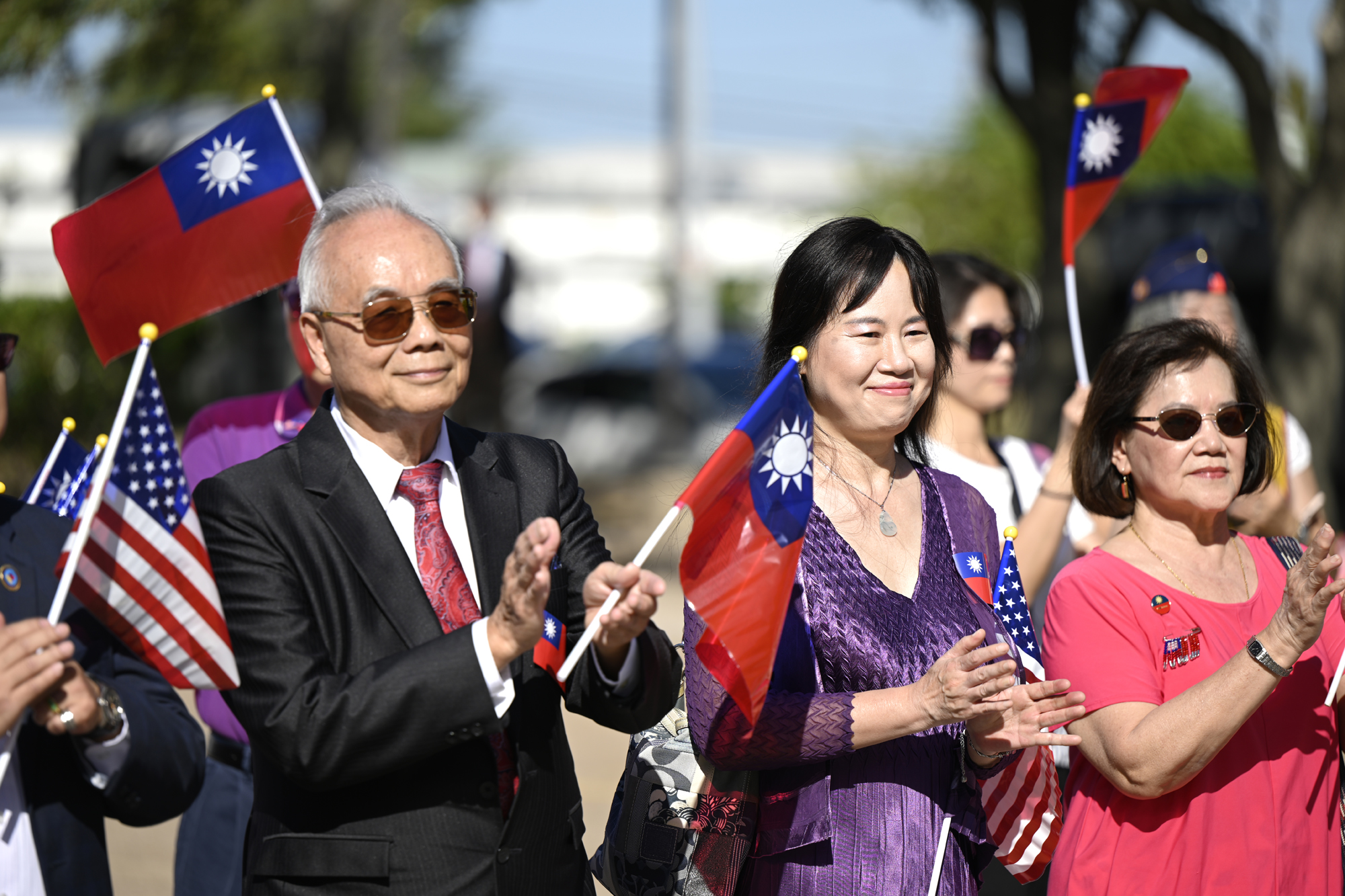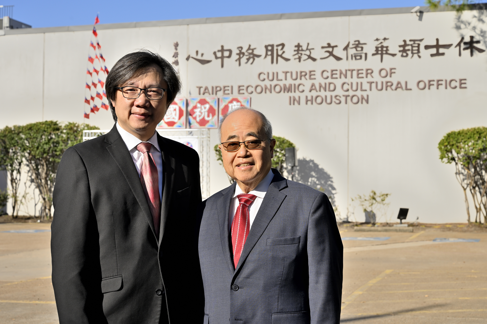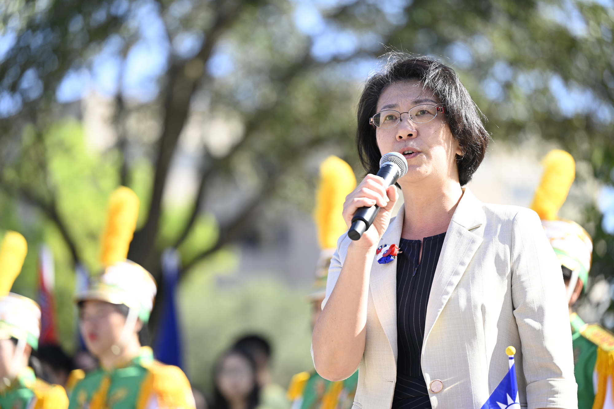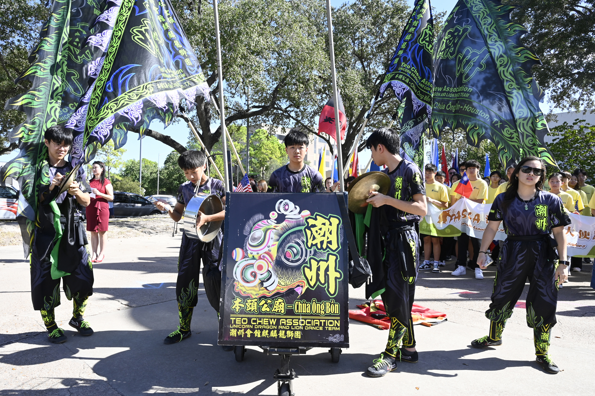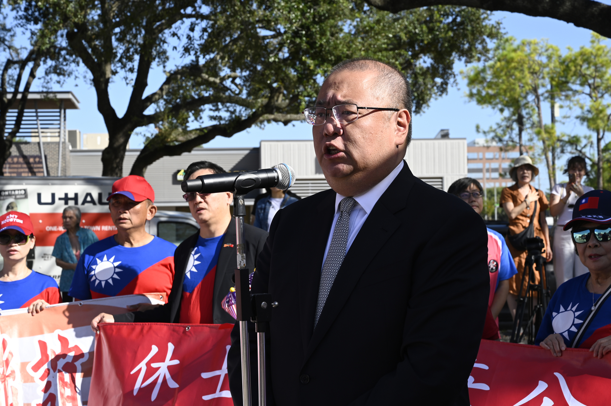2025年休士頓僑教中心前廣場的國慶國升旗典禮一景。