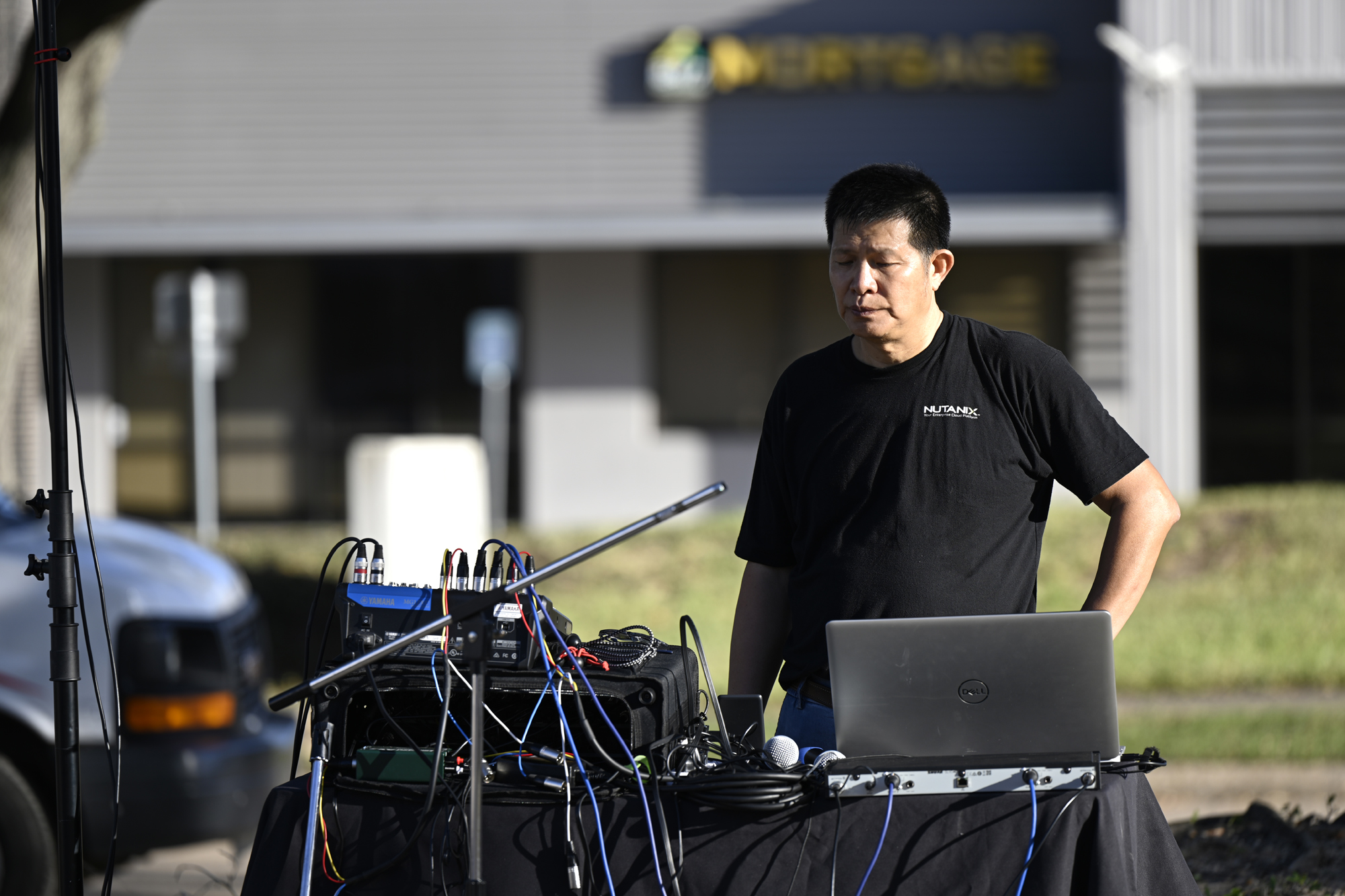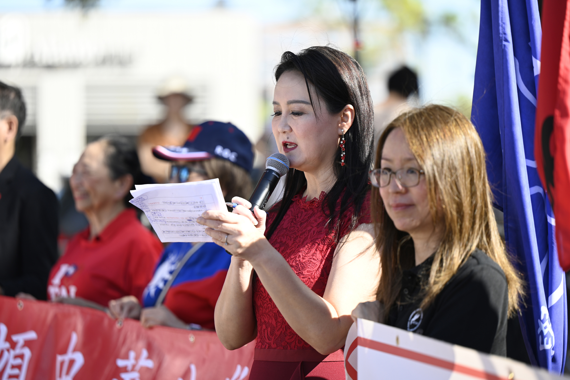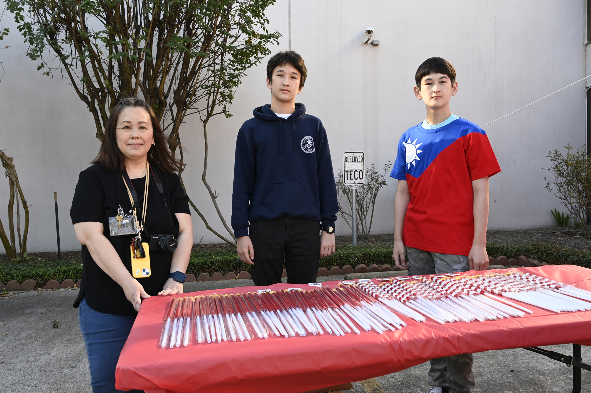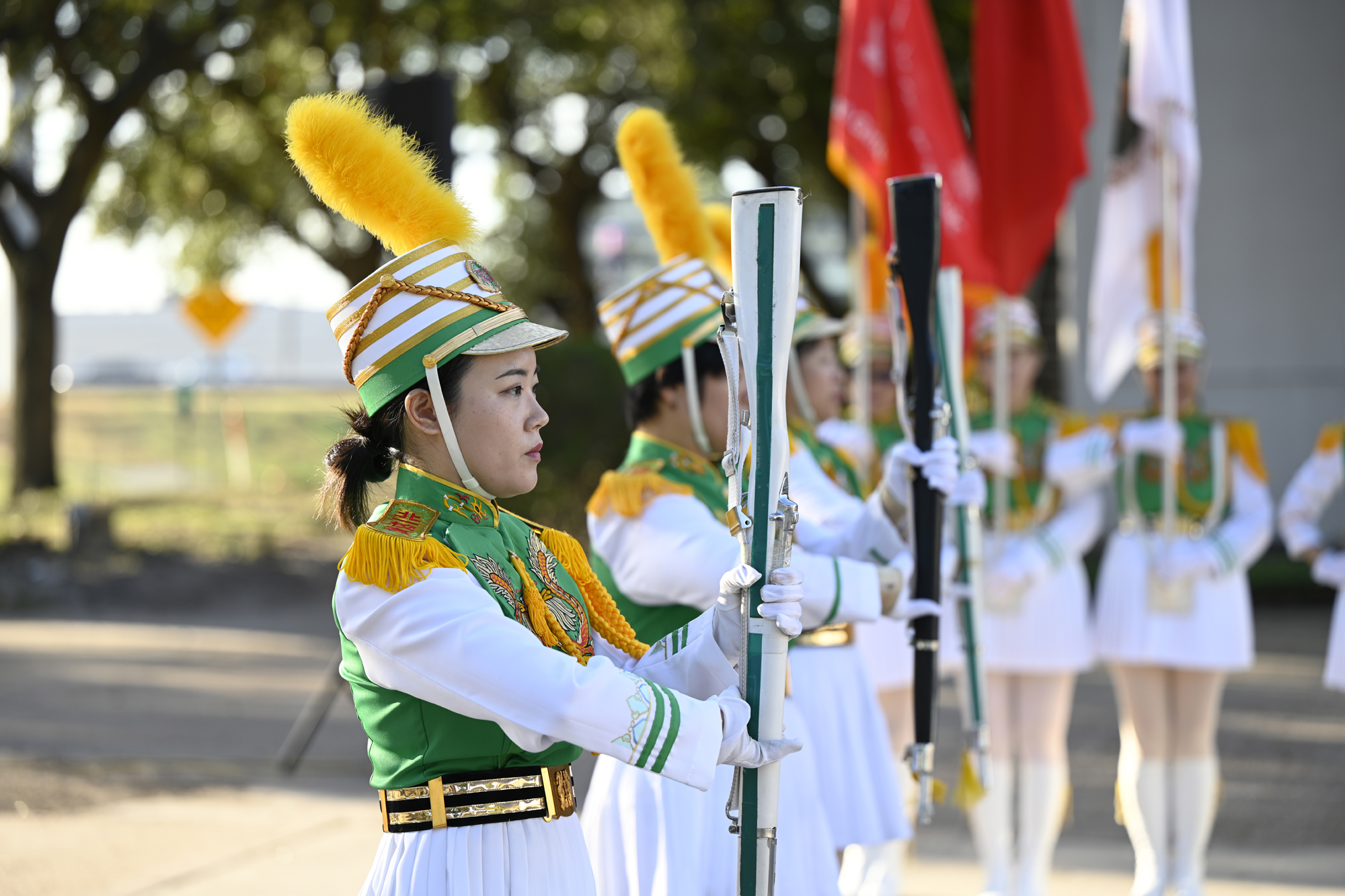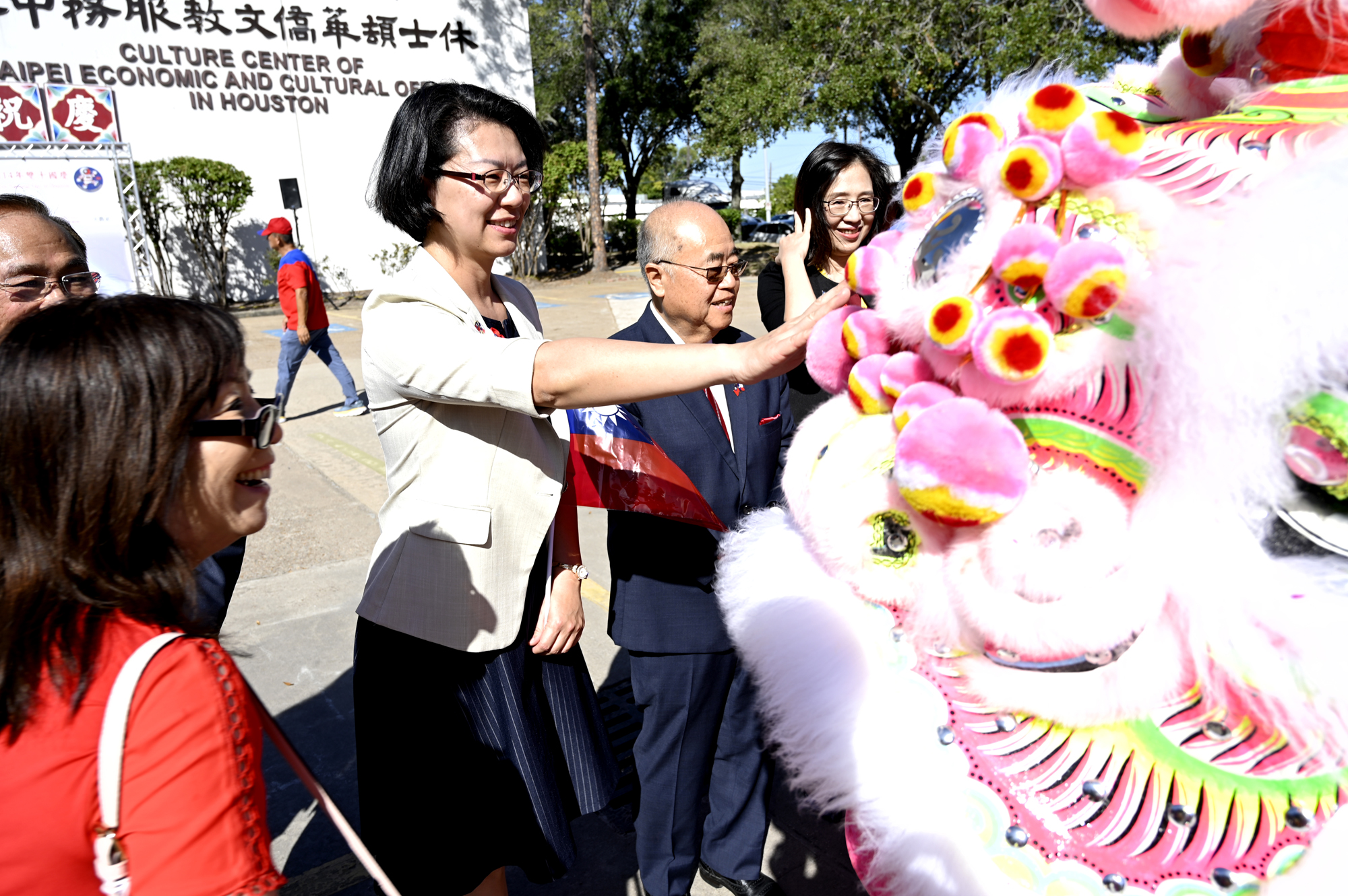 2025年休士頓僑教中心前廣場的國慶國升旗典禮一景。