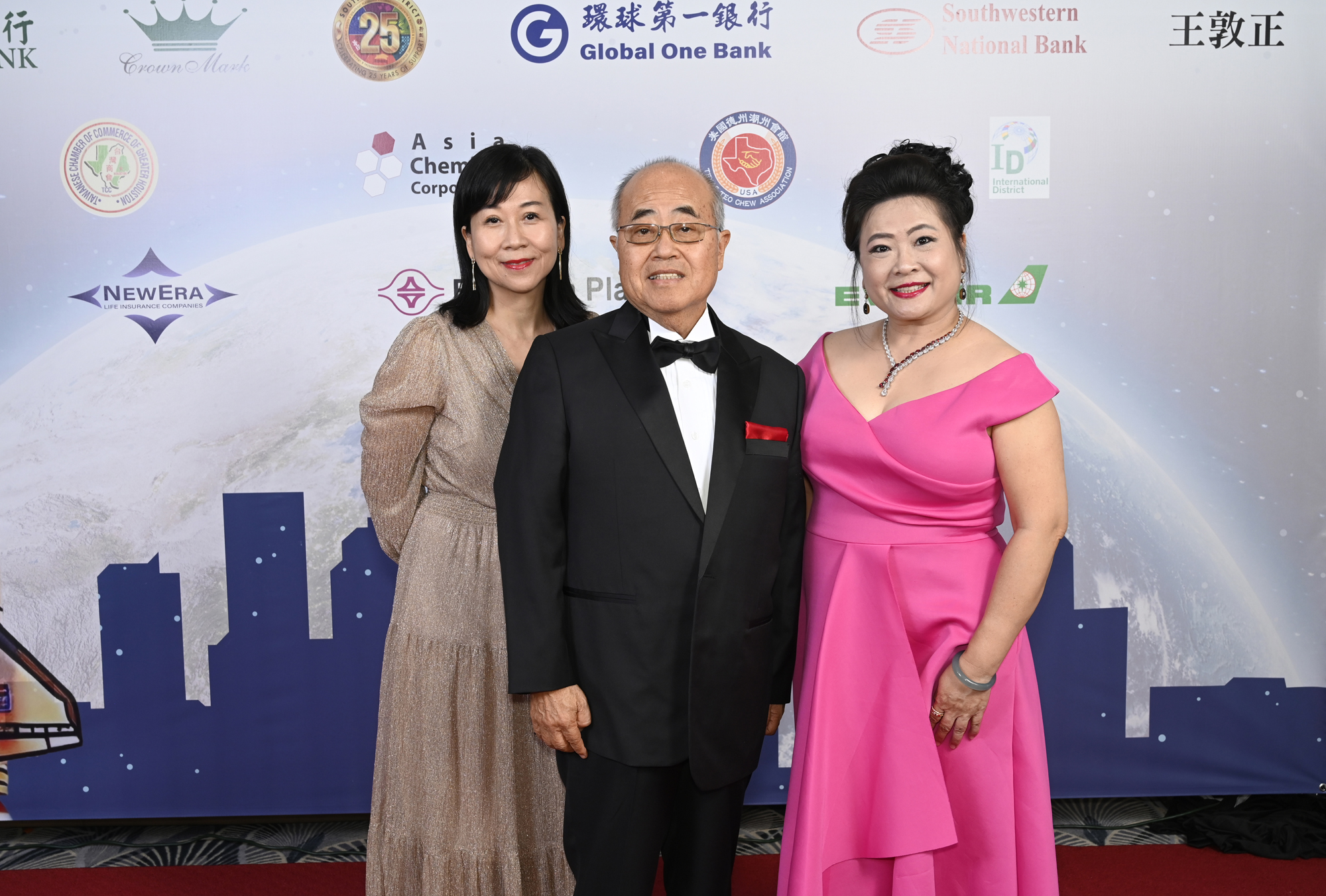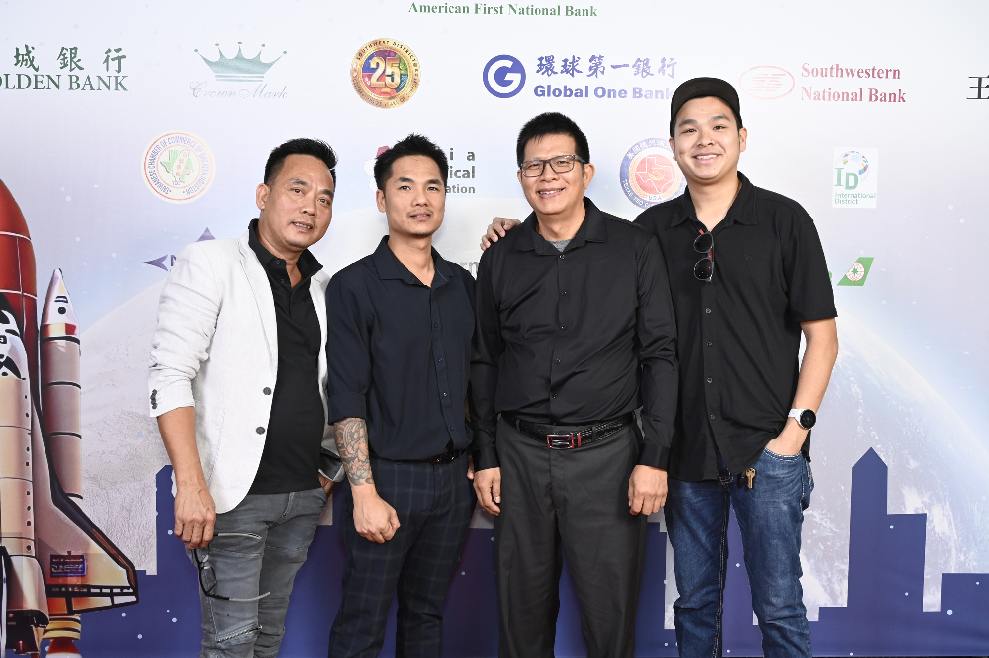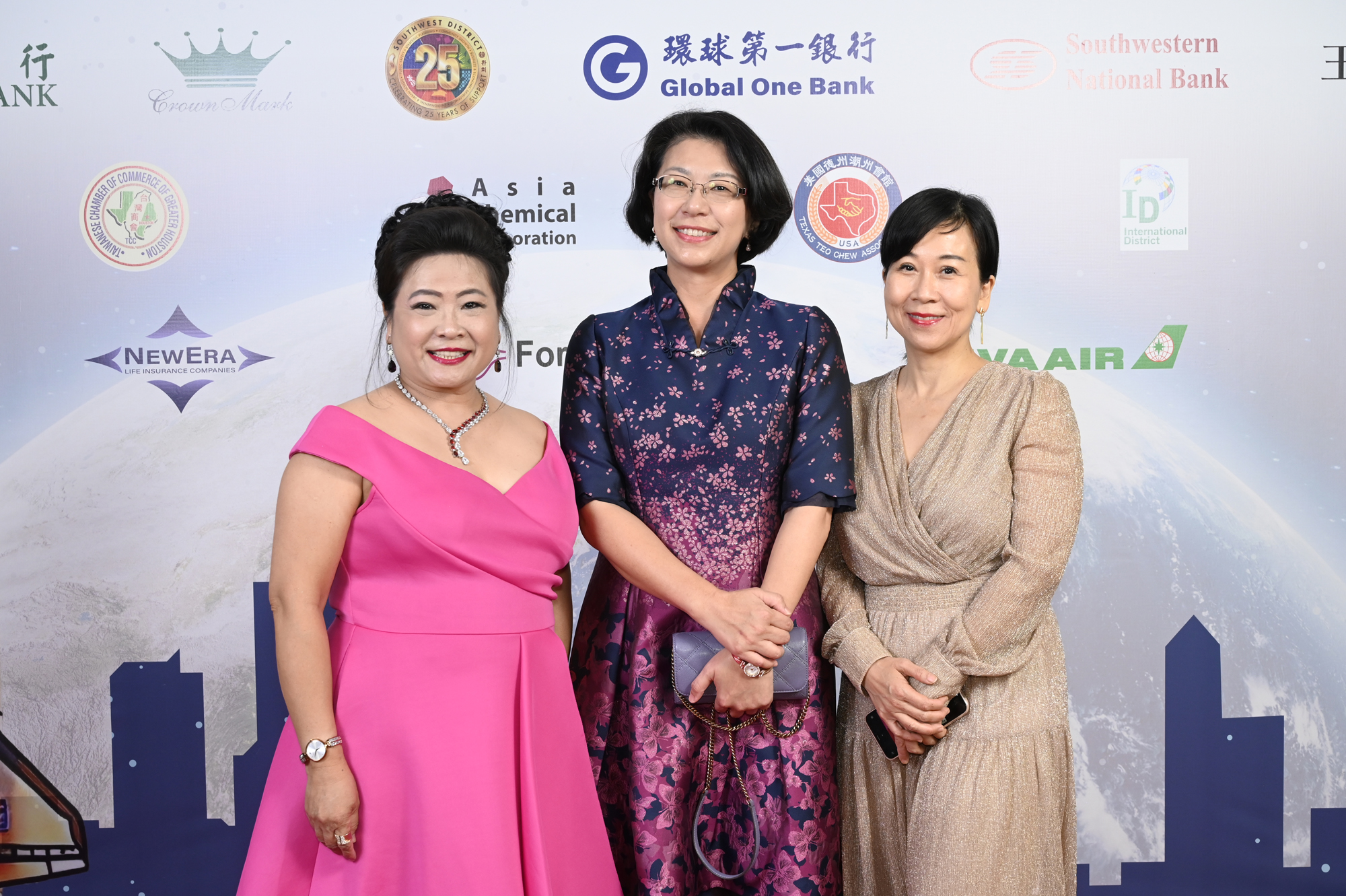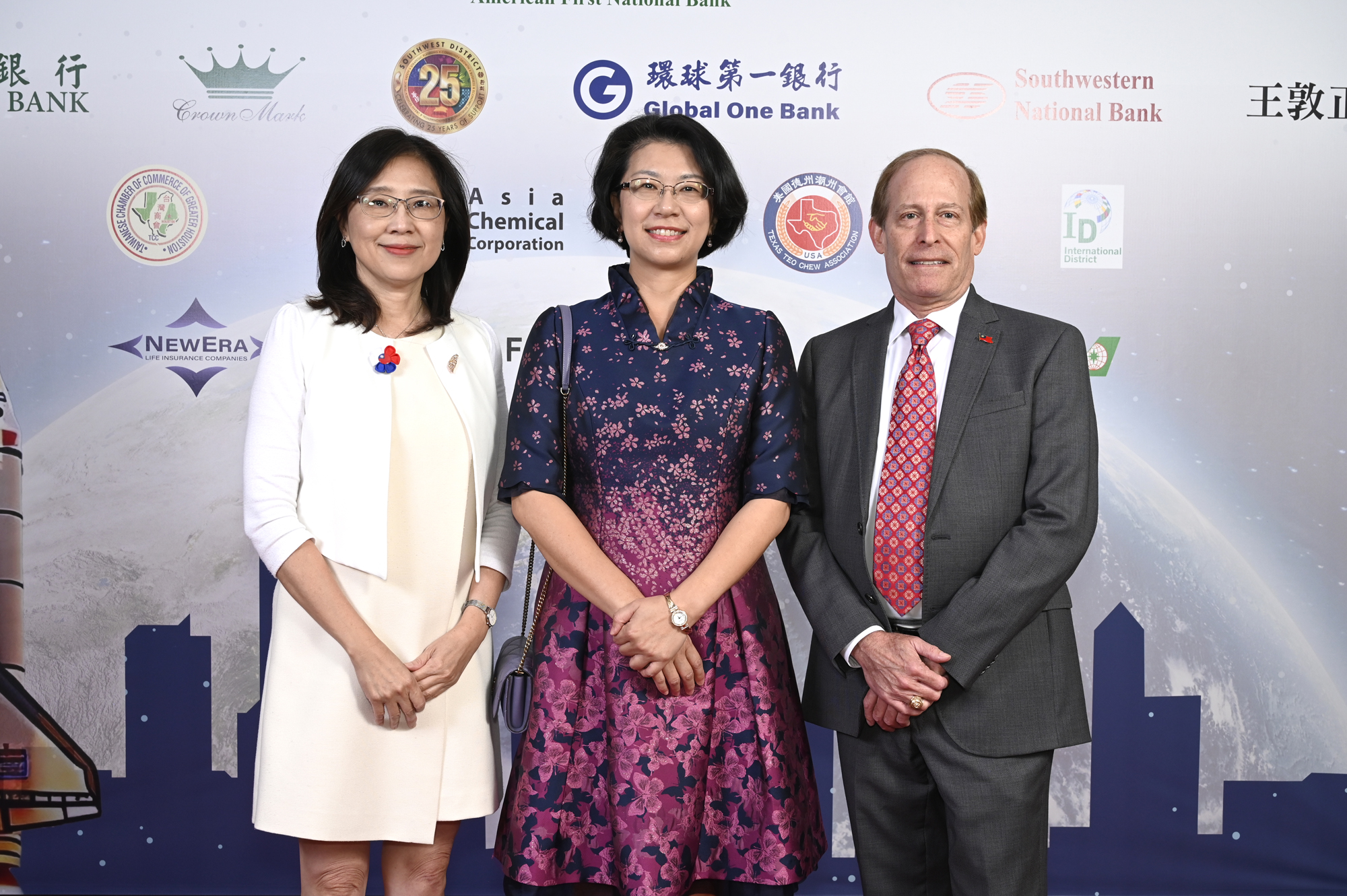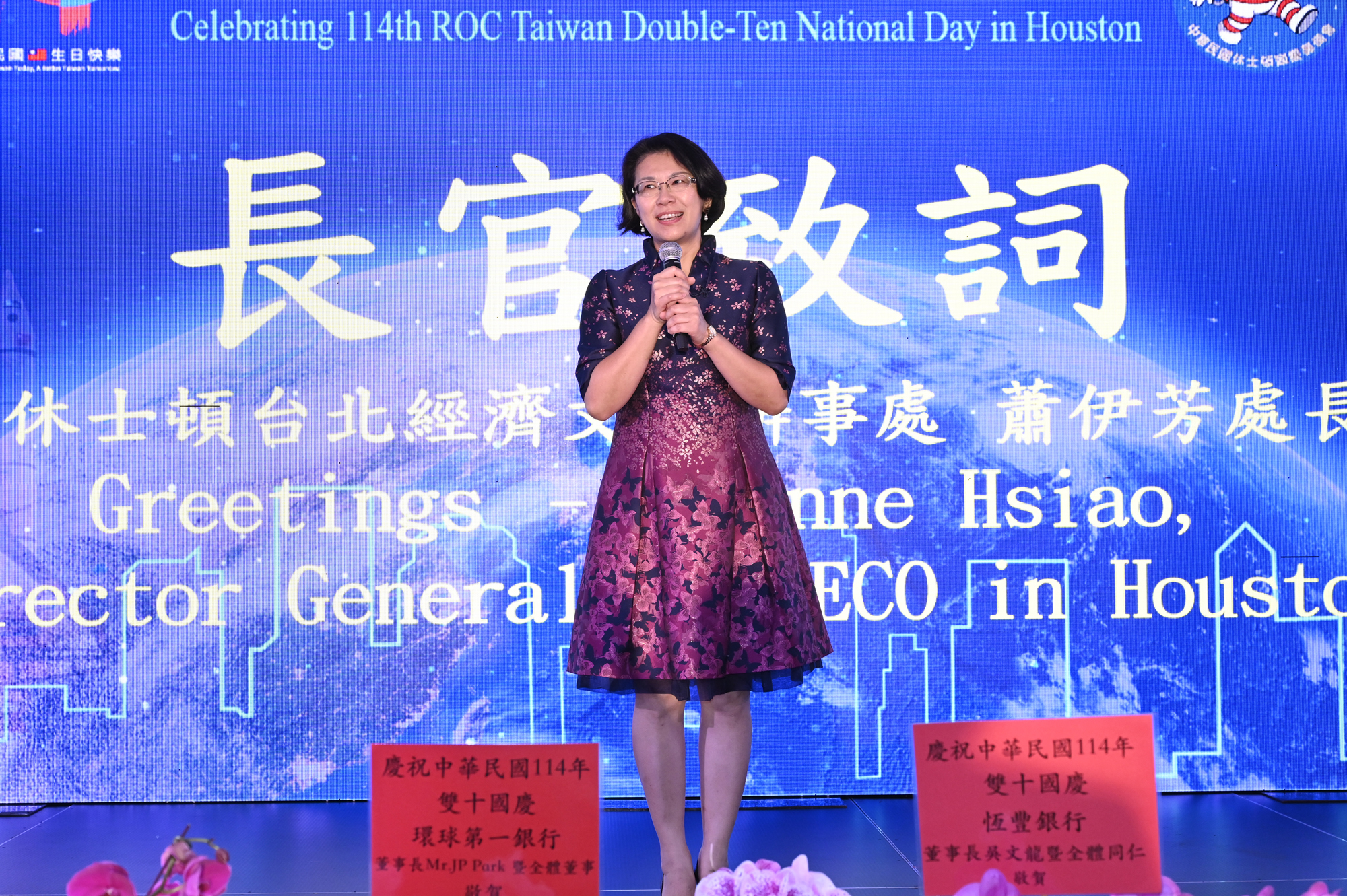 2025年國慶國慶晚宴上,蕭伊芳處長(左一)、林富桂律師(右一)陪同國慶籌備會李雄主任委員(左二)接受國會議員Al Green(右二)致贈賀狀。