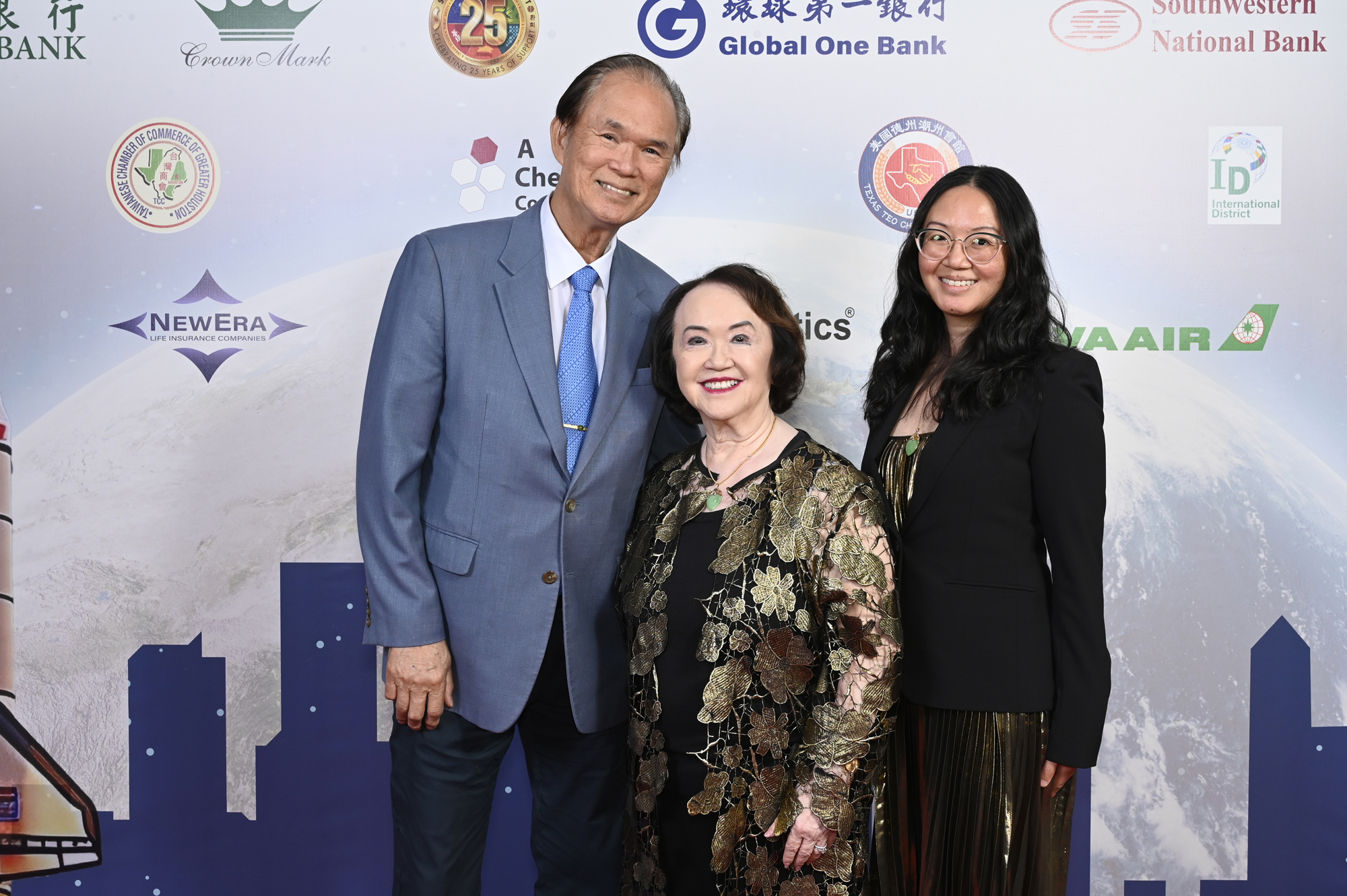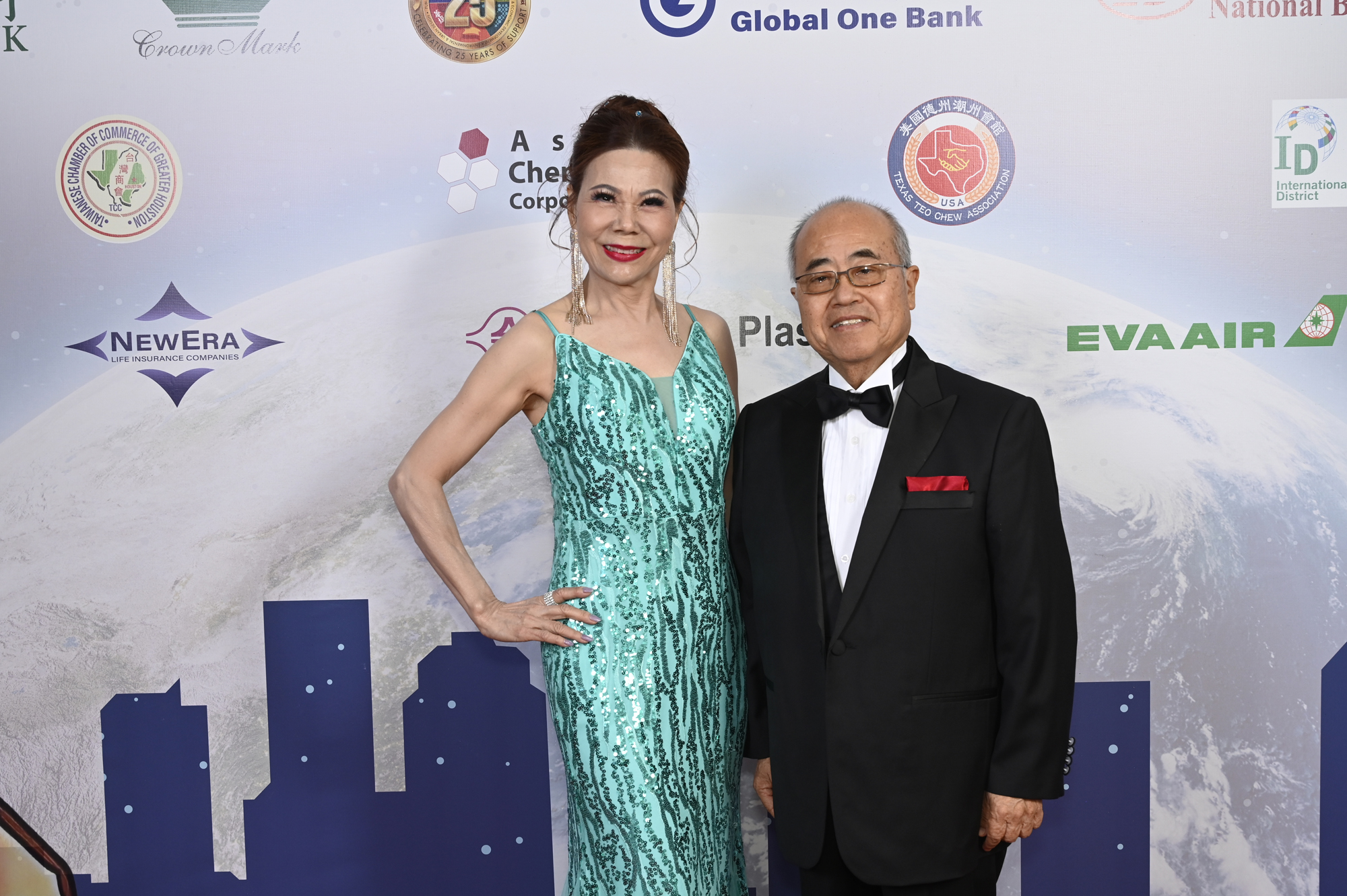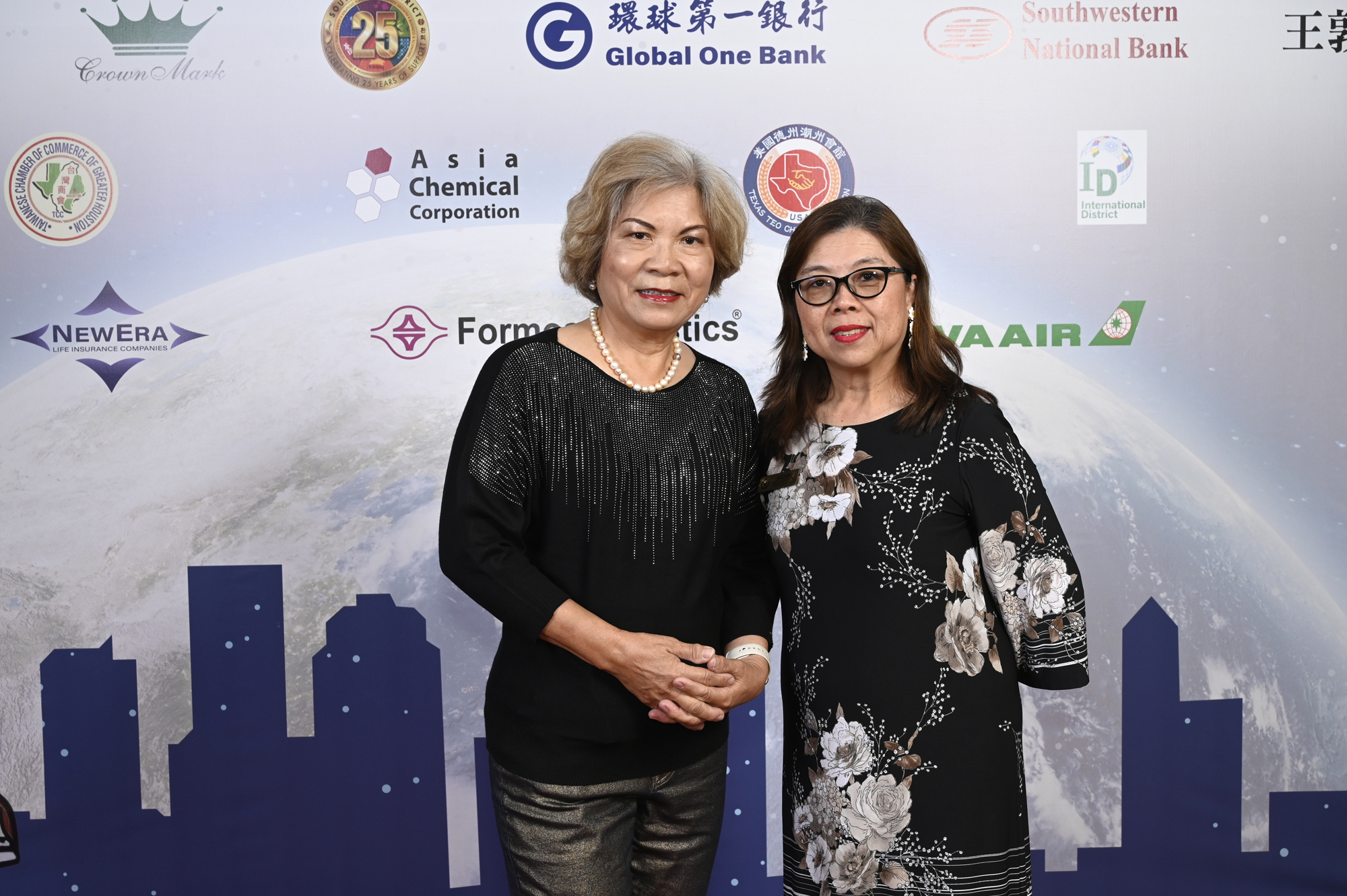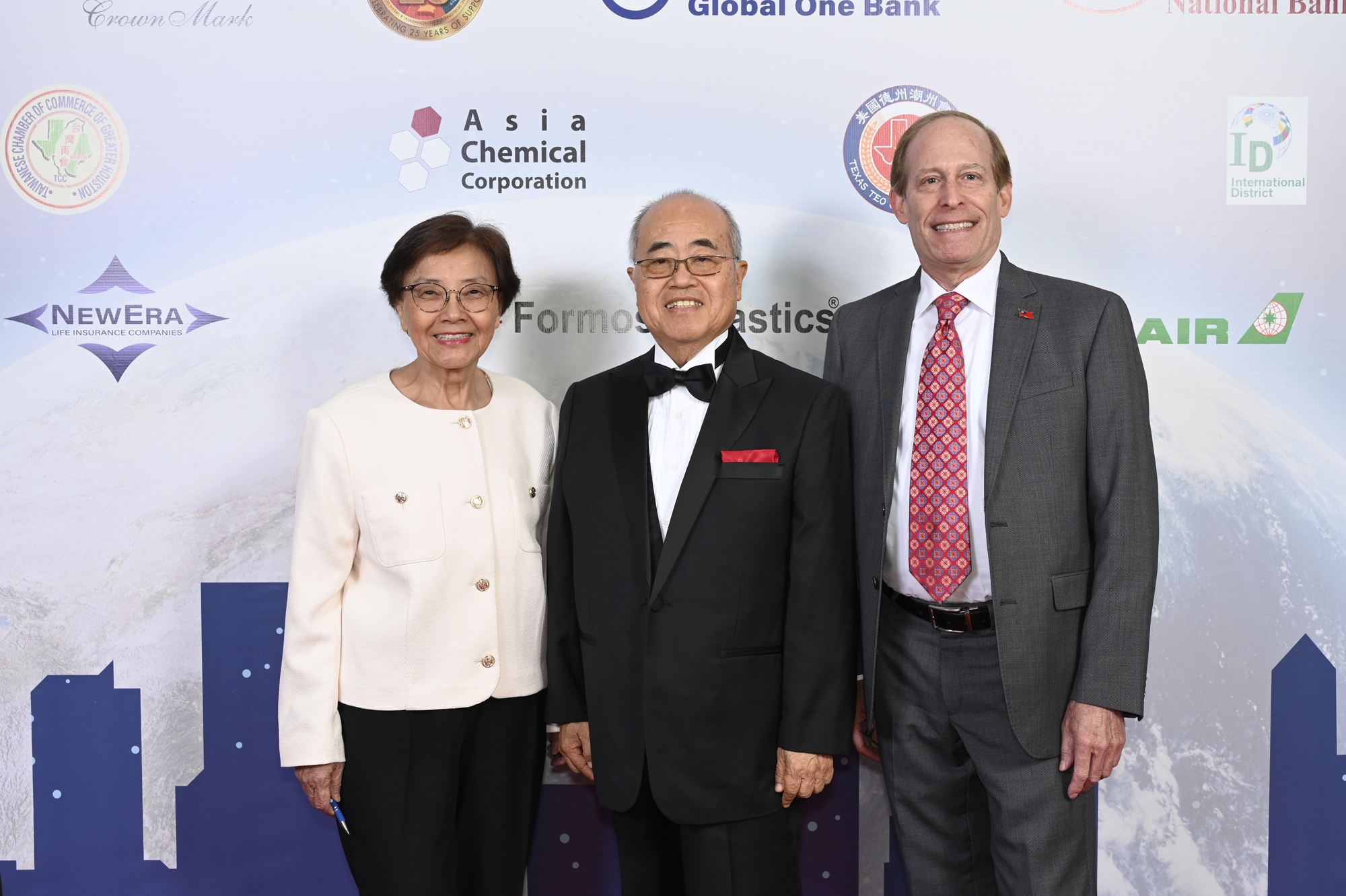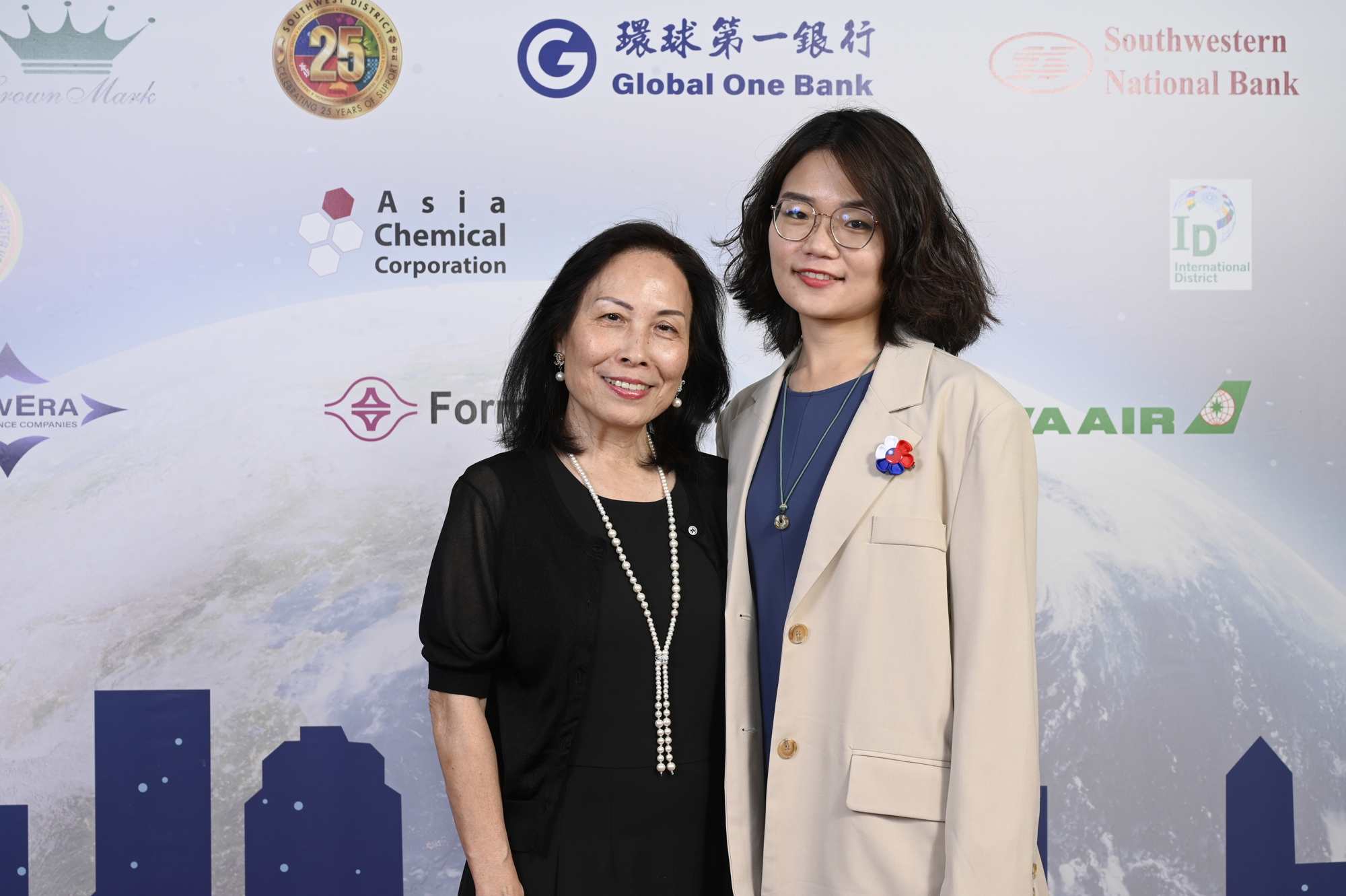2025年國慶國慶晚宴上,蕭伊芳處長(左一)、林富桂律師(右一)陪同國慶籌備會李雄主任委員(左二)接受國會議員Al Green(右二)致贈賀狀。