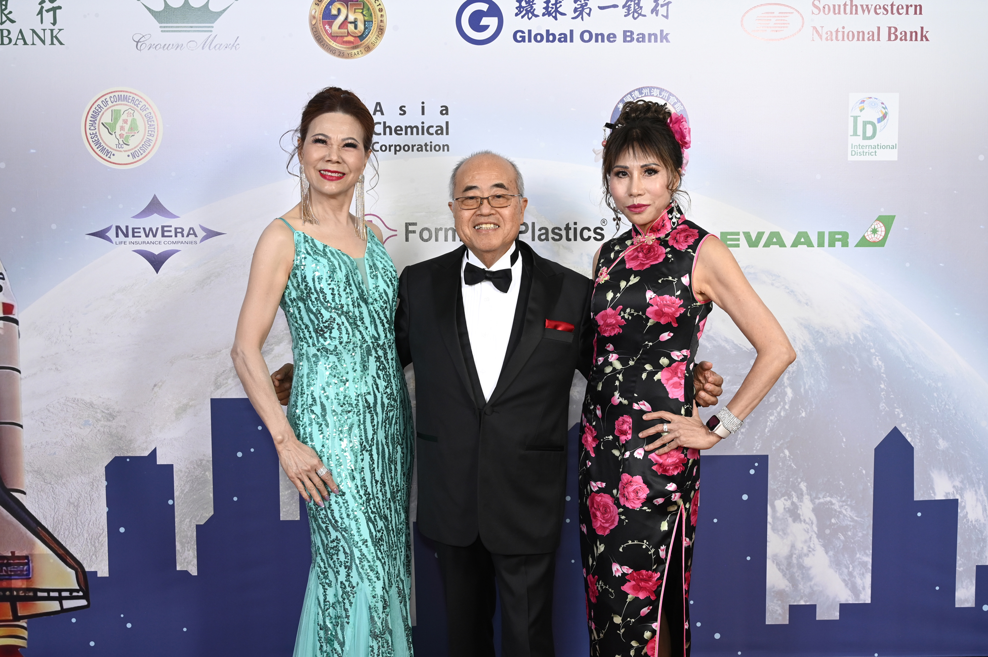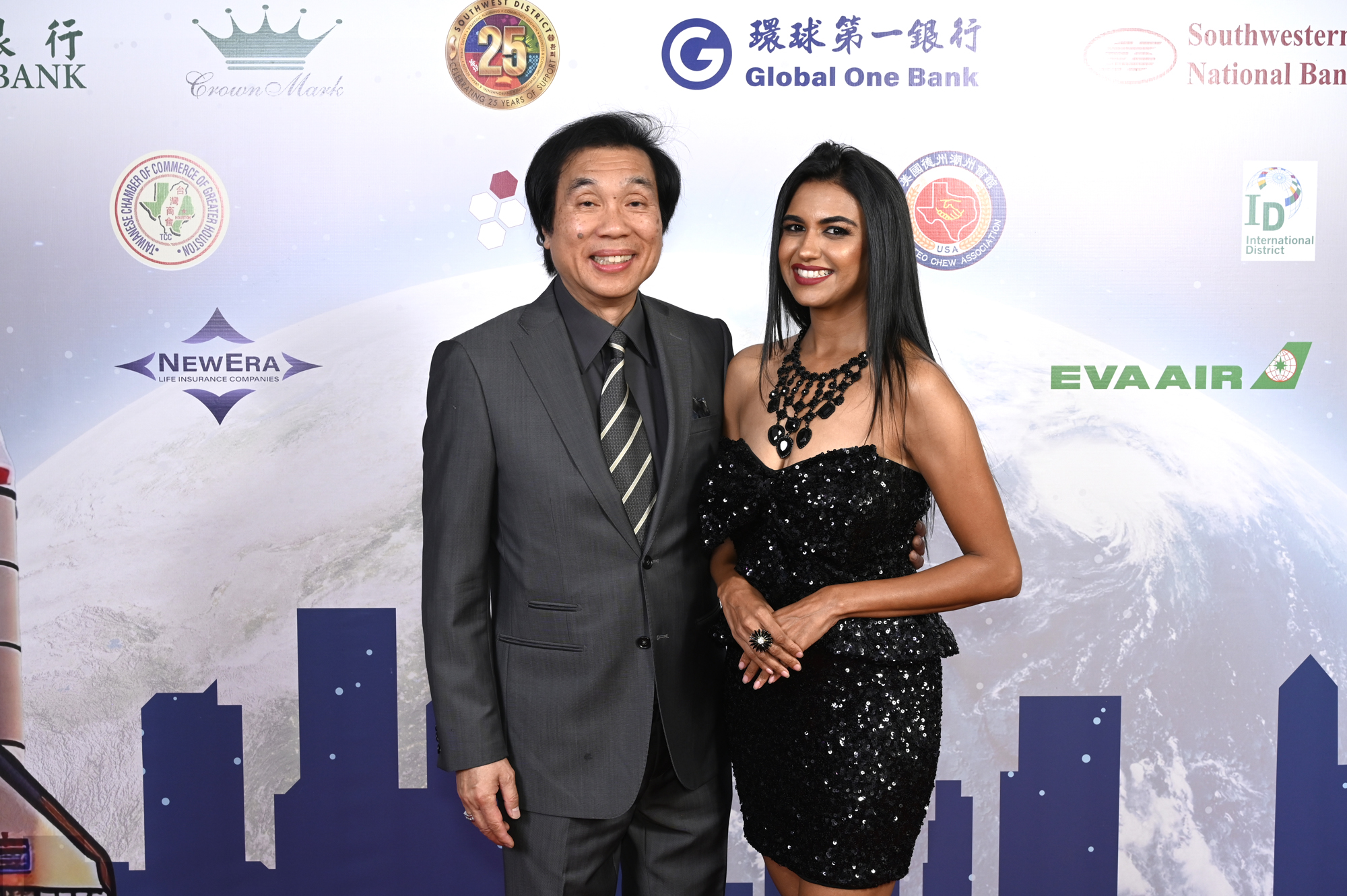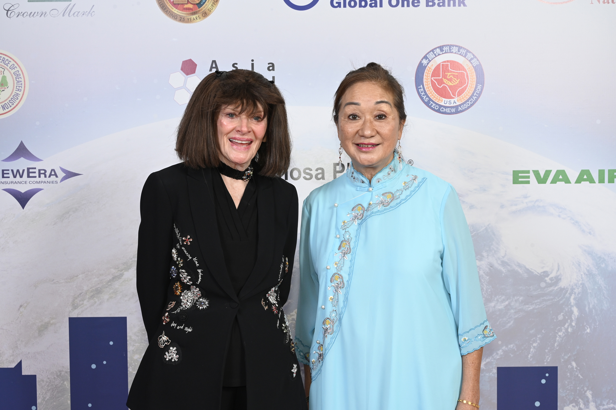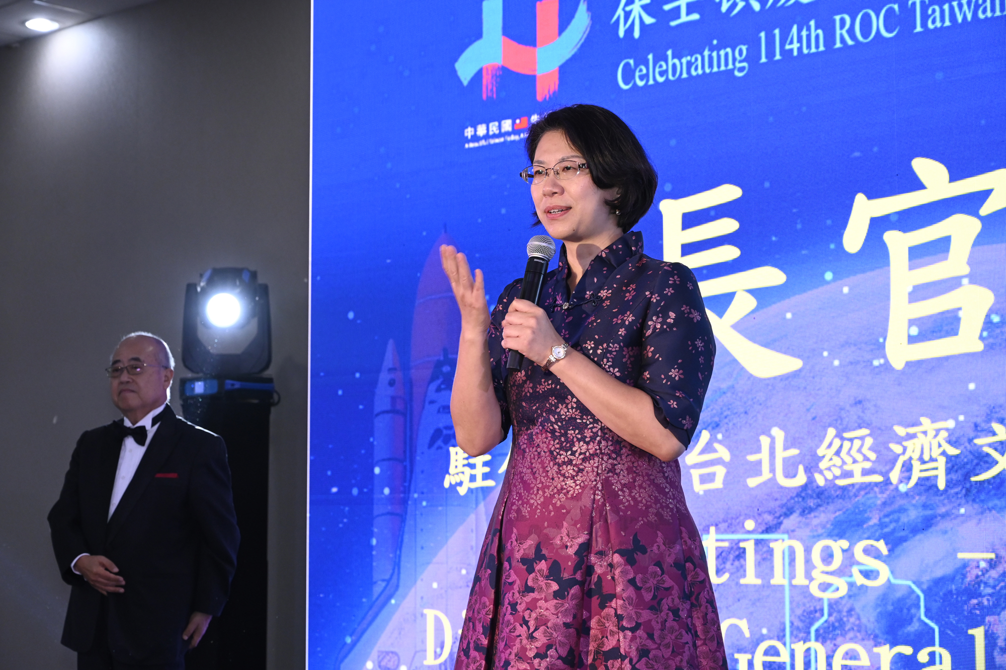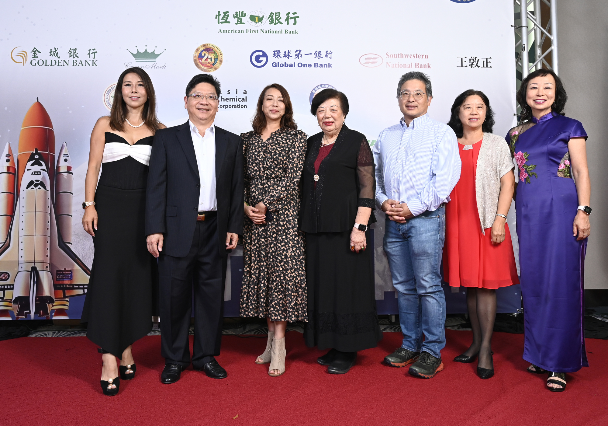 2025年國慶國慶晚宴上,蕭伊芳處長(左一)、林富桂律師(右一)陪同國慶籌備會李雄主任委員(左二)接受國會議員Al Green(右二)致贈賀狀。