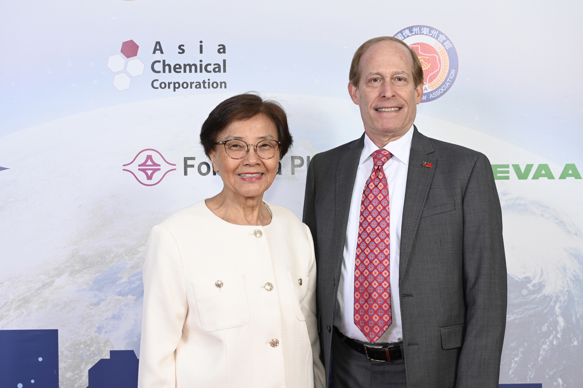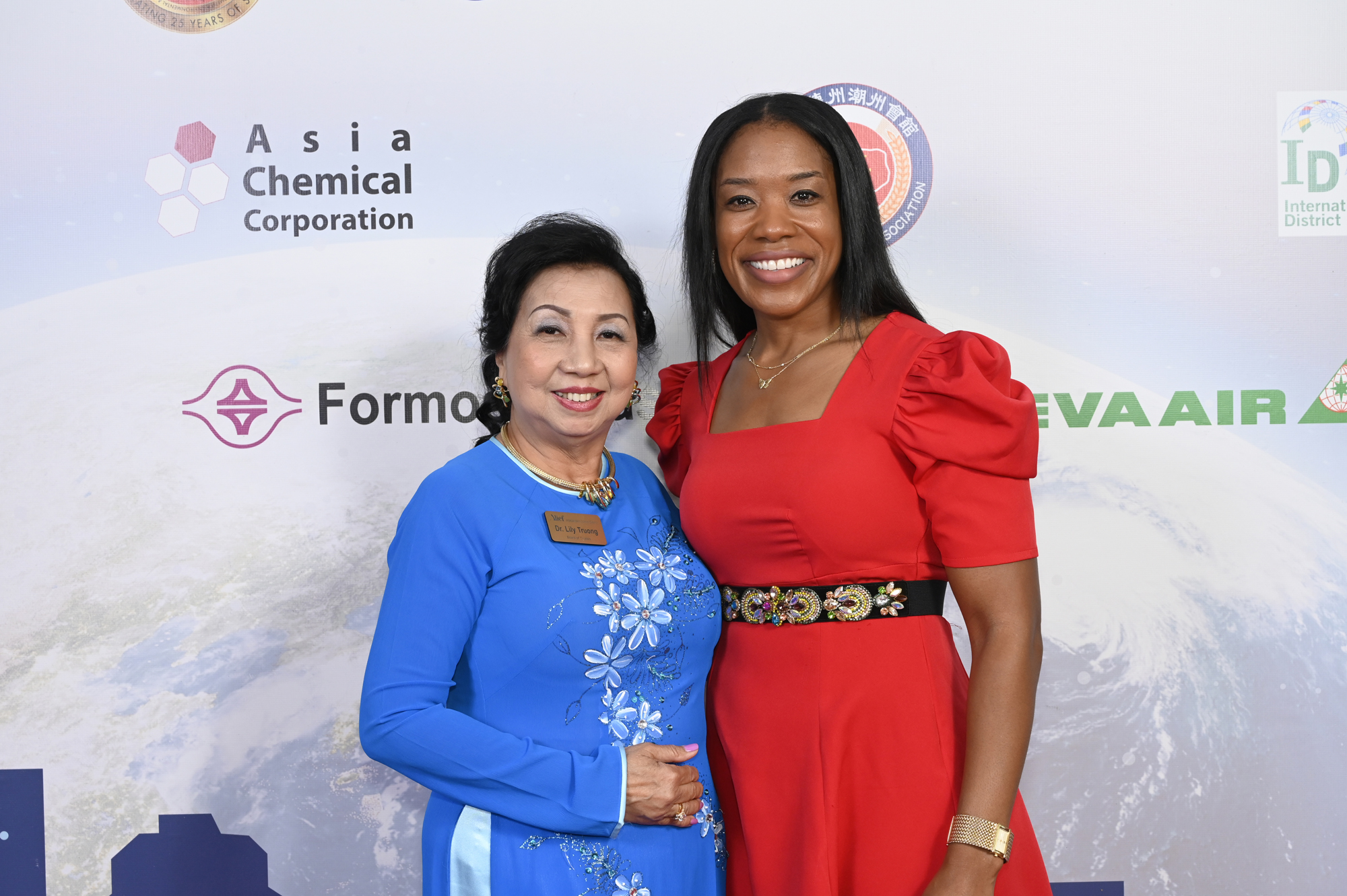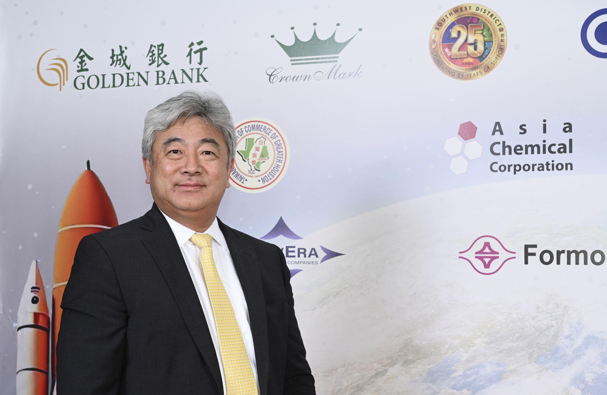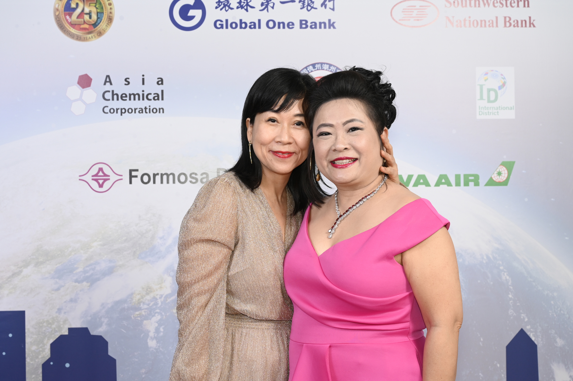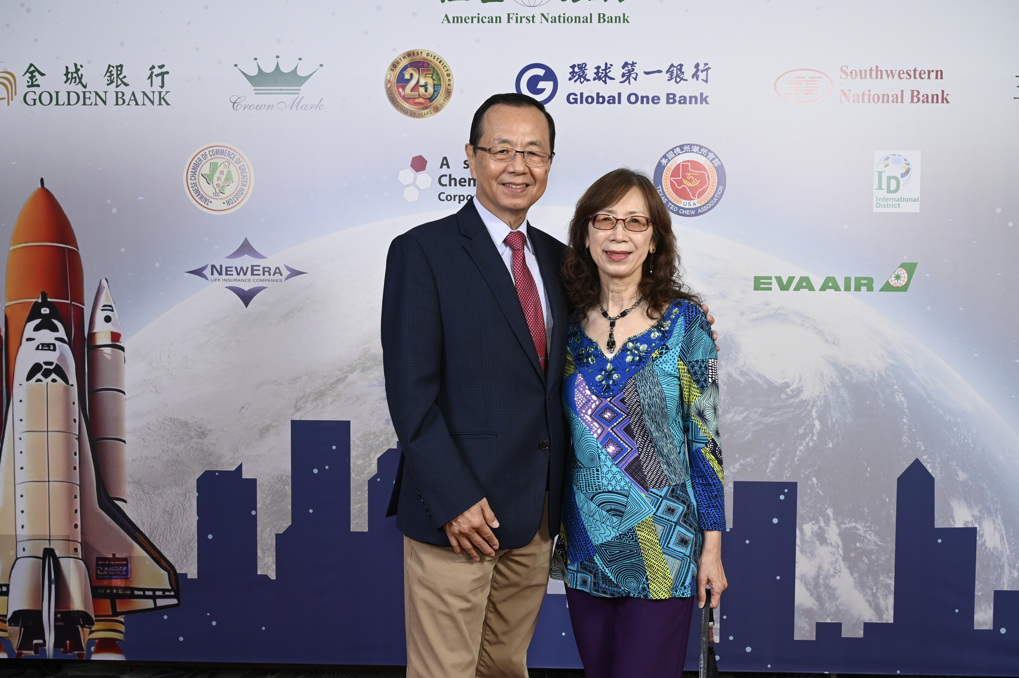 2025年國慶國慶晚宴上,蕭伊芳處長(左一)、林富桂律師(右一)陪同國慶籌備會李雄主任委員(左二)接受國會議員Al Green(右二)致贈賀狀。