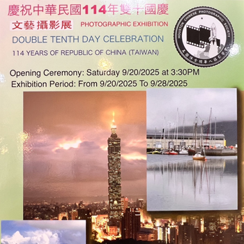 休士頓慶祝雙十國慶的文藝攝影展,將於9月20日下午3點半,在休士頓僑教中心舉行開幕儀式,隨後將持續展至9月28日,讓國慶期間前來僑教中心的僑胞,可以就近參觀...