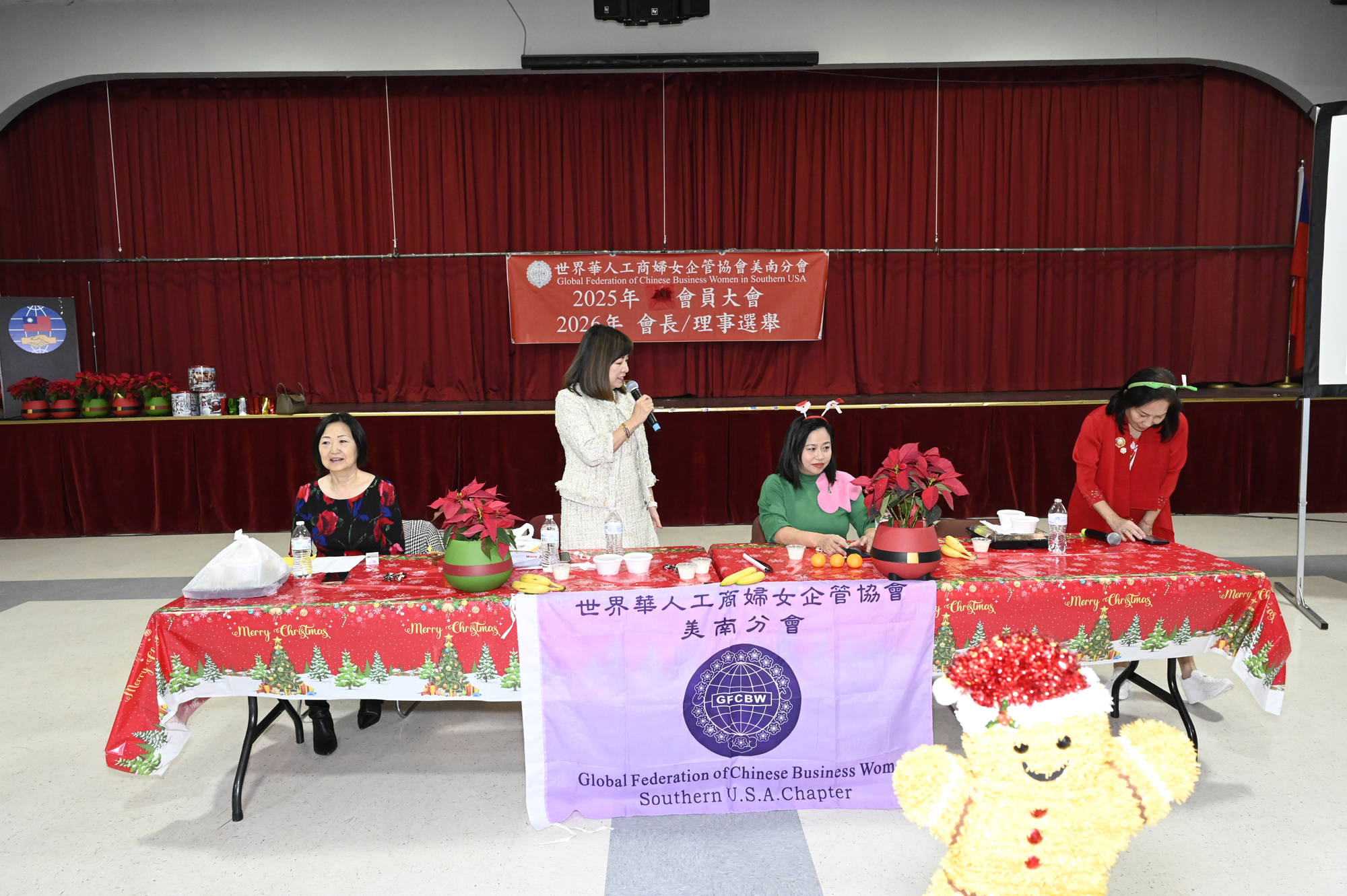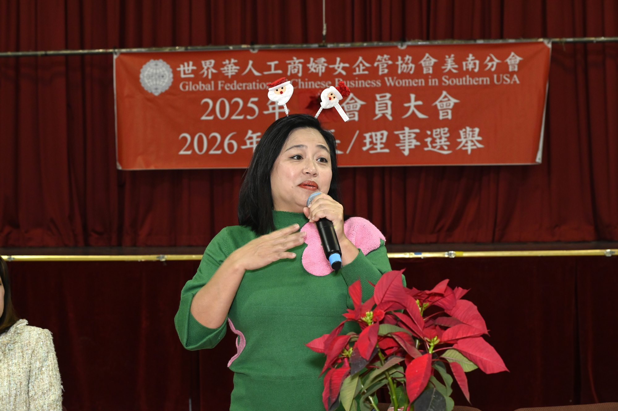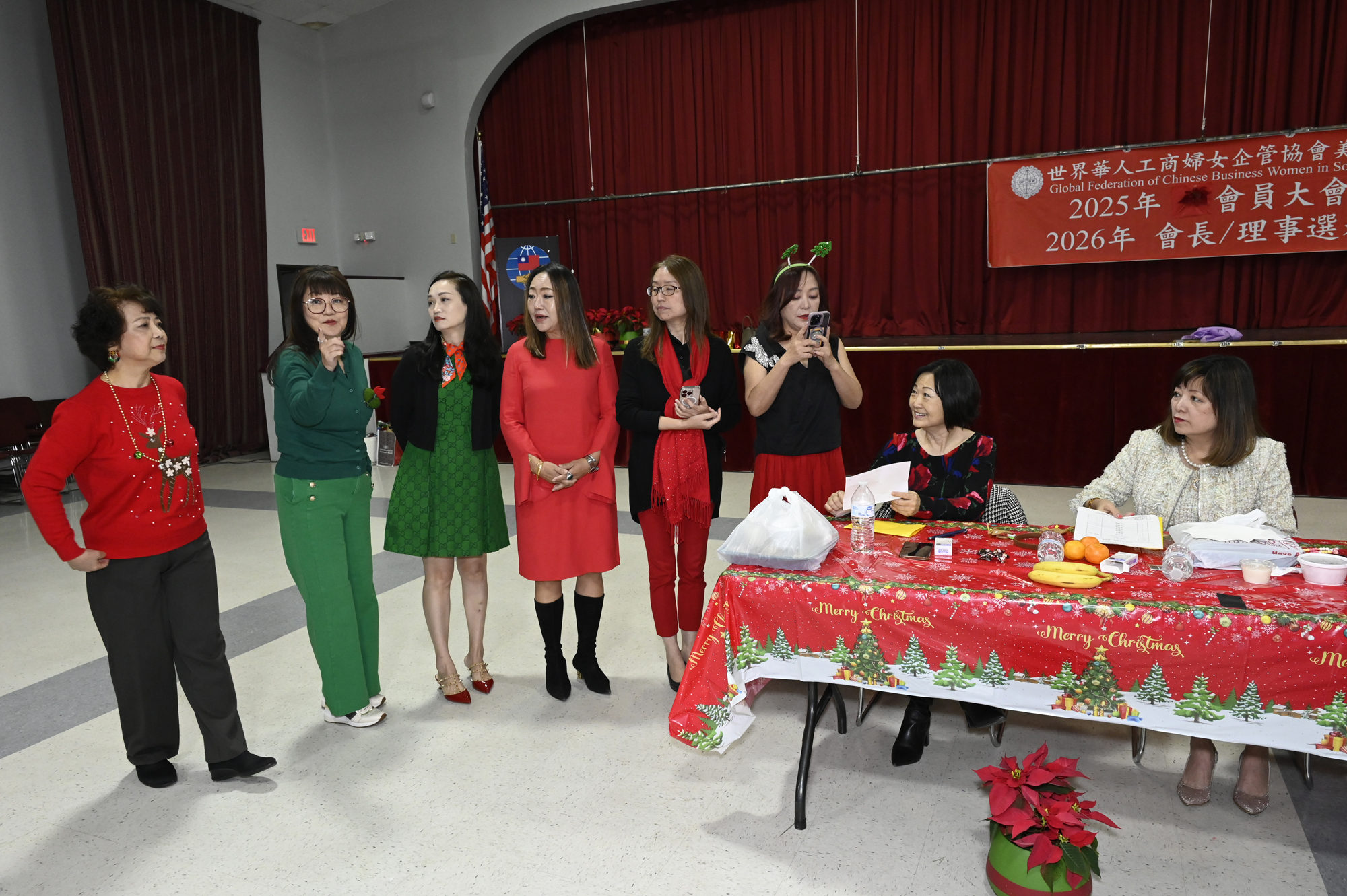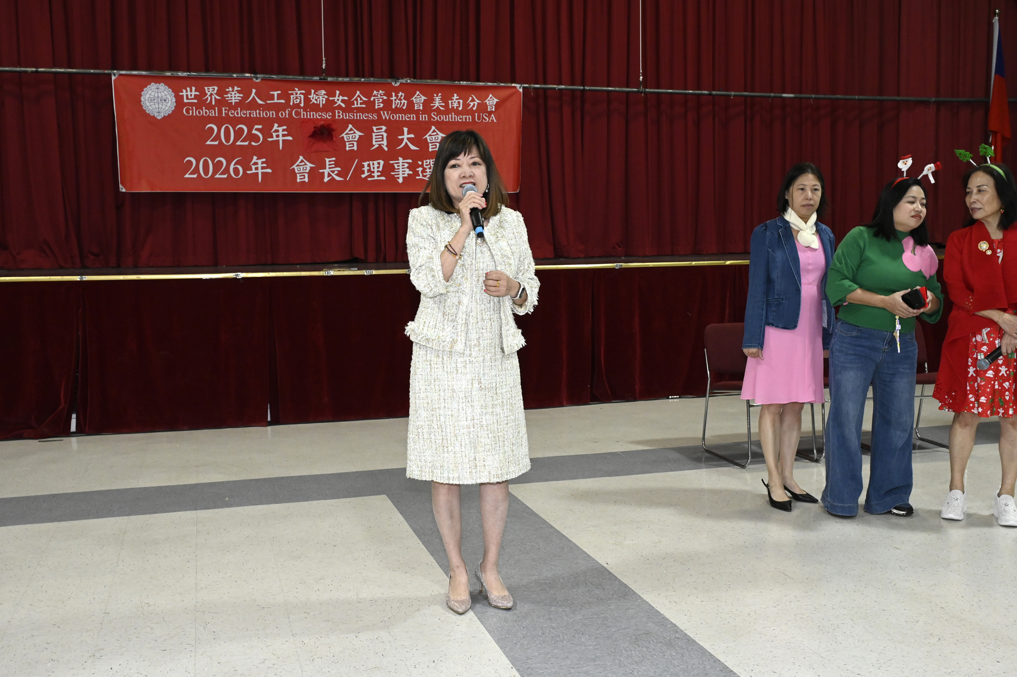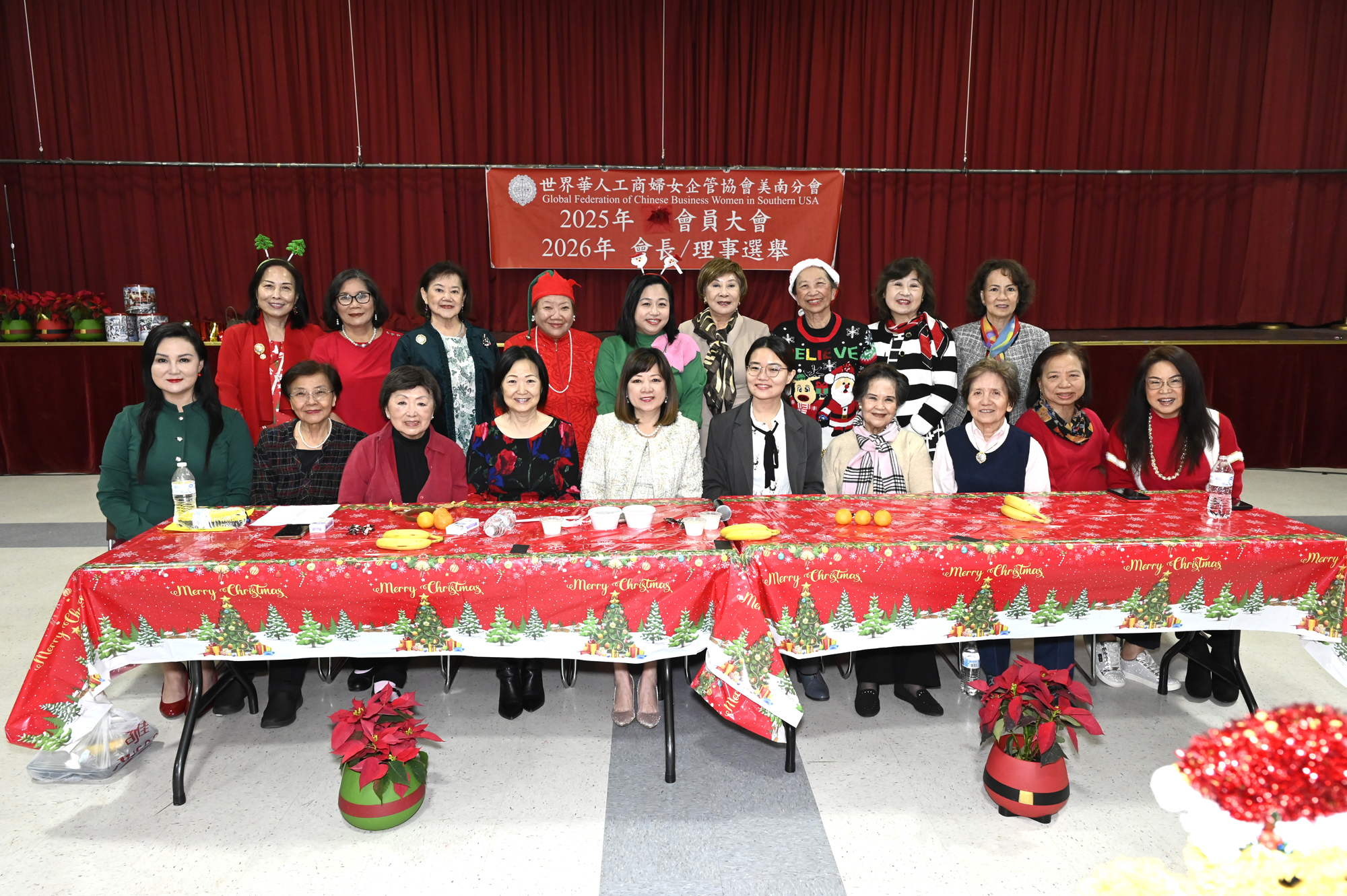 世界華人工商婦女企管協會美南分會,這場年終餐會上,選出了2026年會長及新理事團隊,而裴俊莉會長也將在當天活動後,將為過去一年的所有活動畫下句點,順利卸任。會長正式交接儀式,將安排在2026年的第一季舉行,接任的孫玉玟會長,將於1月1日起開始安排活動會務。