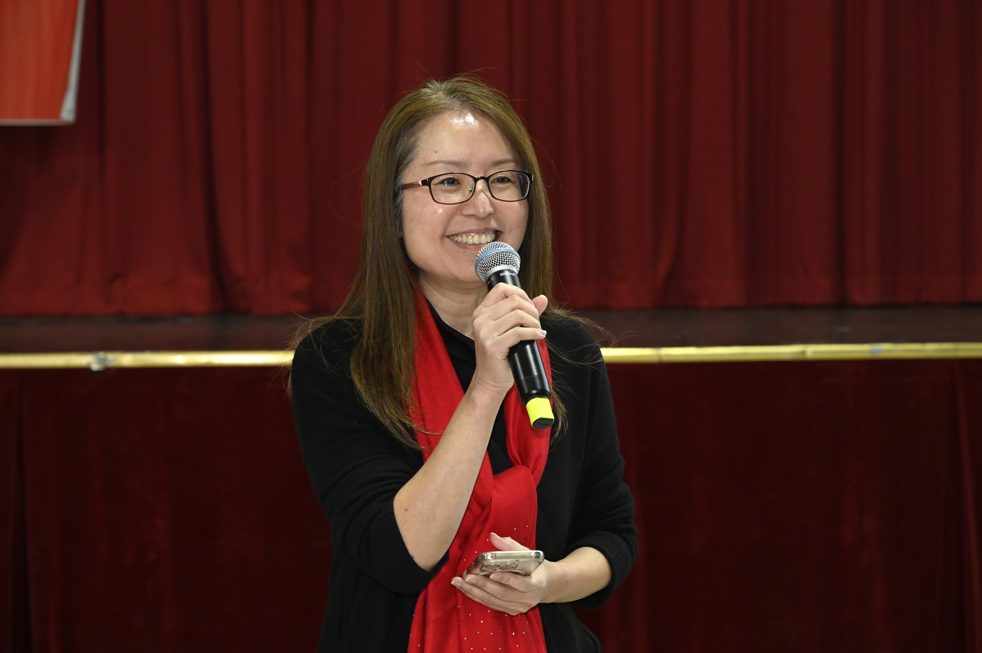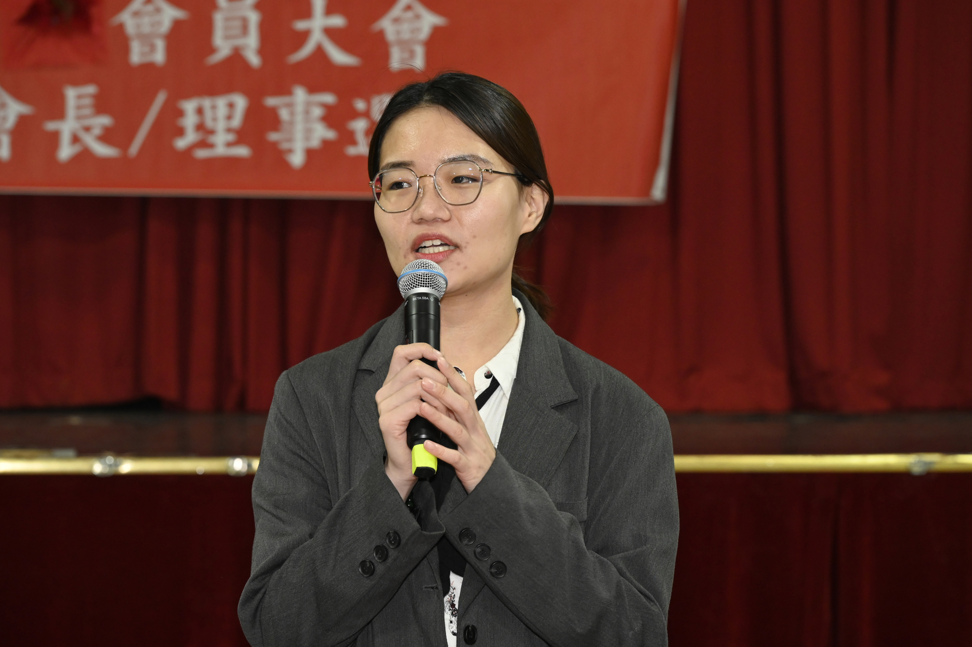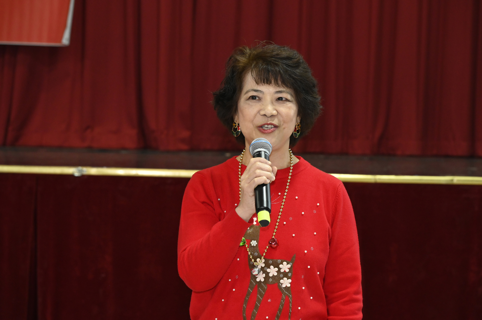 2025年世華美南分會年終理事選舉上唱會歌,右起何真前會長、裴俊莉會長、黎淑瑛名譽總會長、張文華前會長。