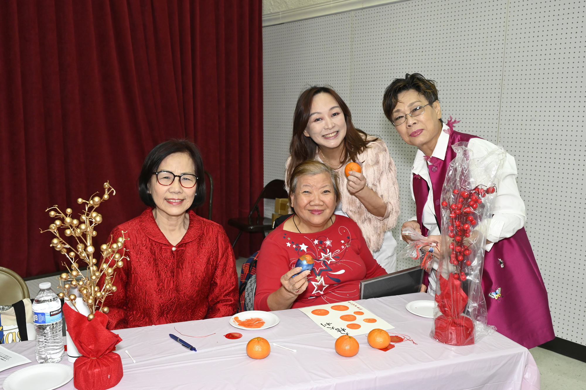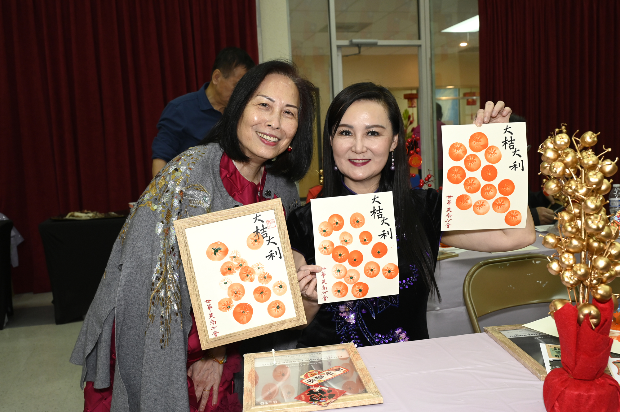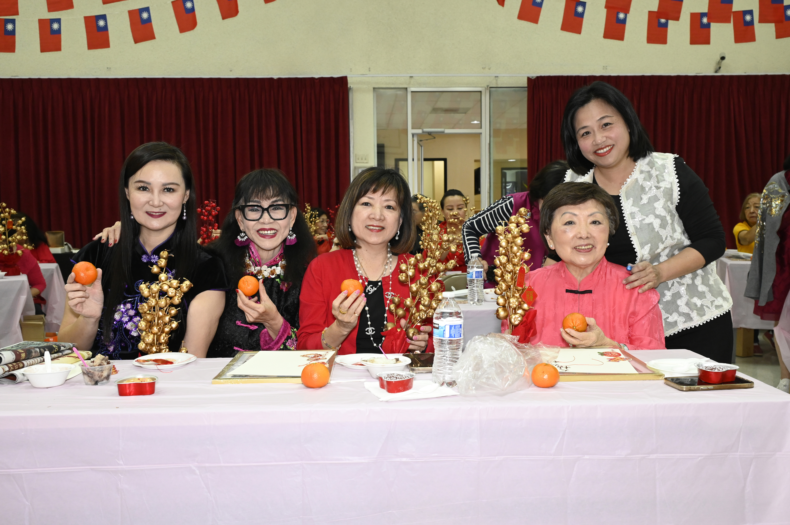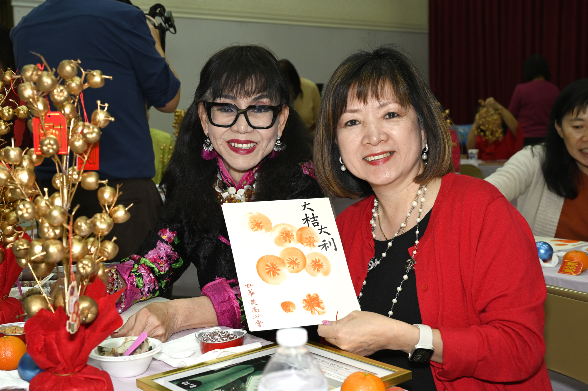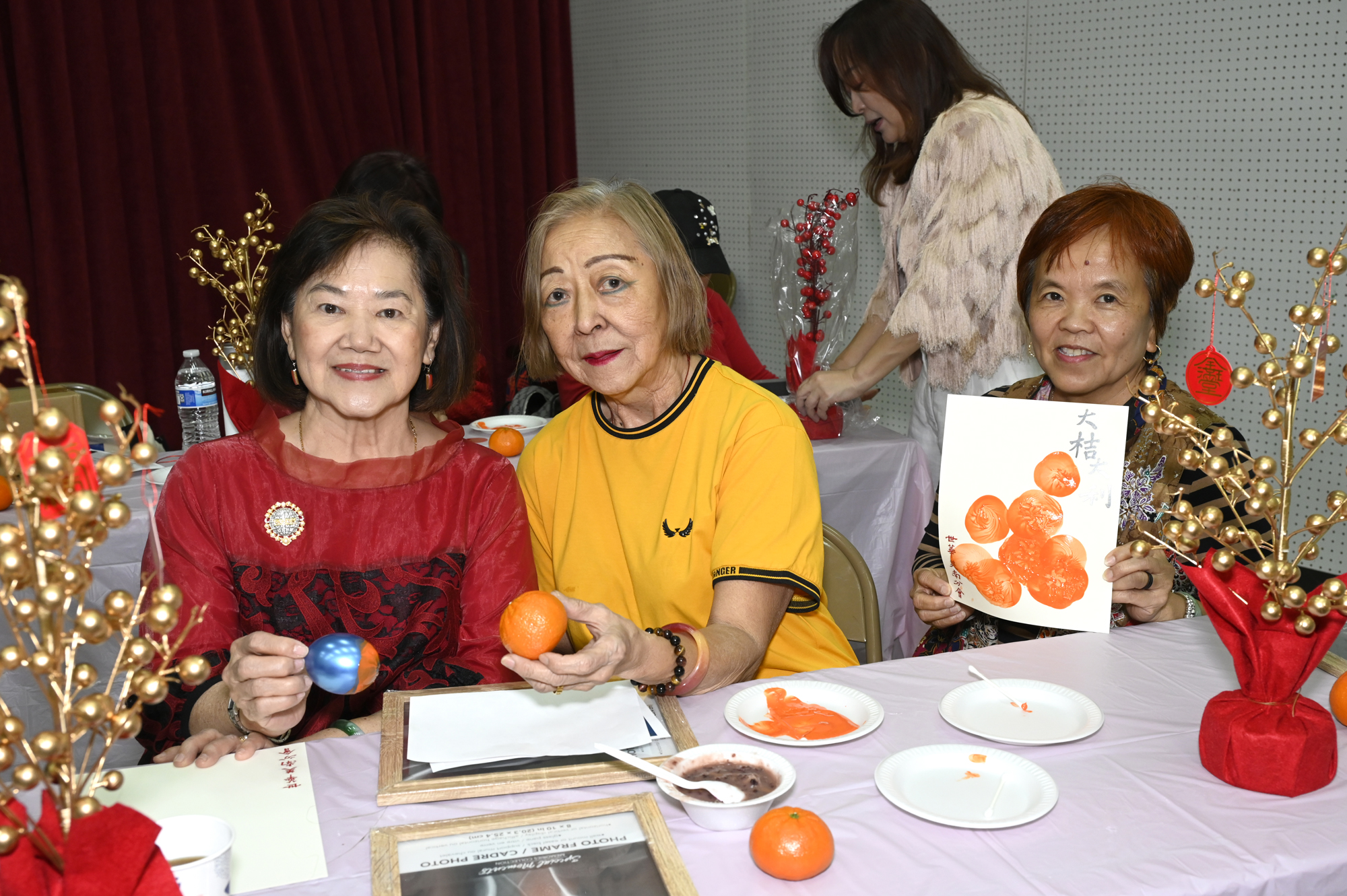 在世華美南分會的這場新春活動中,處處都可感受到新年的熱鬧喜氣,從大幅紅色喜氣的八方來財看板,到參與活動會員的穿著身上,非紅即金,再加上橘子小金樹,徹底讓現場瀰漫濃濃的新年氣氛,大家專注在自己的作品,完成後留下一張紀念畫面,為2026留下一個美好回憶。