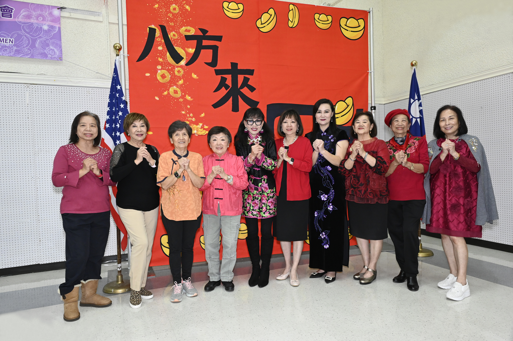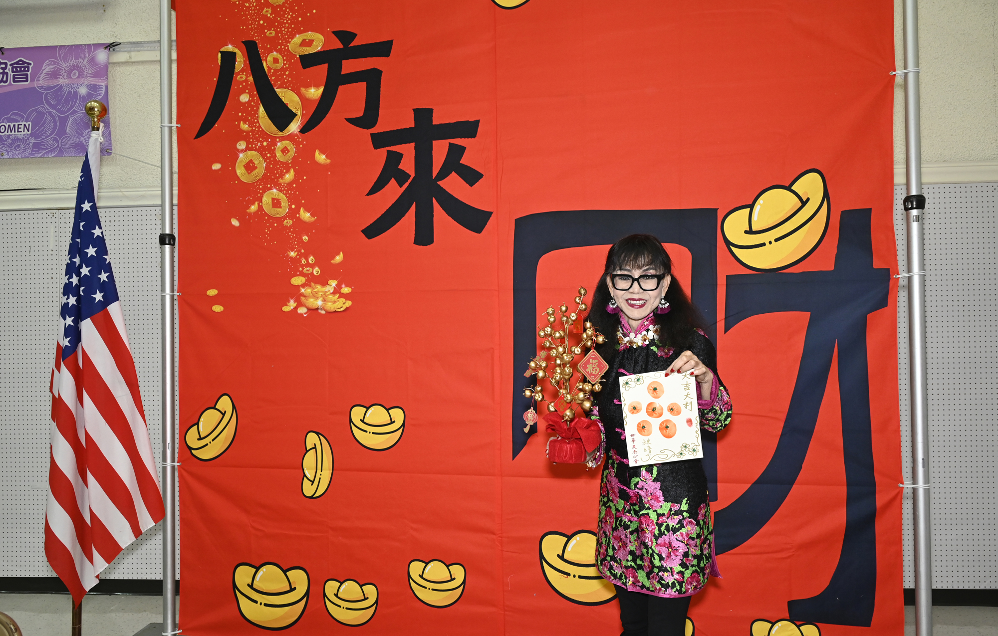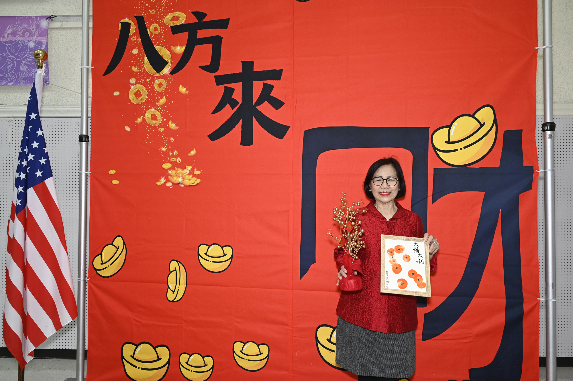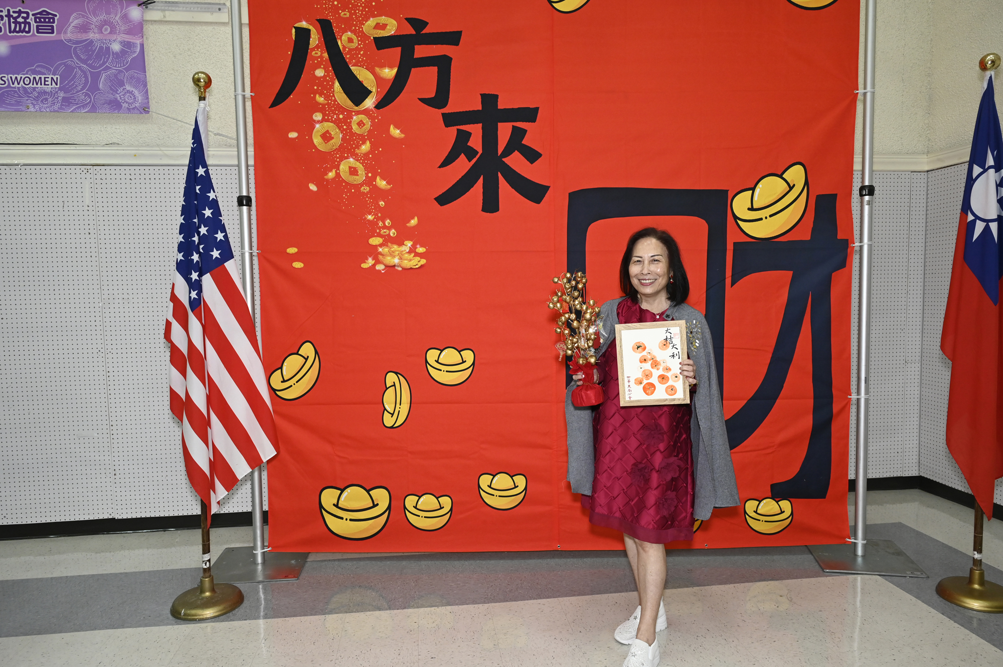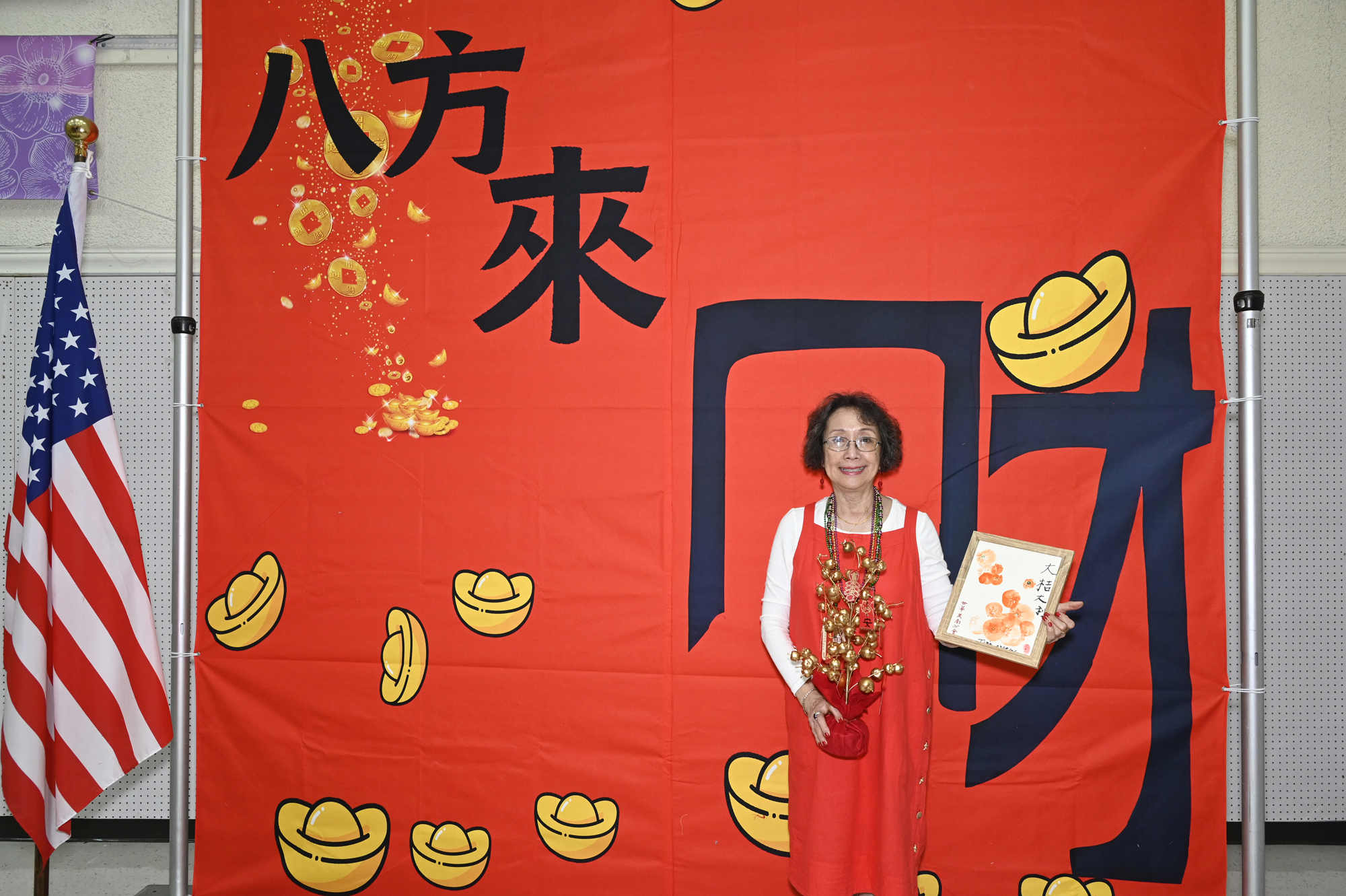 在世華美南分會的這場新春活動中,處處都可感受到新年的熱鬧喜氣,從大幅紅色喜氣的八方來財看板,到參與活動會員的穿著身上,非紅即金,再加上橘子小金樹,徹底讓現場瀰漫濃濃的新年氣氛,大家專注在自己的作品,完成後留下一張紀念畫面,為2026留下一個美好回憶。
