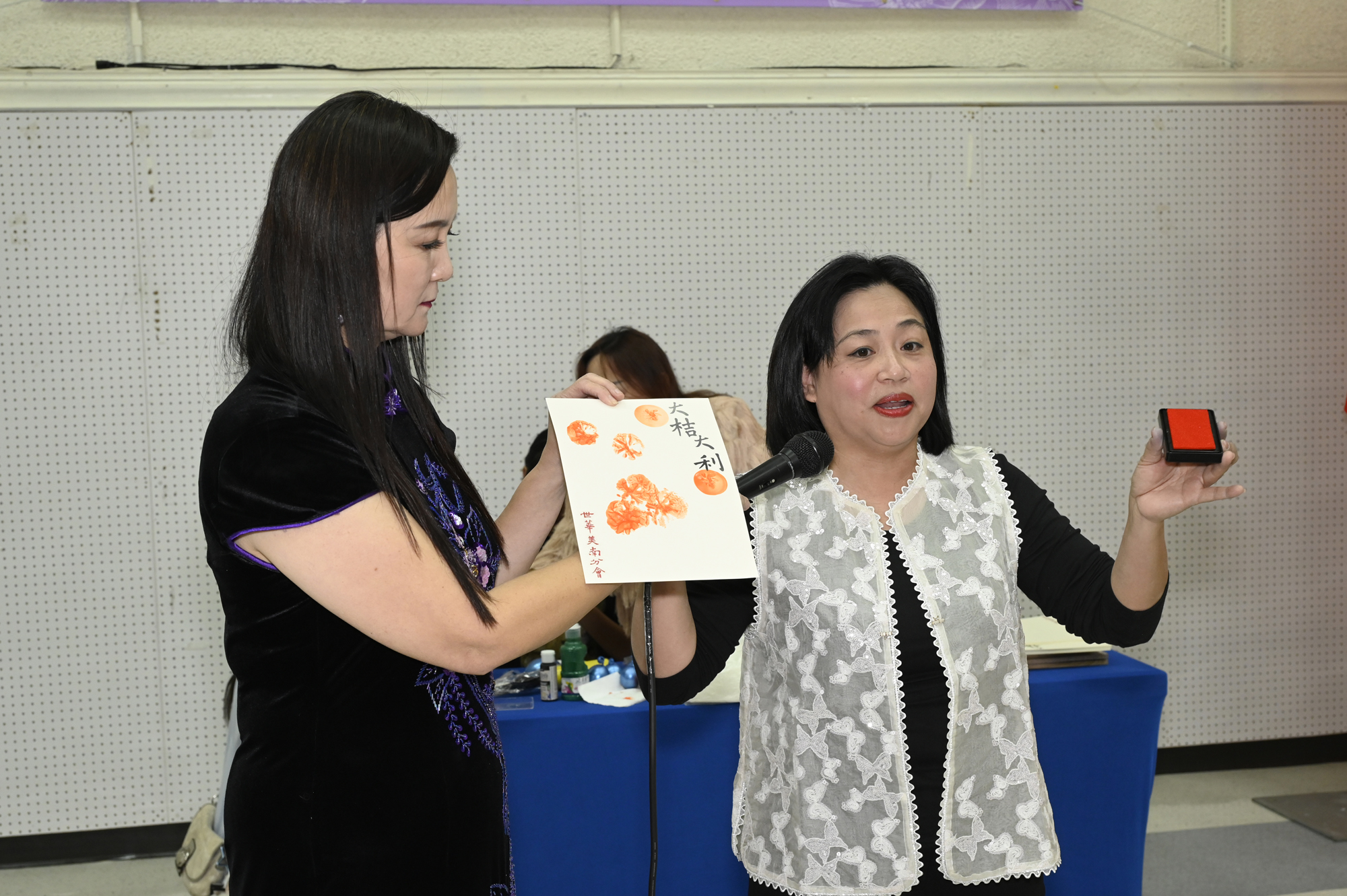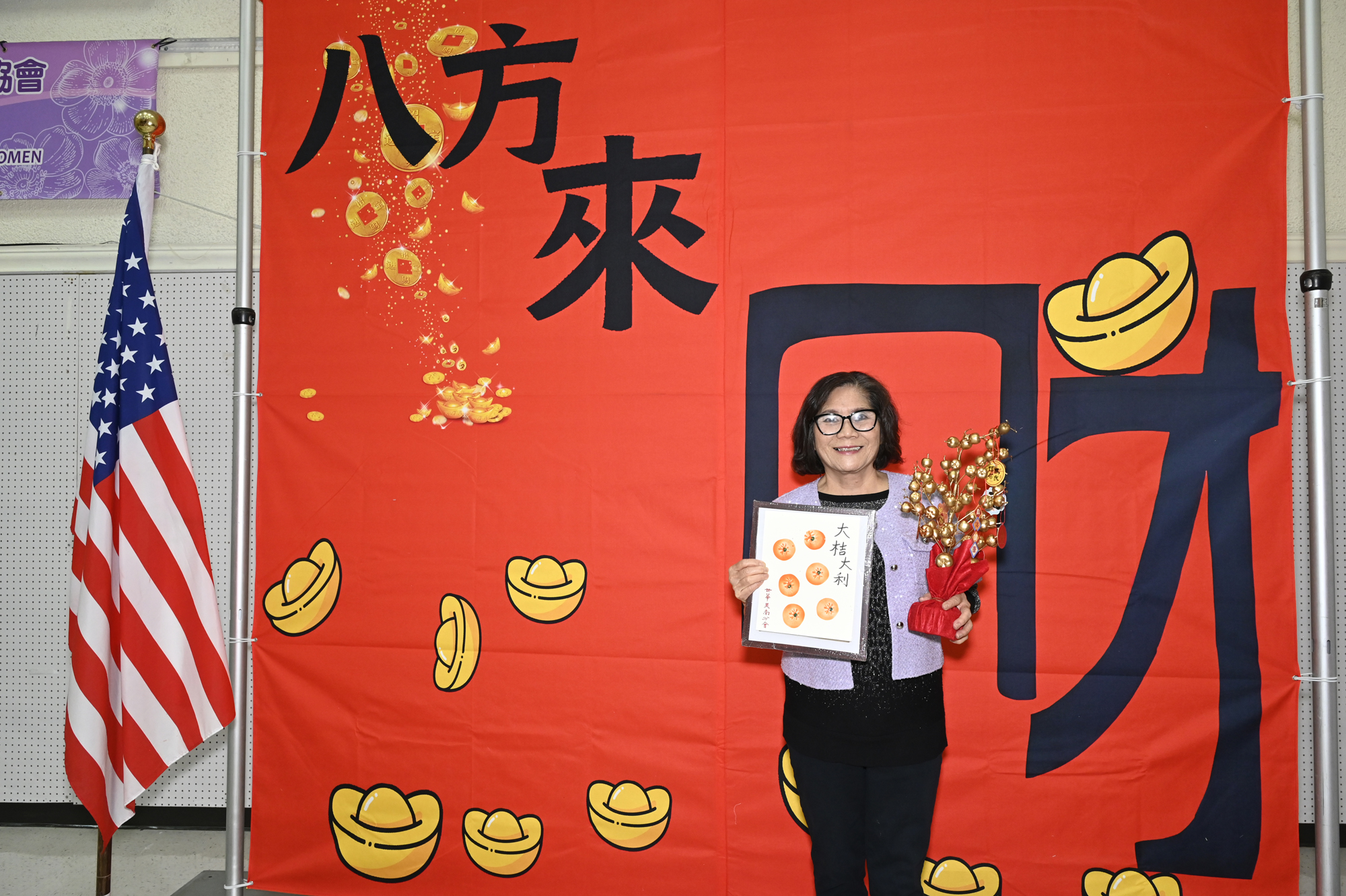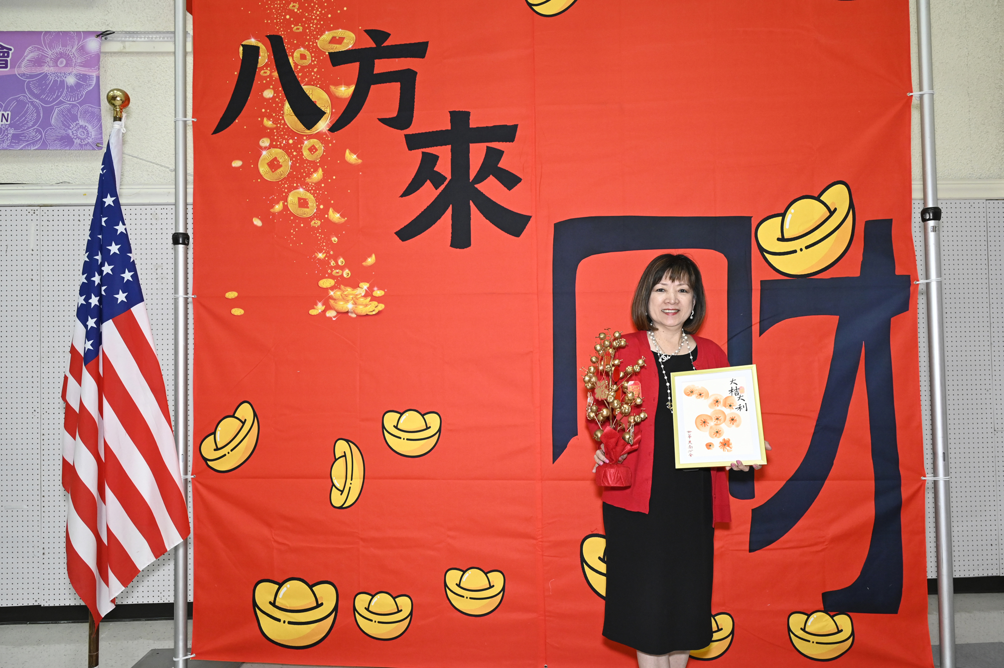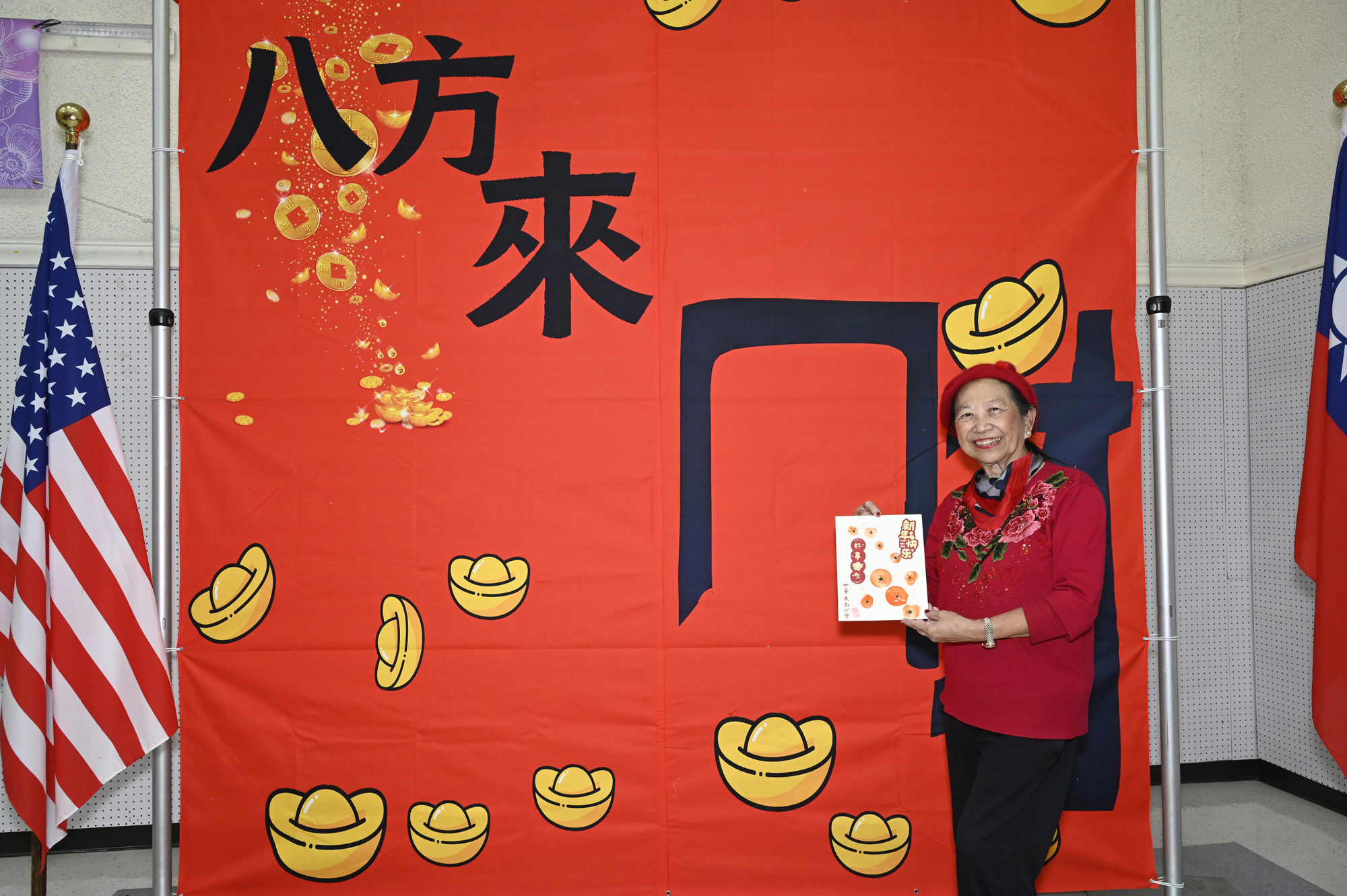 在世華美南分會的這場新春活動中,處處都可感受到新年的熱鬧喜氣,從大幅紅色喜氣的八方來財看板,到參與活動會員的穿著身上,非紅即金,再加上橘子小金樹,徹底讓現場瀰漫濃濃的新年氣氛,大家專注在自己的作品,完成後留下一張紀念畫面,為2026留下一個美好回憶。