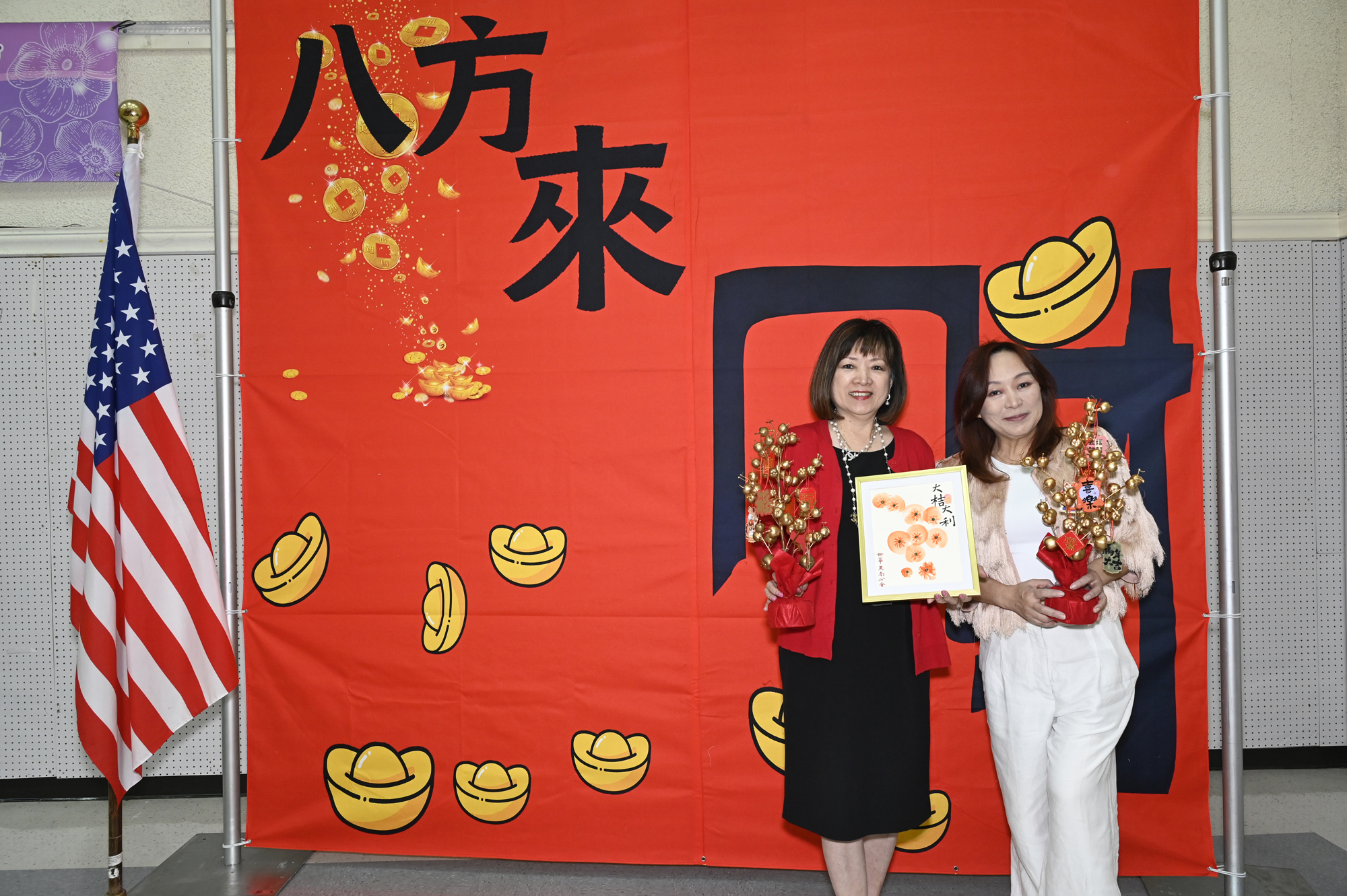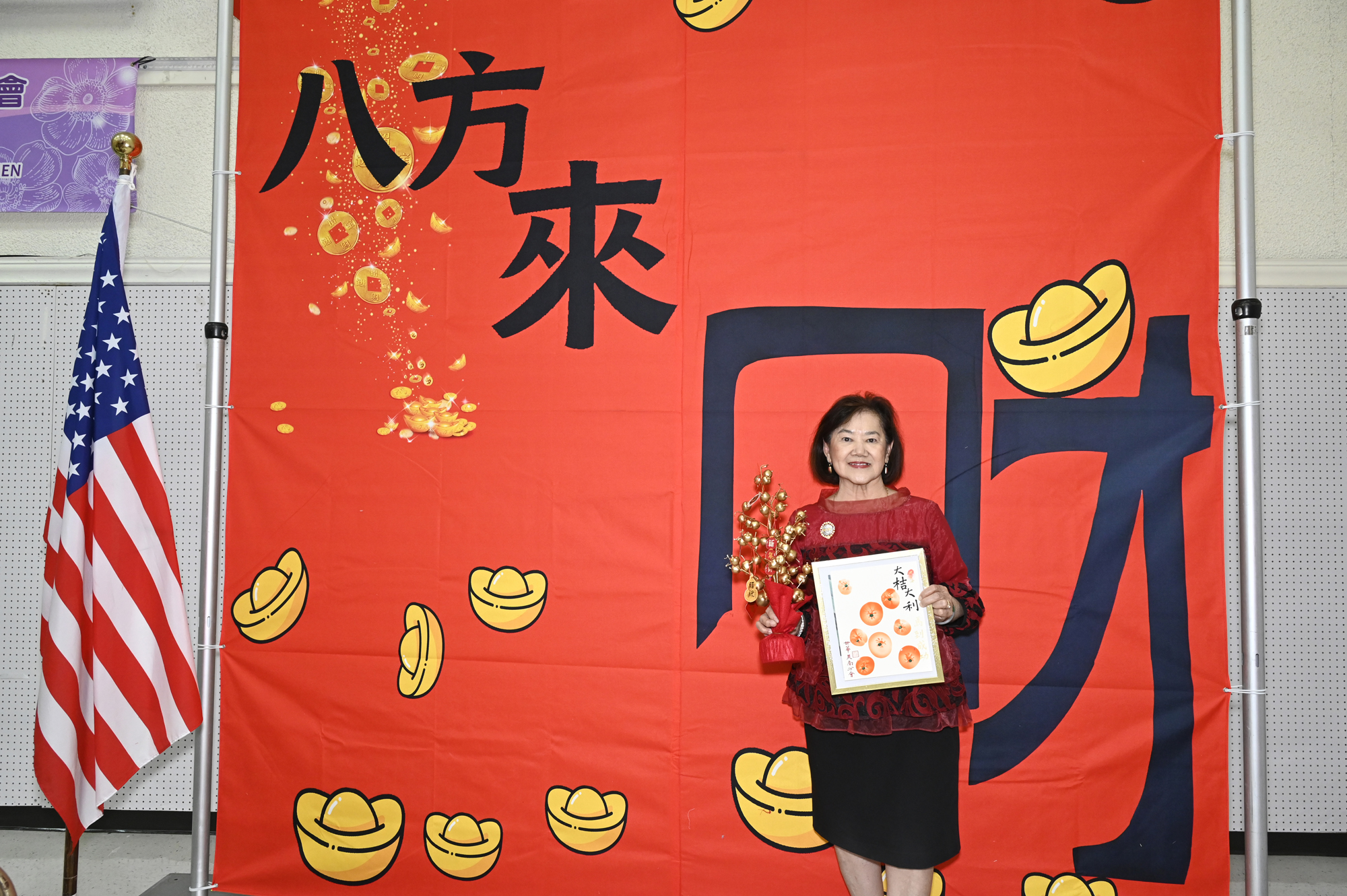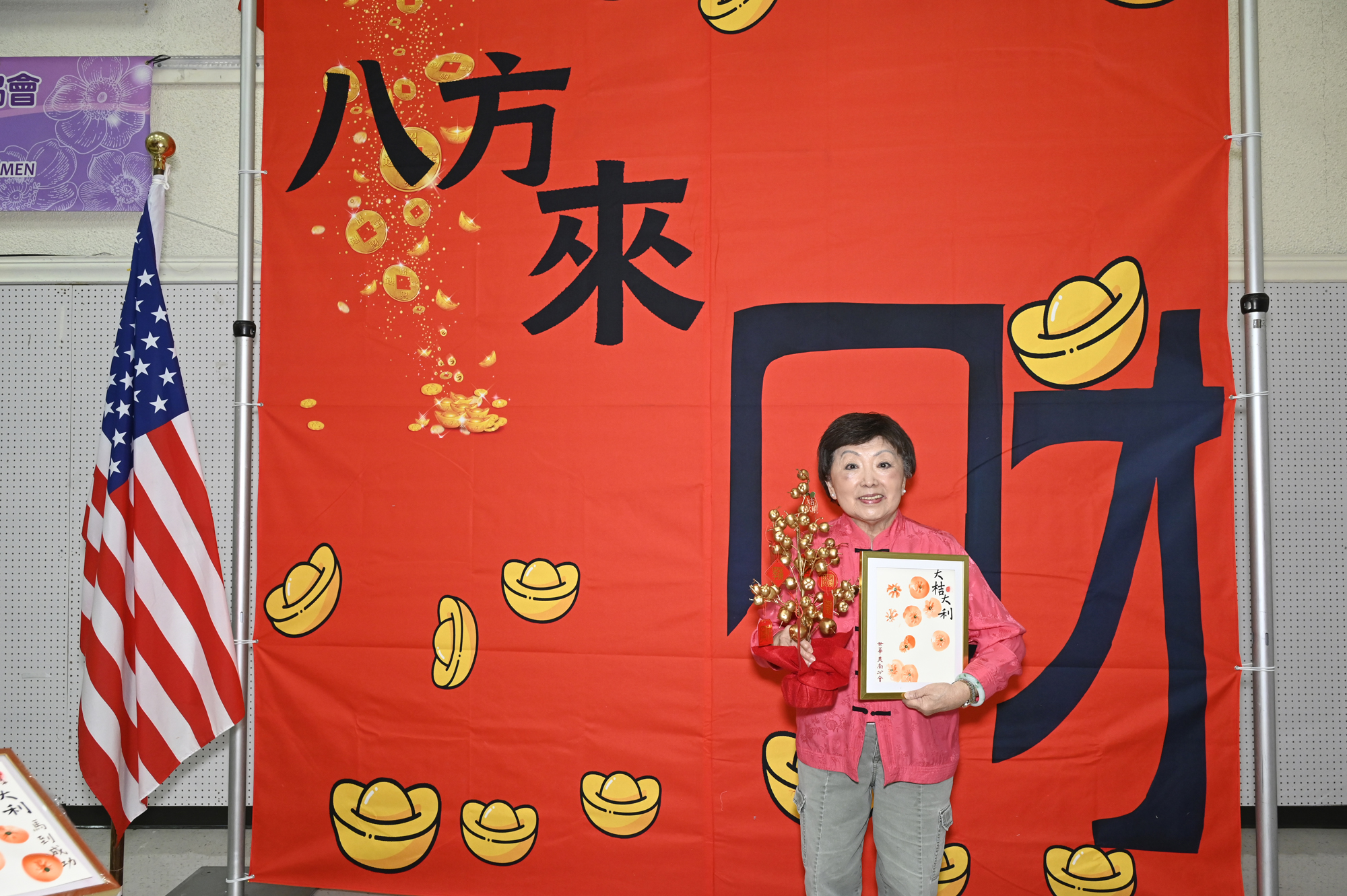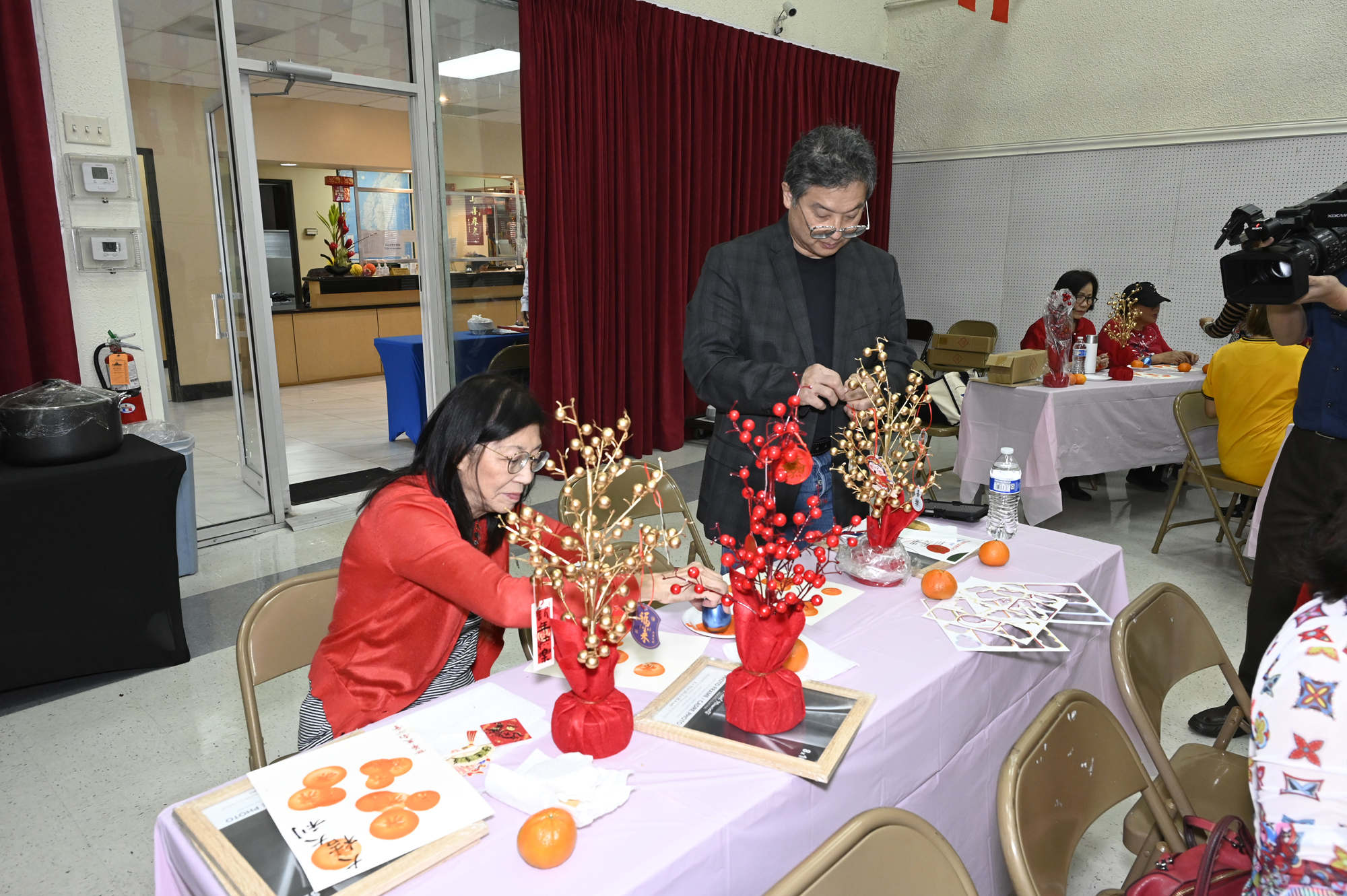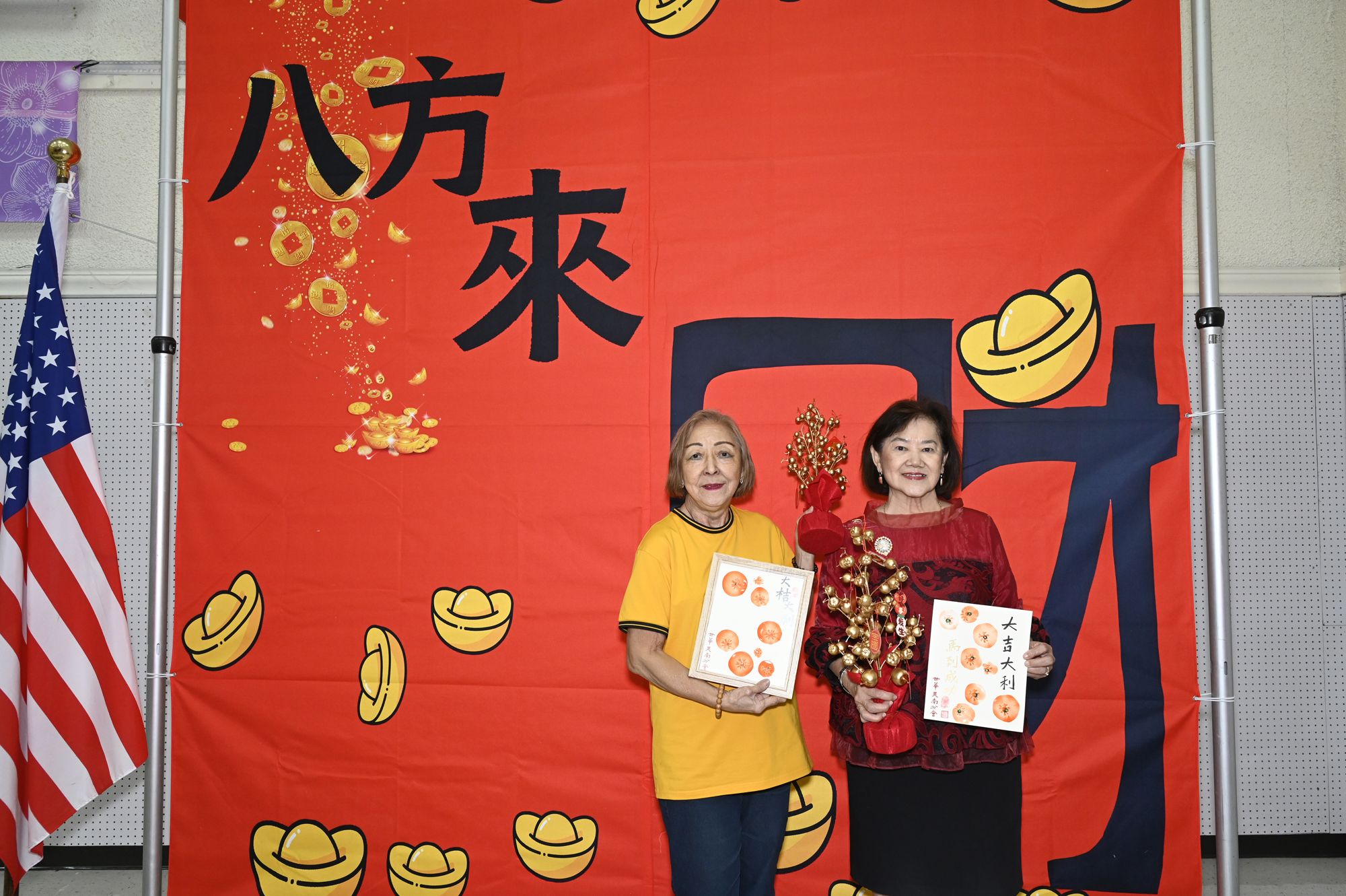 在世華美南分會的這場新春活動中,處處都可感受到新年的熱鬧喜氣,從大幅紅色喜氣的八方來財看板,到參與活動會員的穿著身上,非紅即金,再加上橘子小金樹,徹底讓現場瀰漫濃濃的新年氣氛,大家專注在自己的作品,完成後留下一張紀念畫面,為2026留下一個美好回憶。