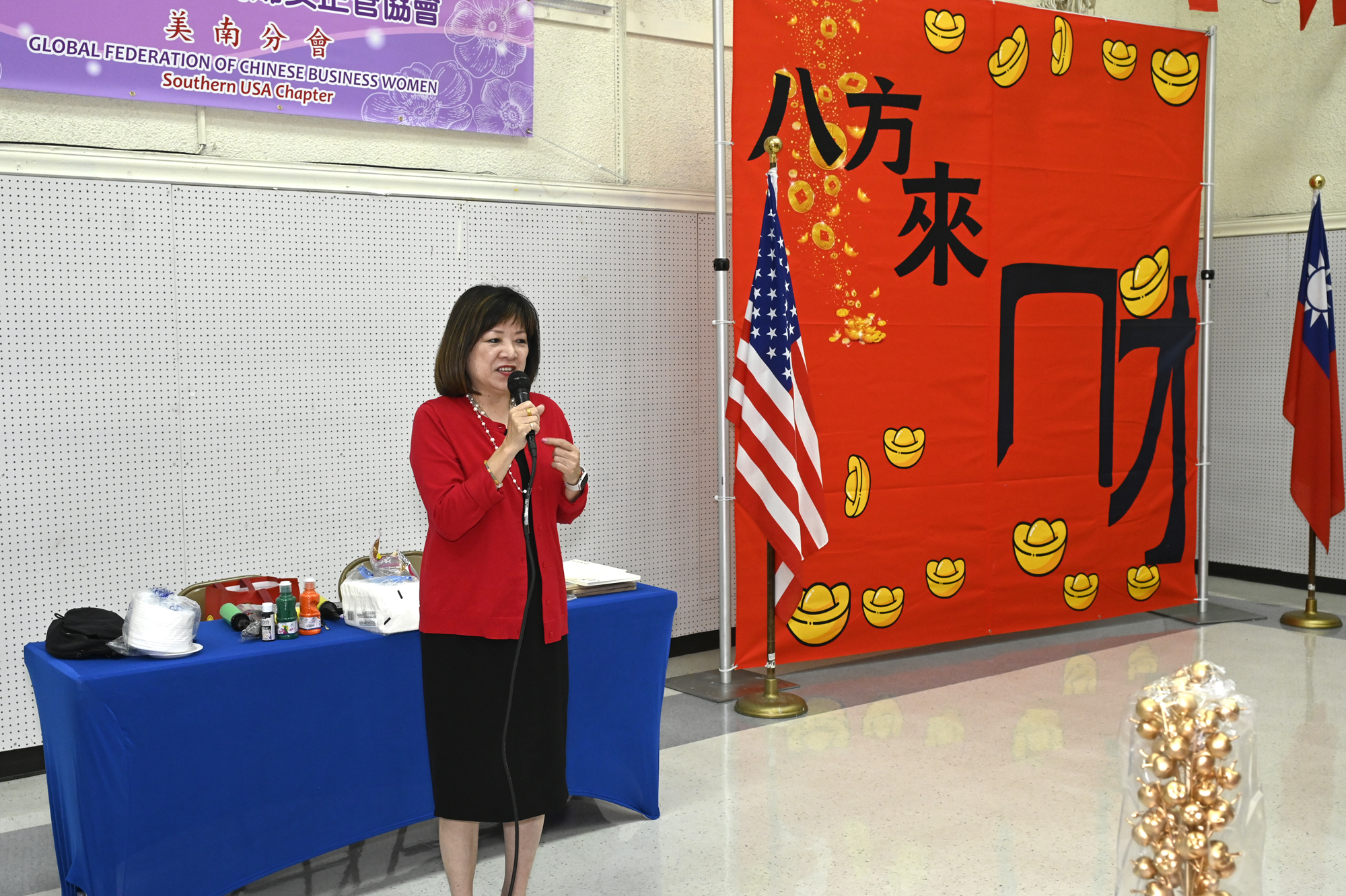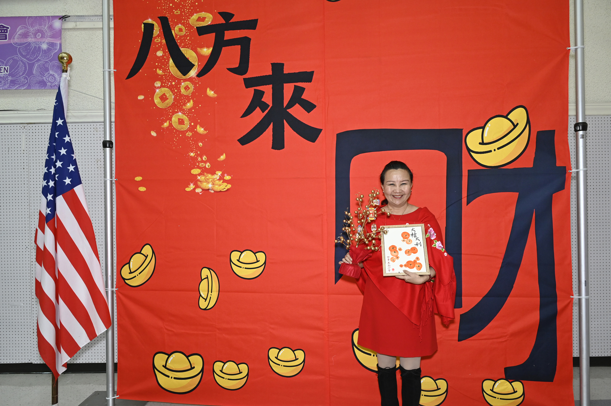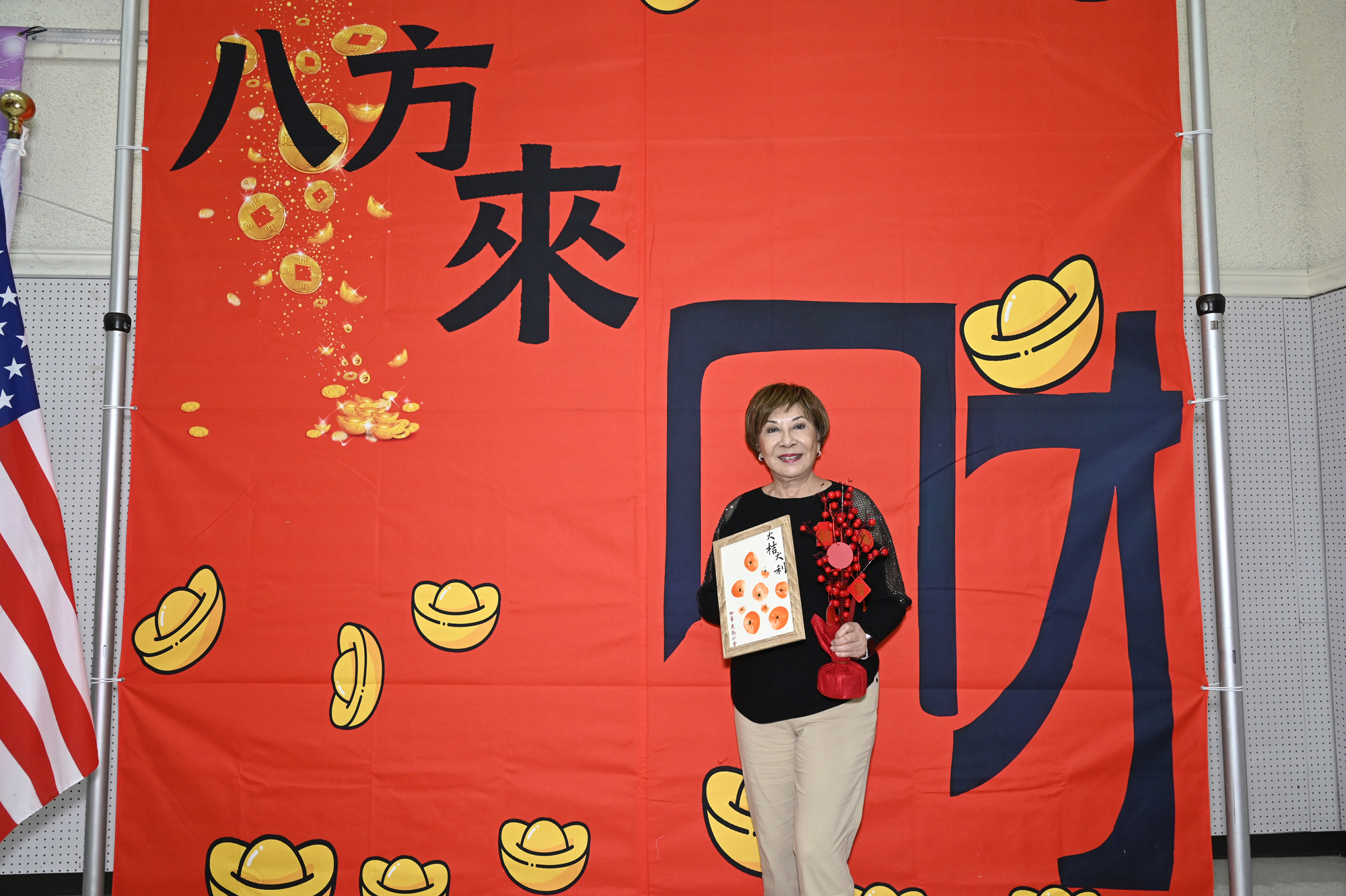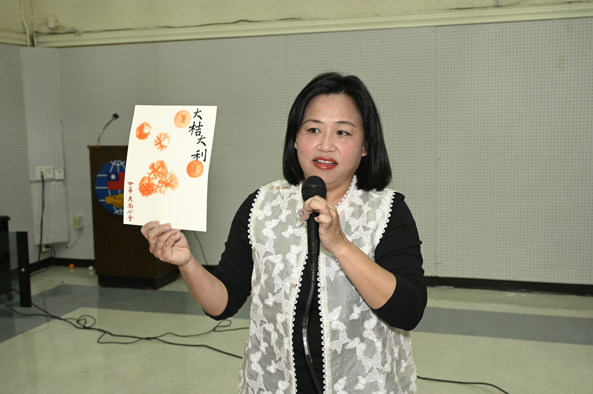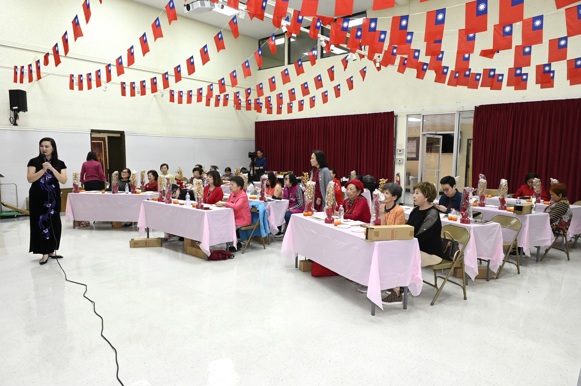 在世華美南分會的這場新春活動中,處處都可感受到新年的熱鬧喜氣,從大幅紅色喜氣的八方來財看板,到參與活動會員的穿著身上,非紅即金,再加上橘子小金樹,徹底讓現場瀰漫濃濃的新年氣氛,大家專注在自己的作品,完成後留下一張紀念畫面,為2026留下一個美好回憶。