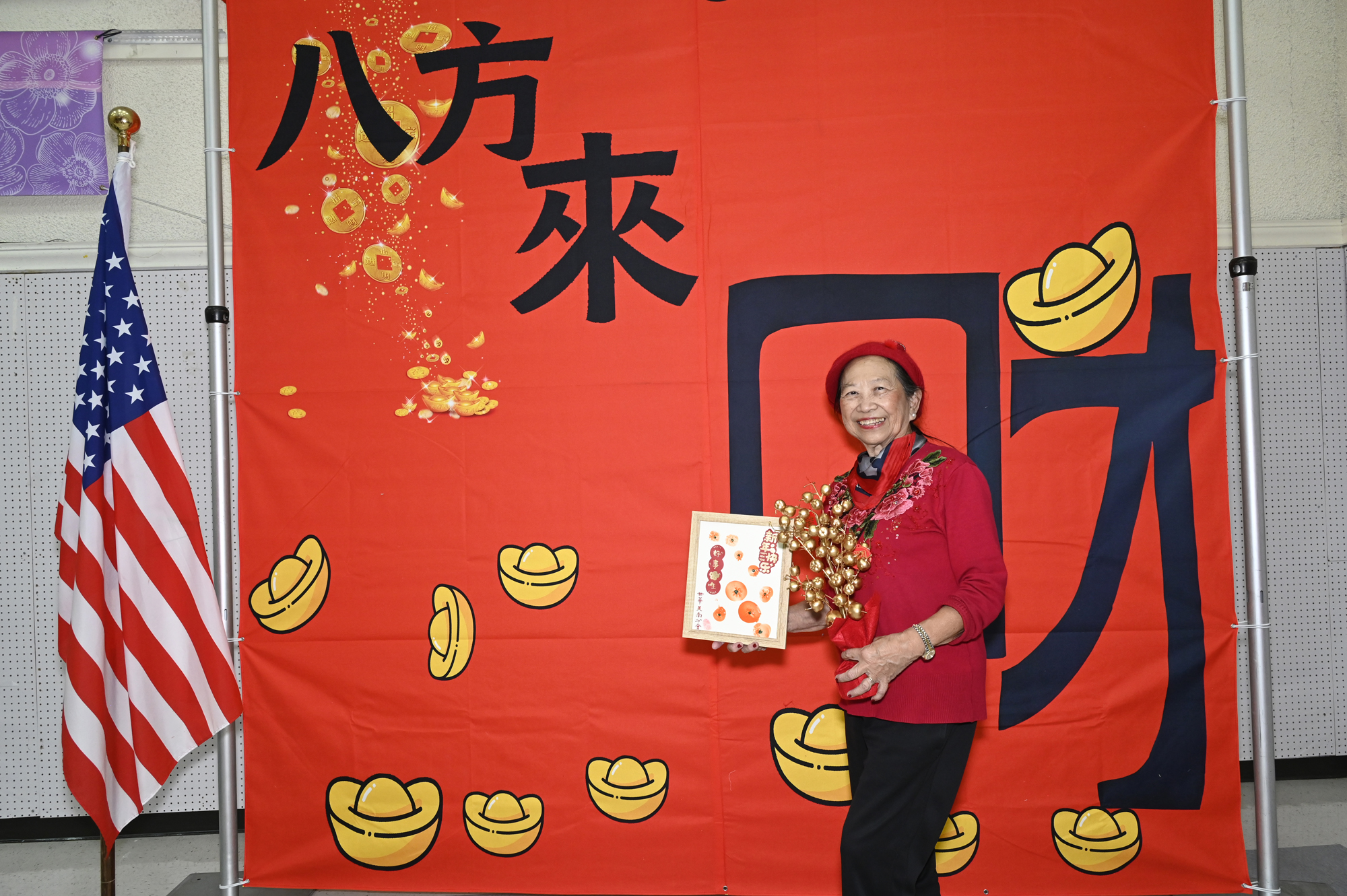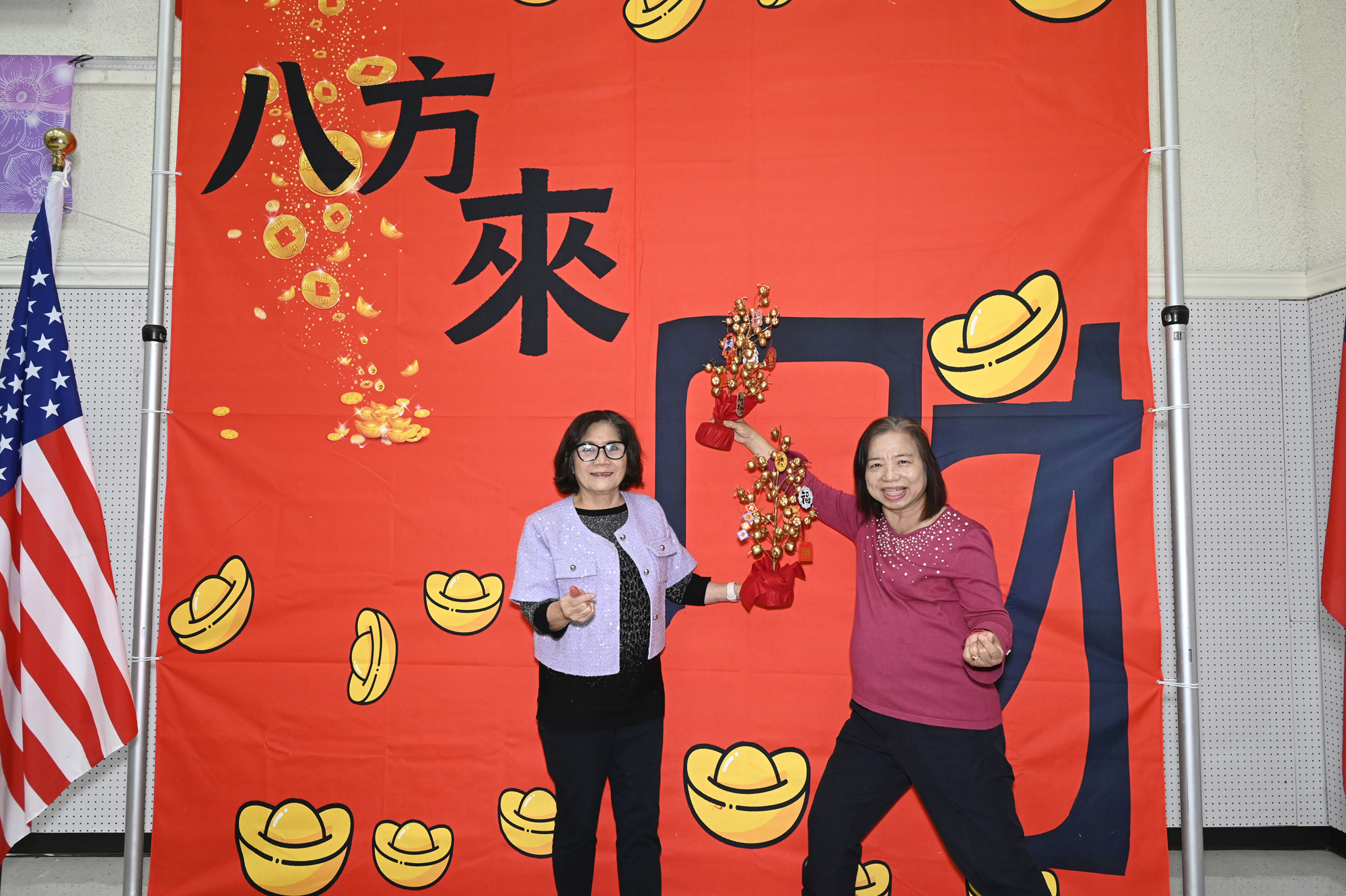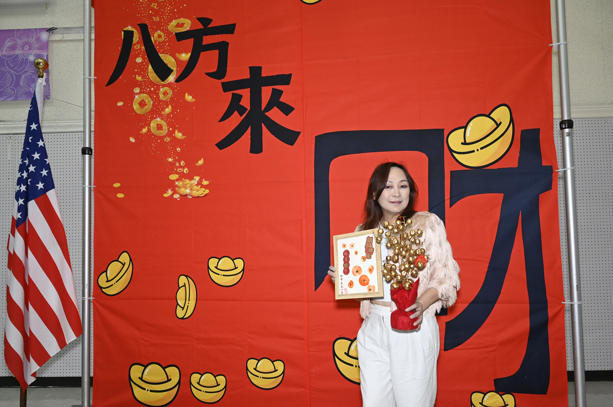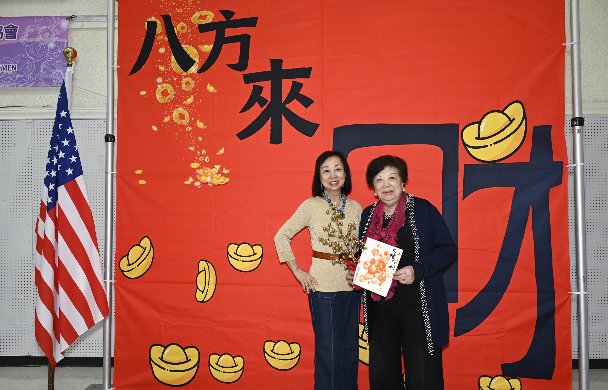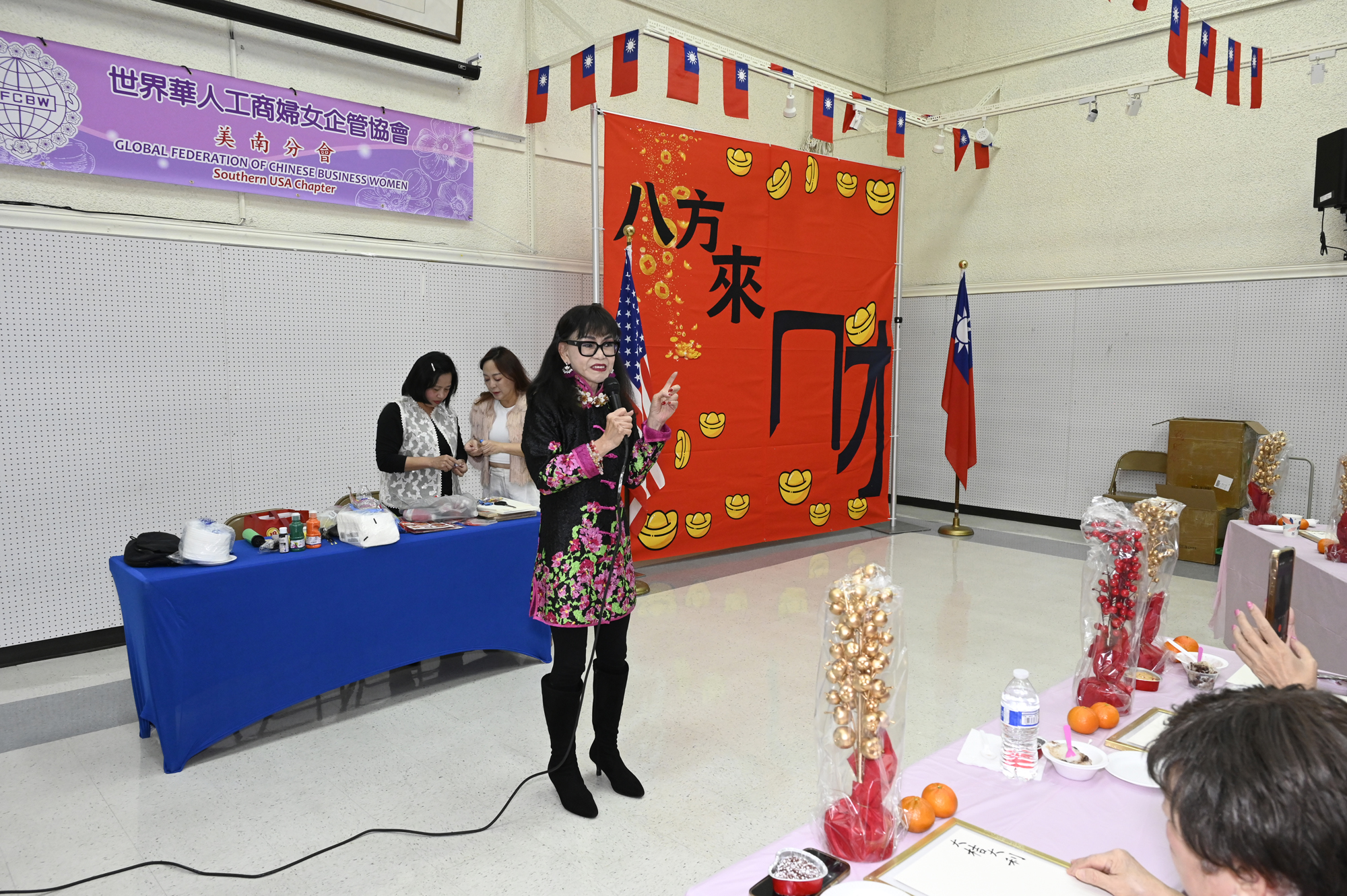 在世華美南分會的這場新春活動中,處處都可感受到新年的熱鬧喜氣,從大幅紅色喜氣的八方來財看板,到參與活動會員的穿著身上,非紅即金,再加上橘子小金樹,徹底讓現場瀰漫濃濃的新年氣氛,大家專注在自己的作品,完成後留下一張紀念畫面,為2026留下一個美好回憶。