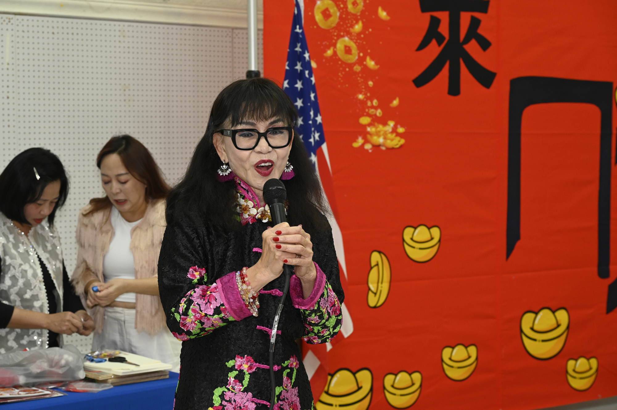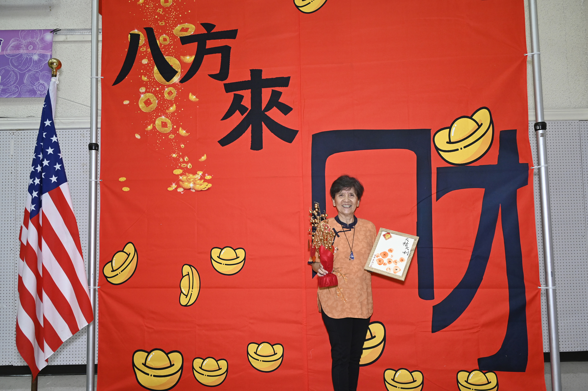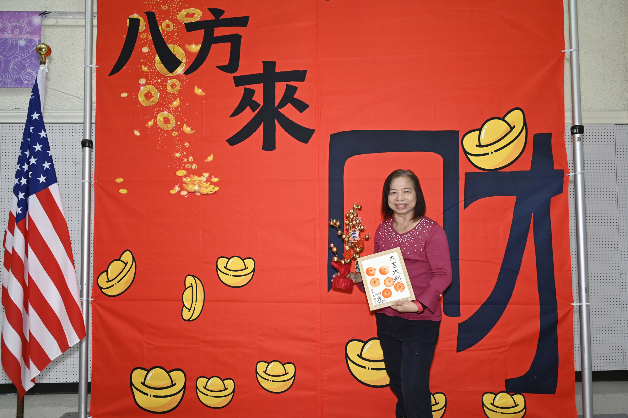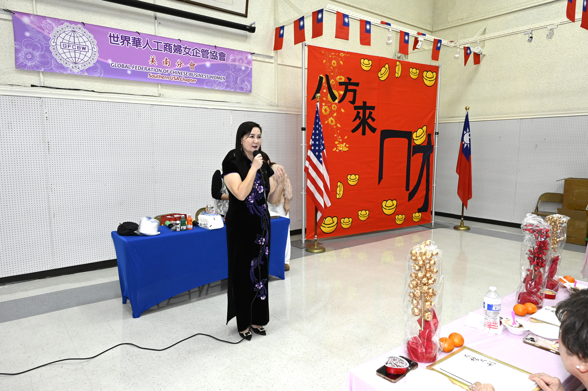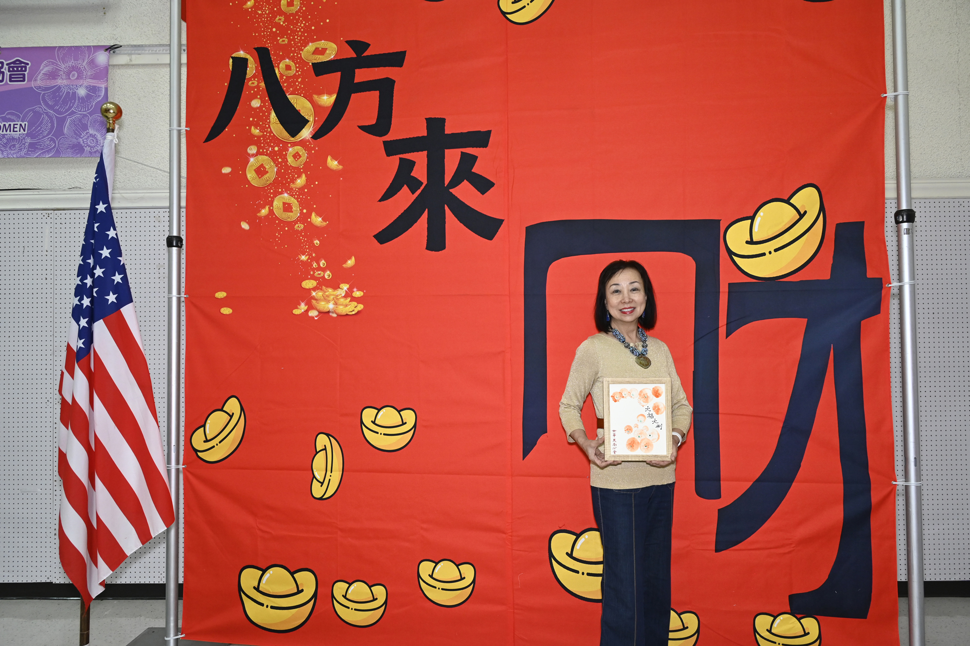 在世華美南分會的這場新春活動中,處處都可感受到新年的熱鬧喜氣,從大幅紅色喜氣的八方來財看板,到參與活動會員的穿著身上,非紅即金,再加上橘子小金樹,徹底讓現場瀰漫濃濃的新年氣氛,大家專注在自己的作品,完成後留下一張紀念畫面,為2026留下一個美好回憶。