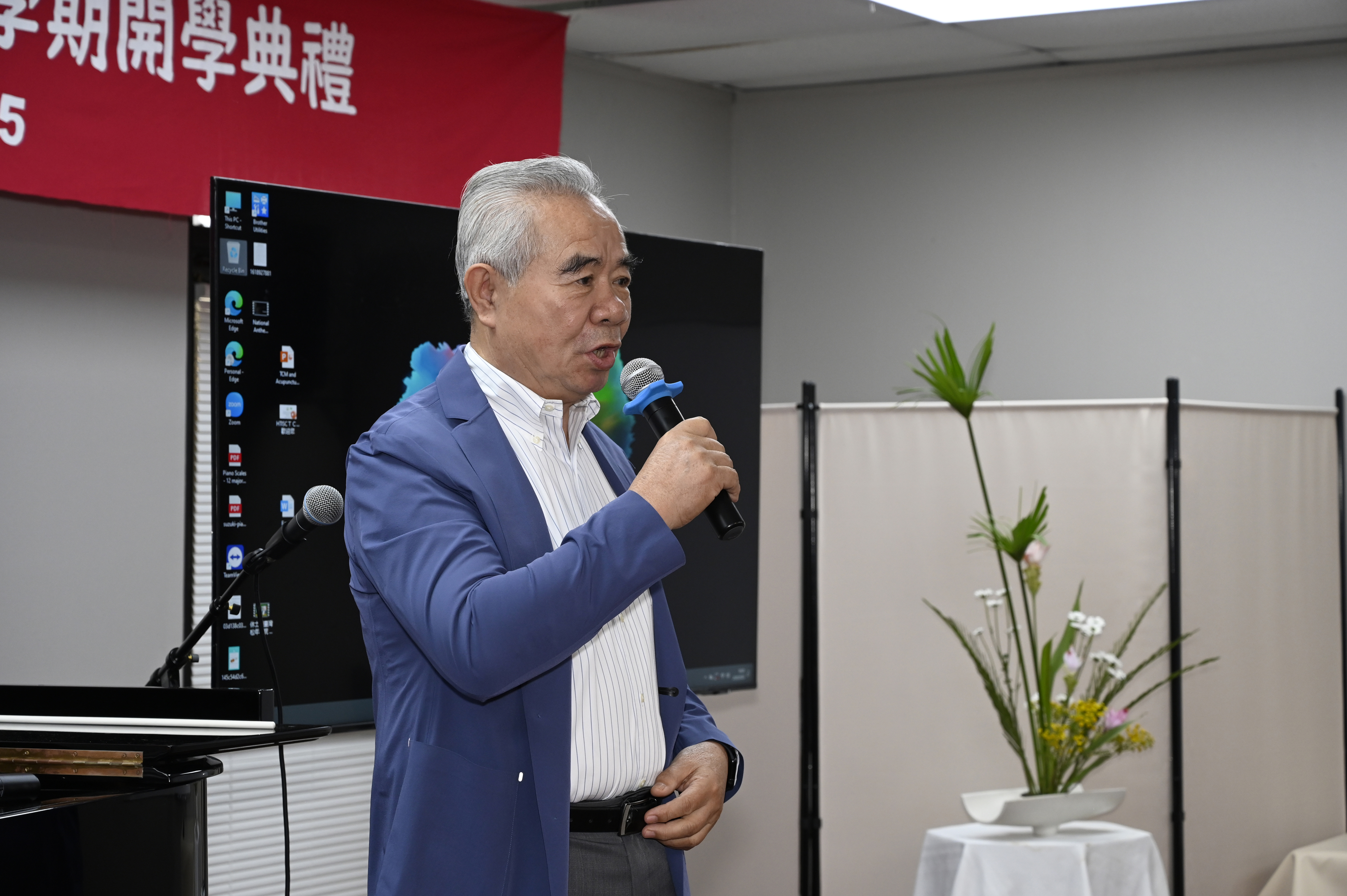 美南臺灣旅館公會前會長張榮森參加松年學院2025年的秋季開學典禮。(本台檔案照片)