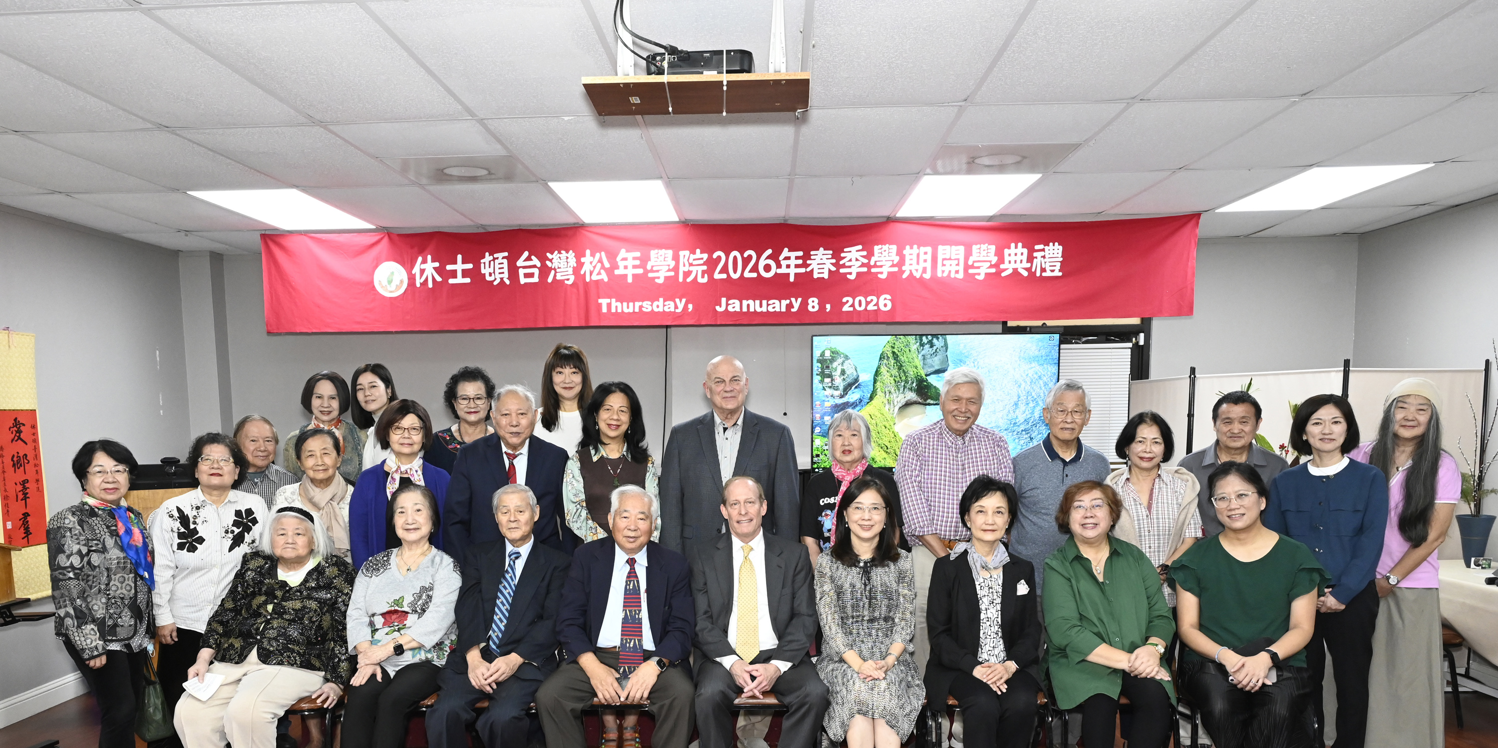 (王盈蓉主任贊美學院)新年新希望,2026年休士頓松年學院,1月8日舉行了春季開學典禮,琳瑯滿目的才藝課程,讓人滿是衝動的想報名參加。不過許勝弘院長呼籲,先為自己訂一個學習目標(許勝弘院長談學習目標 王盈蓉主任介紹英語服務營)。