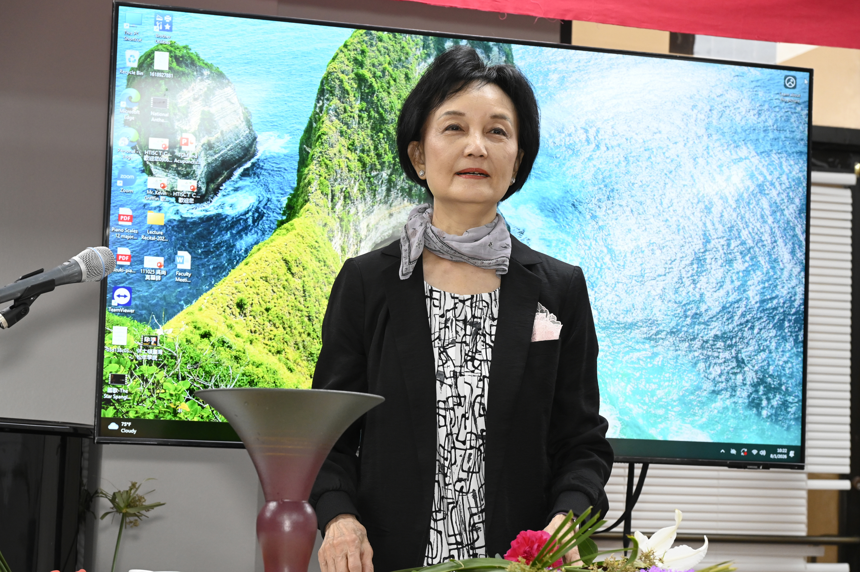 休士頓松年學院插花老師張淑貞在2026春季開學典禮上示範插花。(本台檔案照片)