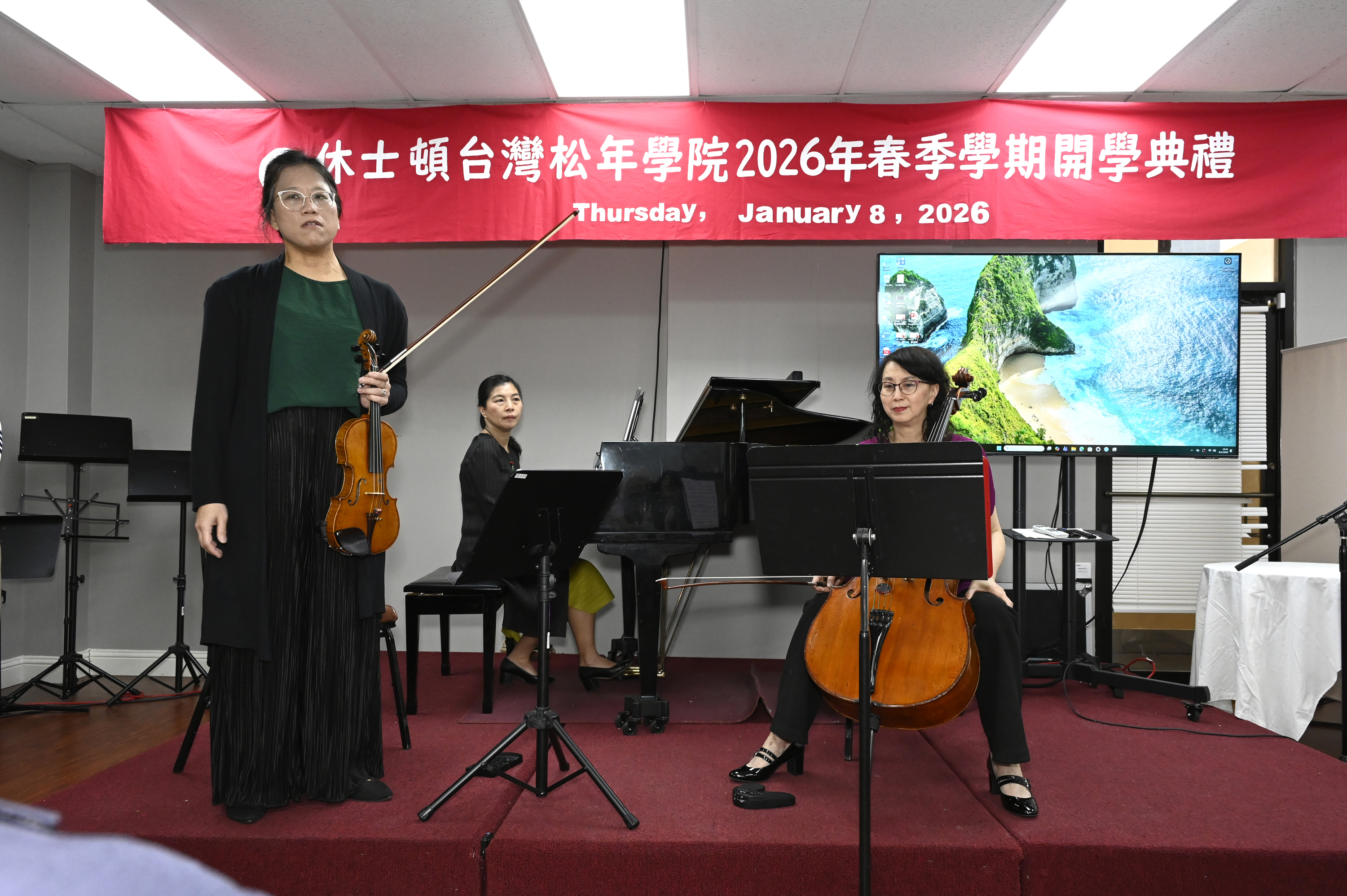 亞悅三重奏2026年在休士頓松年學院春季開學典禮上演奏。(本台檔案照片)