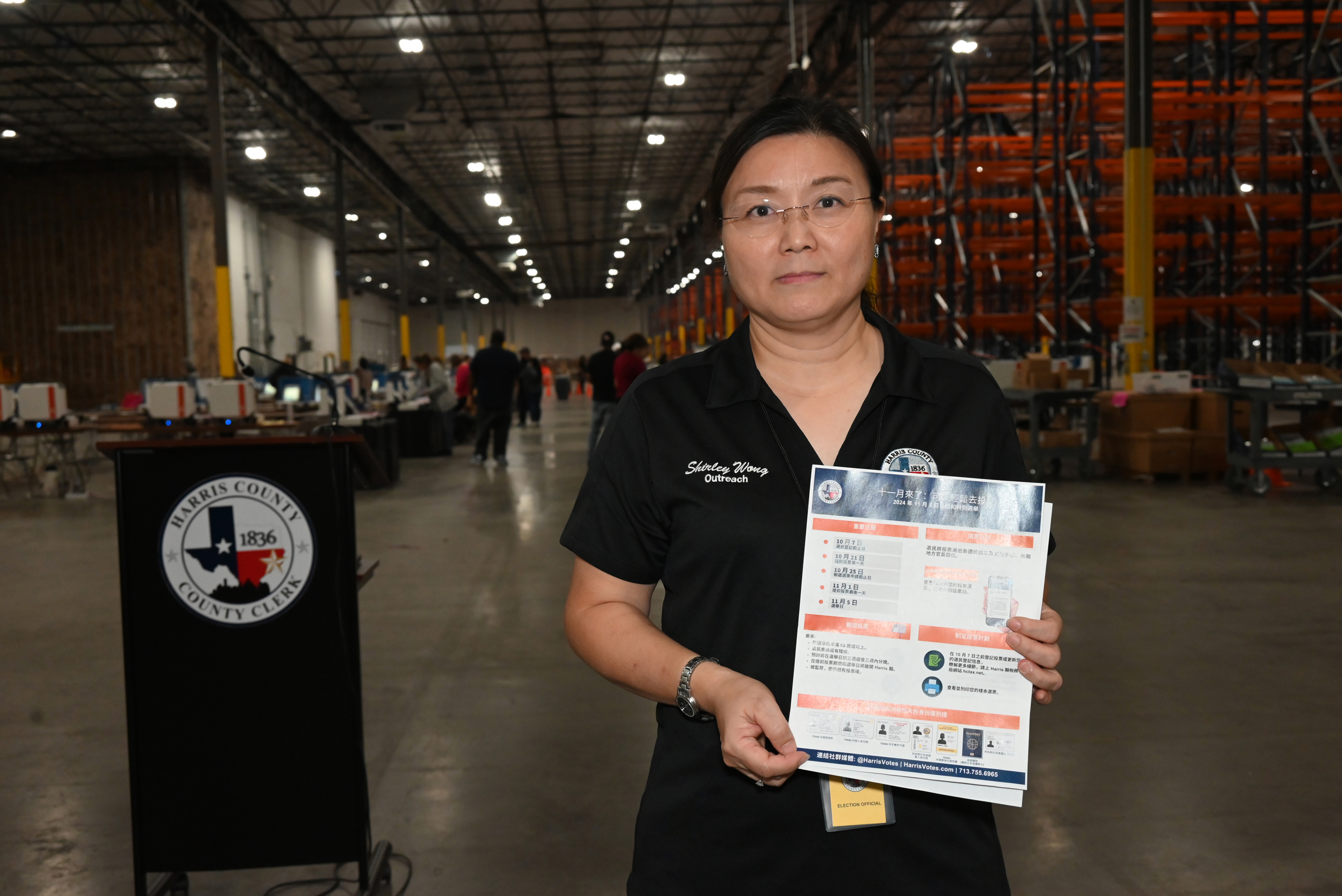 有任何選舉問題,可連繫Harris County Clerk選務部諮詢,電話713-755-6965,電子郵件Shirley.Wong@vote.hctx.net。