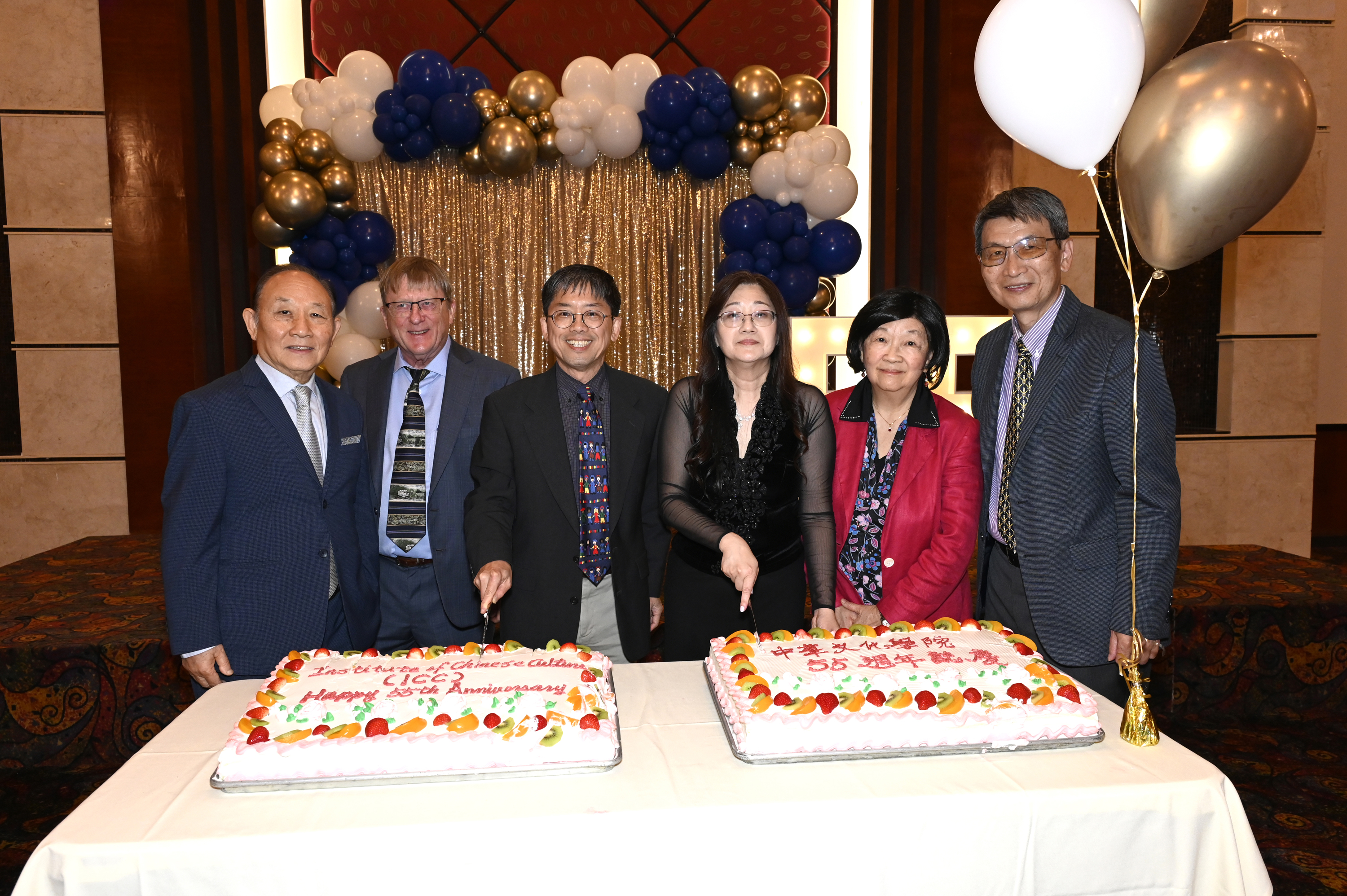中華文化學院2025年的55週年慶上,管理層代表切蛋糕慶賀。