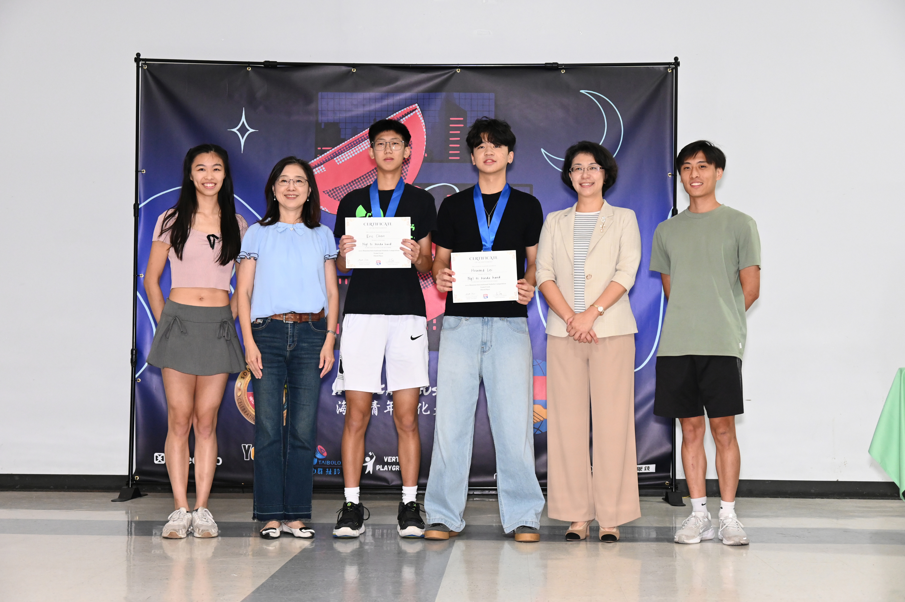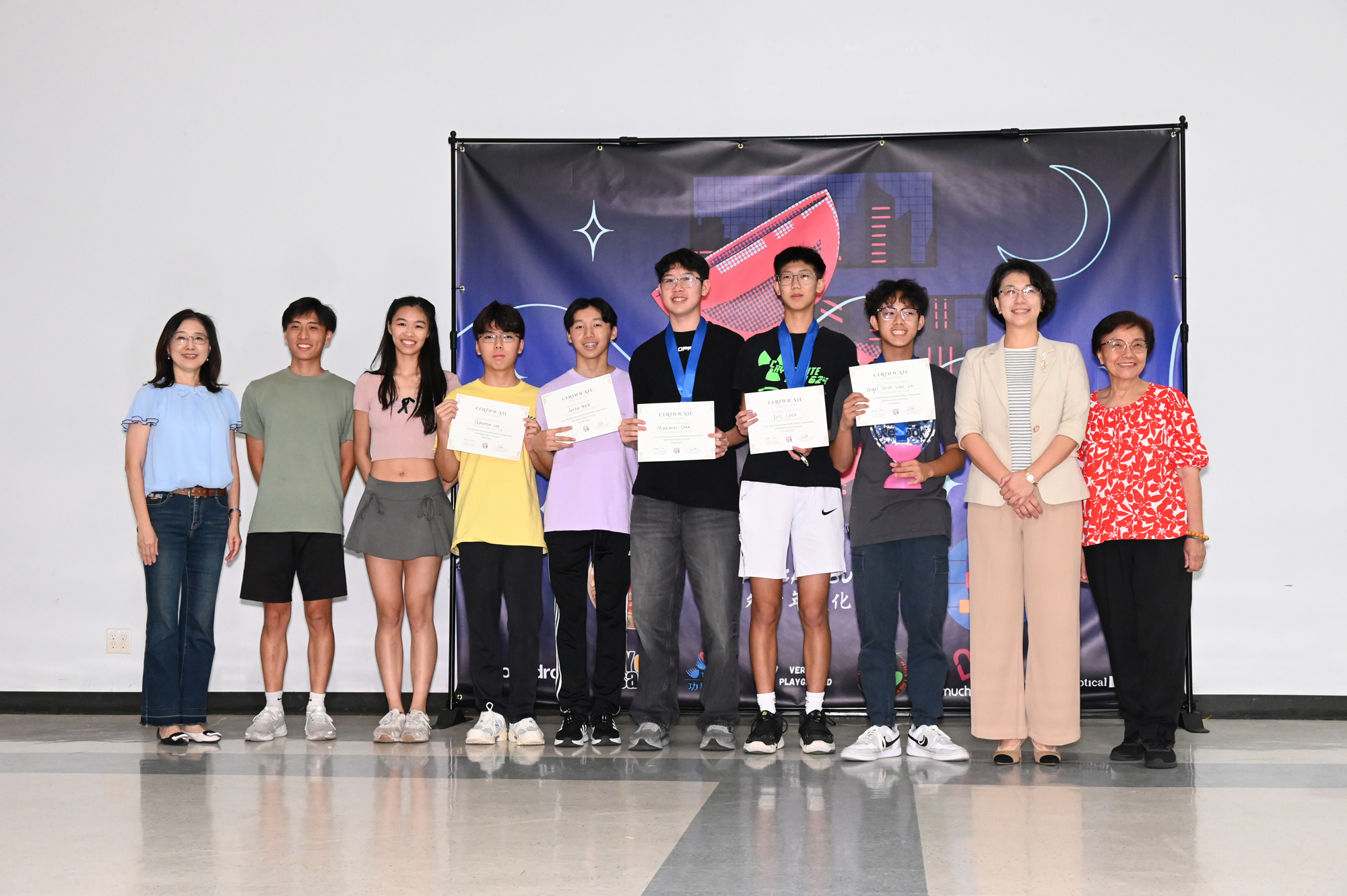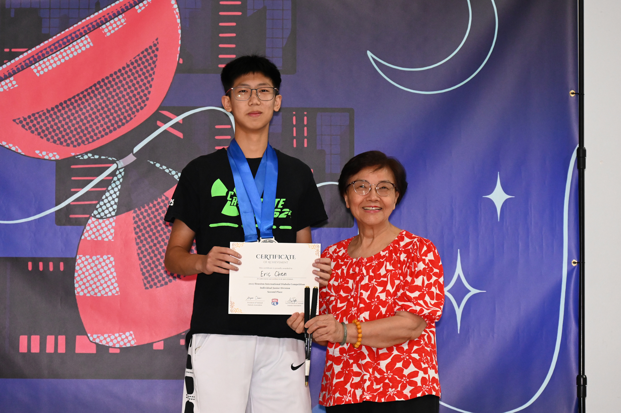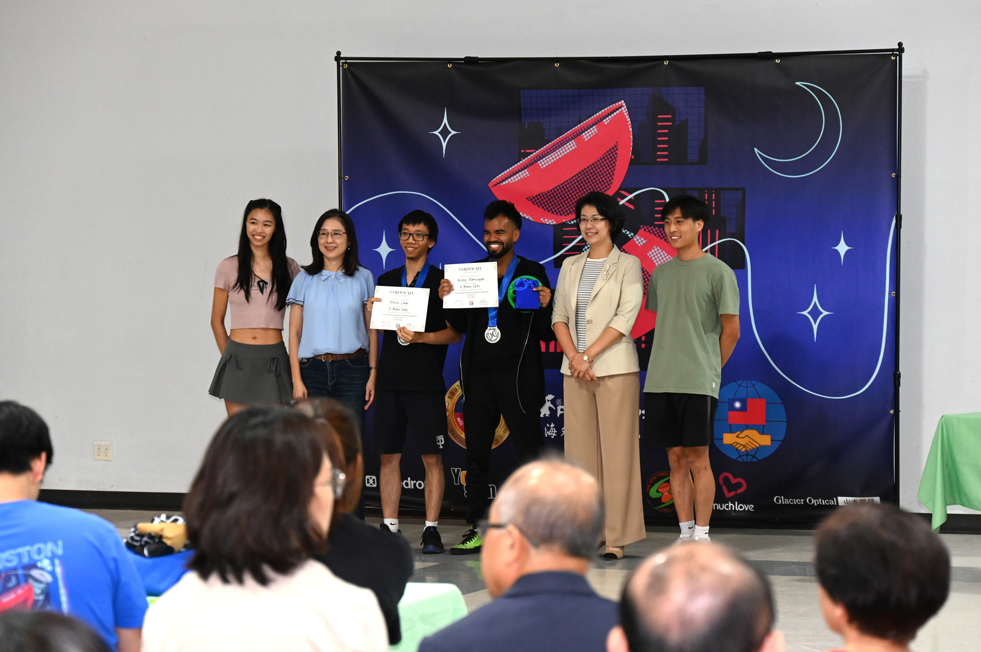 國際扯鈴聯盟大賽主辦人與獲獎人和貴賓合影。